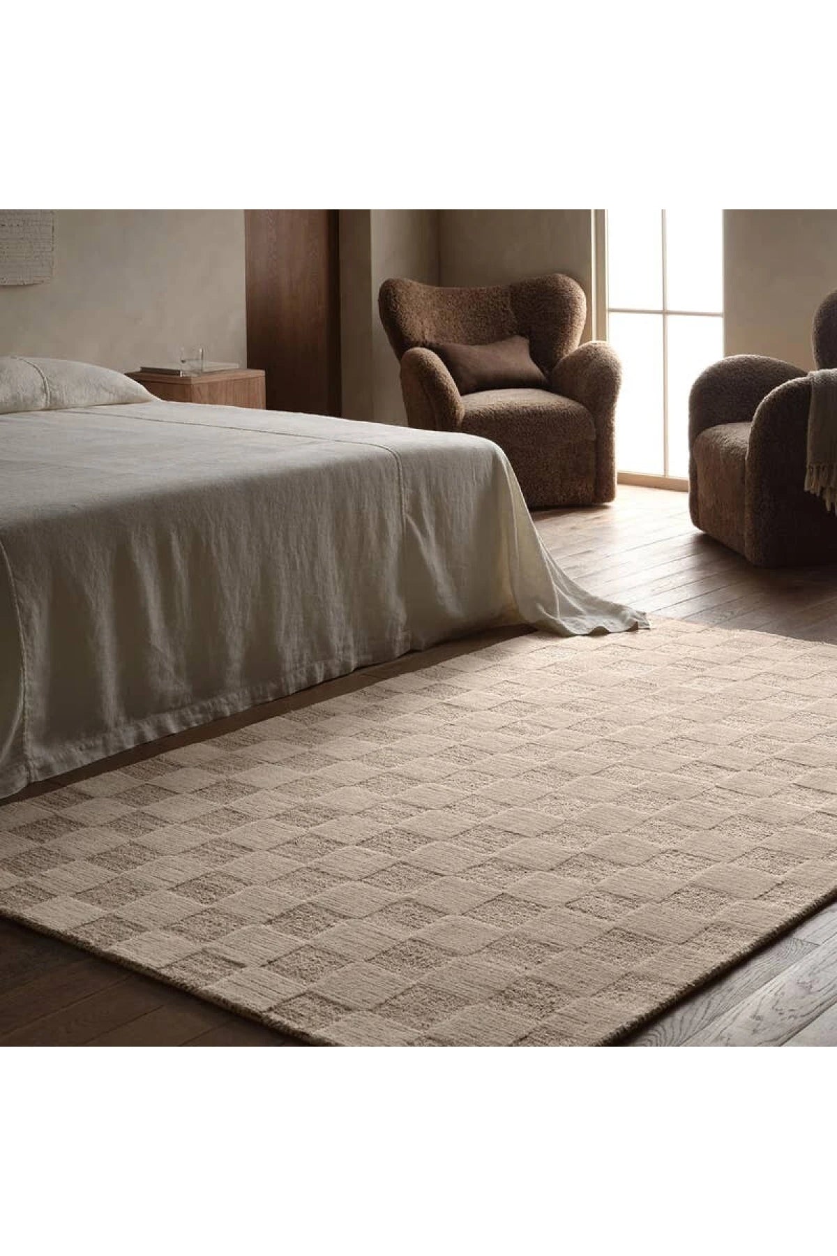 Meet the Finnigan Rug - Bleached Sand. This Rug is handmade from natural, undyed wool for simple, elegant style. Its textured high-low pile adds depth, while being durable and easy to maintain. Samples are modeled at our North Scottsdale/Phoenix location.