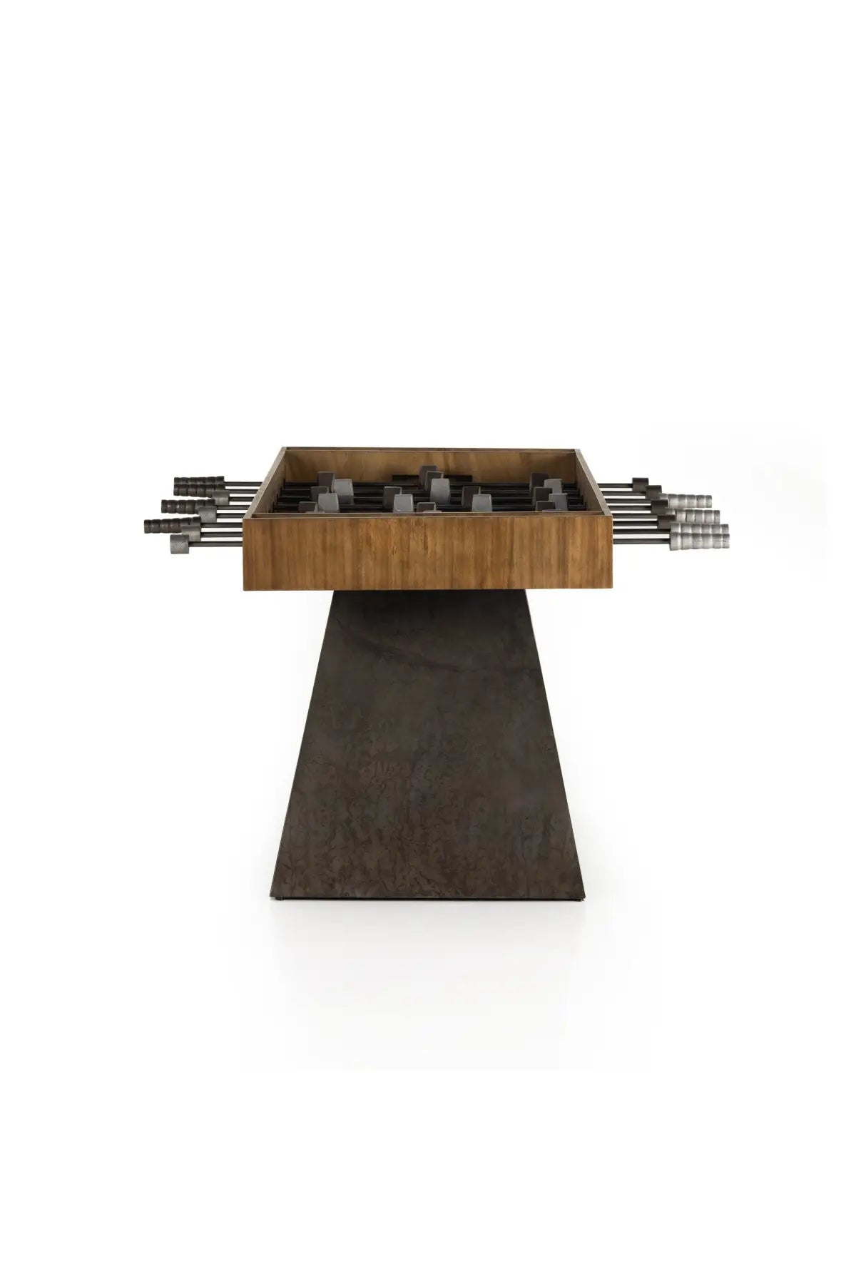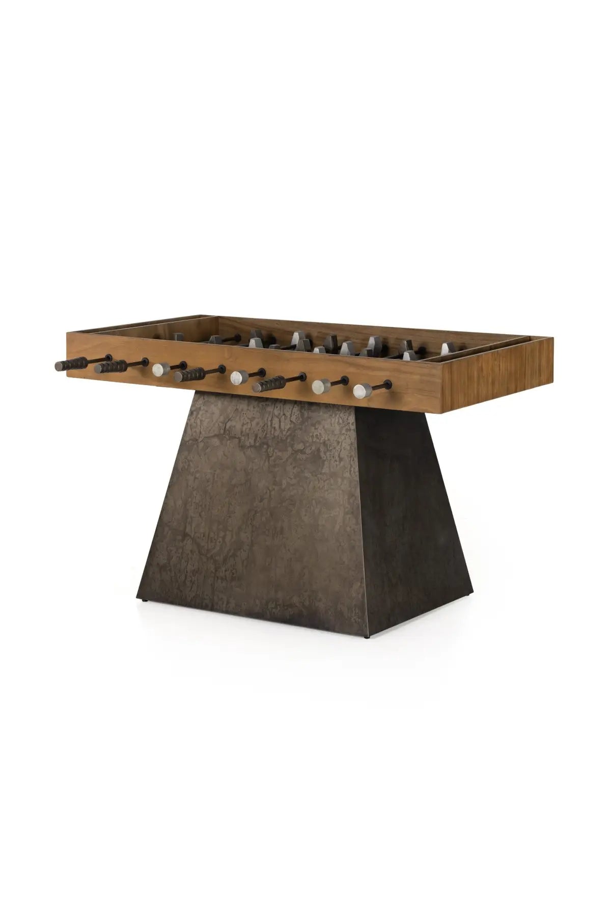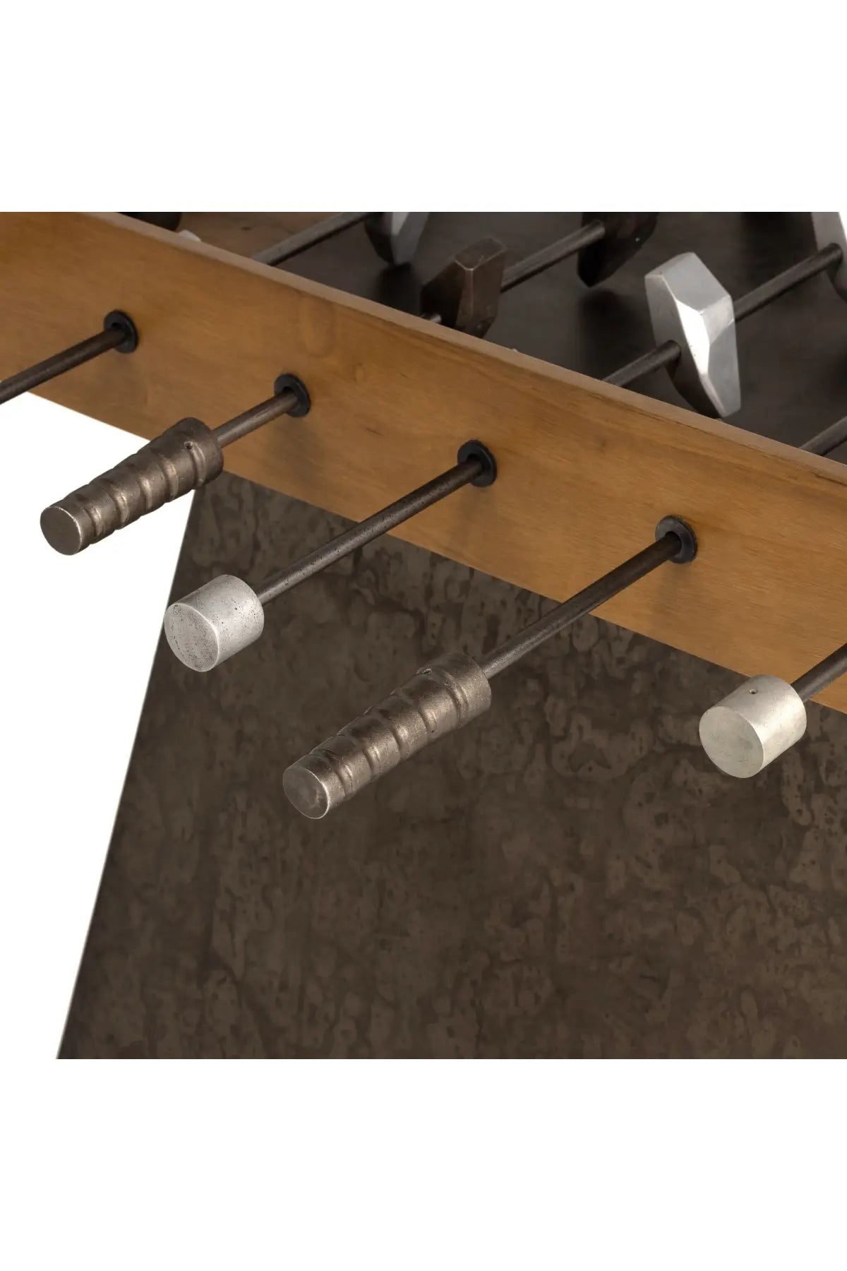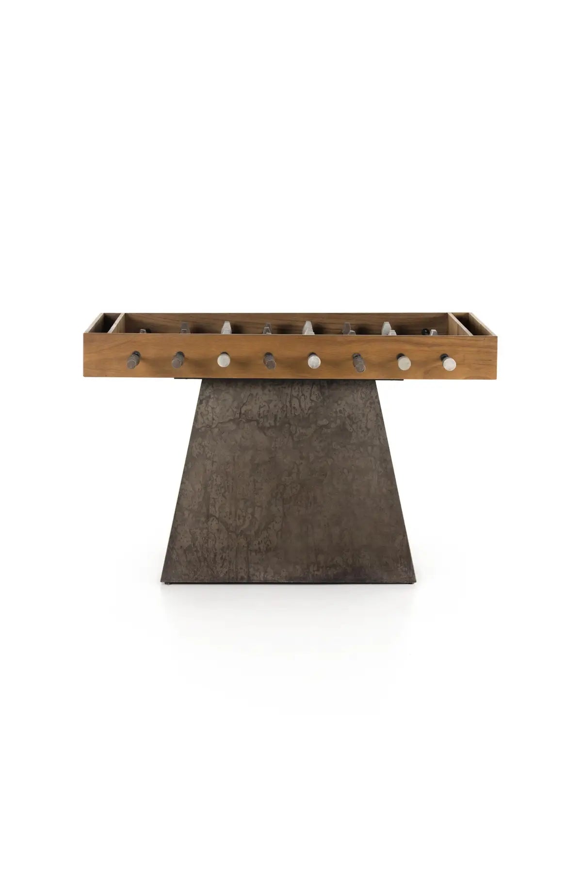 Meet our Foosball Table. Handmade by skilled artisans, this one-of-a-kind game features a beautiful blend of hand-finished Guanacaste wood and metal that’s been aged through a manual, month-long process using natural elements to bring unique character to each piece. Includes three balls.