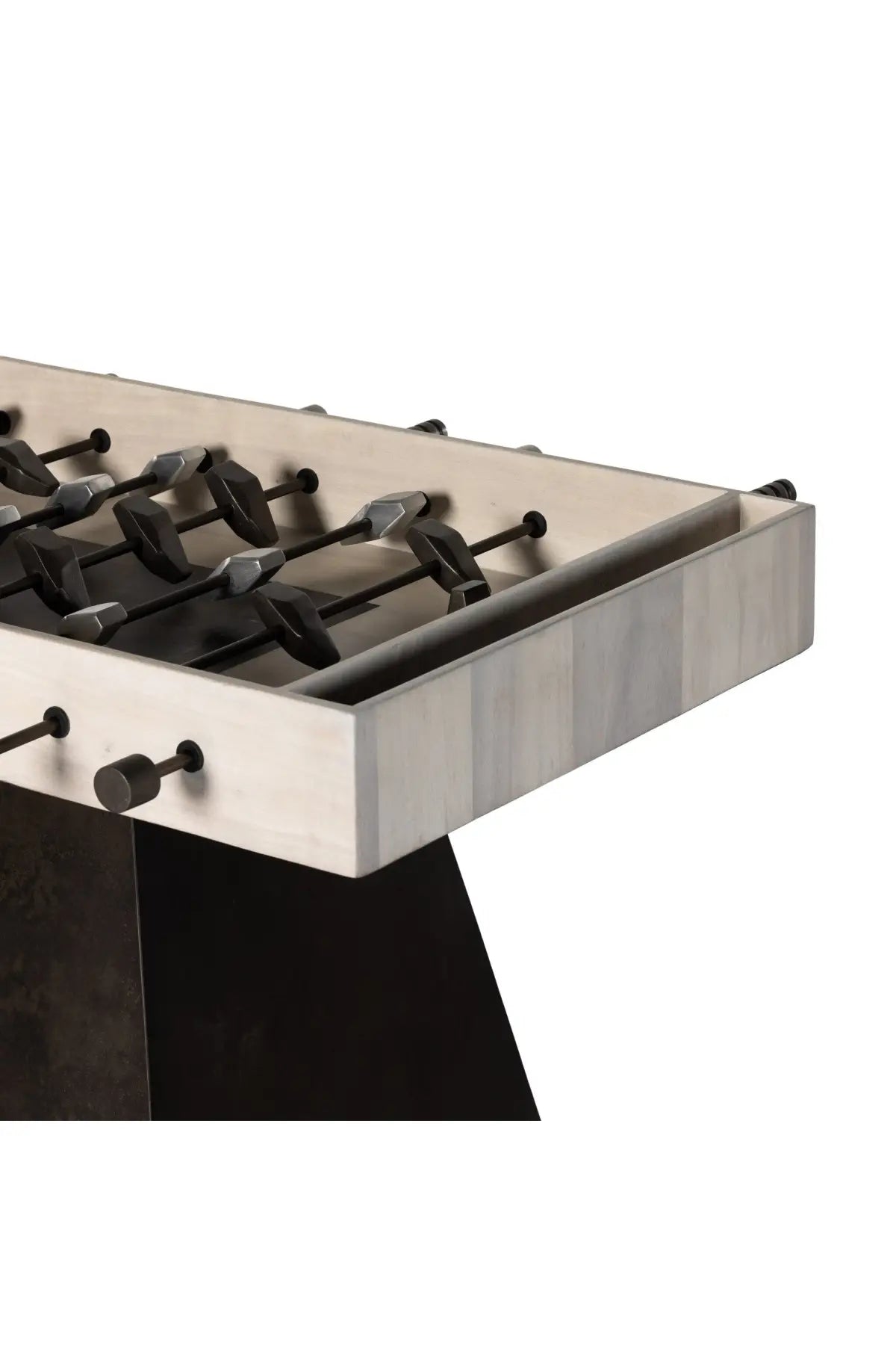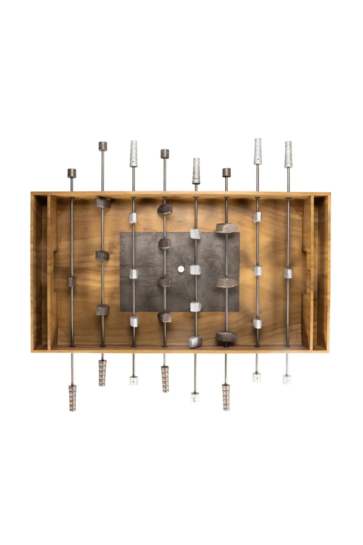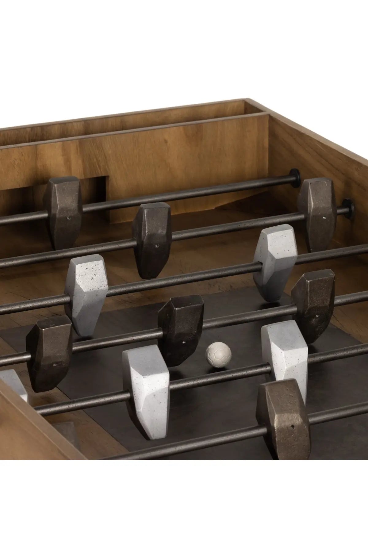 Meet our Foosball Table. Handmade by skilled artisans, this one-of-a-kind game features a beautiful blend of hand-finished Guanacaste wood and metal that’s been aged through a manual, month-long process using natural elements to bring unique character to each piece. Includes three balls.