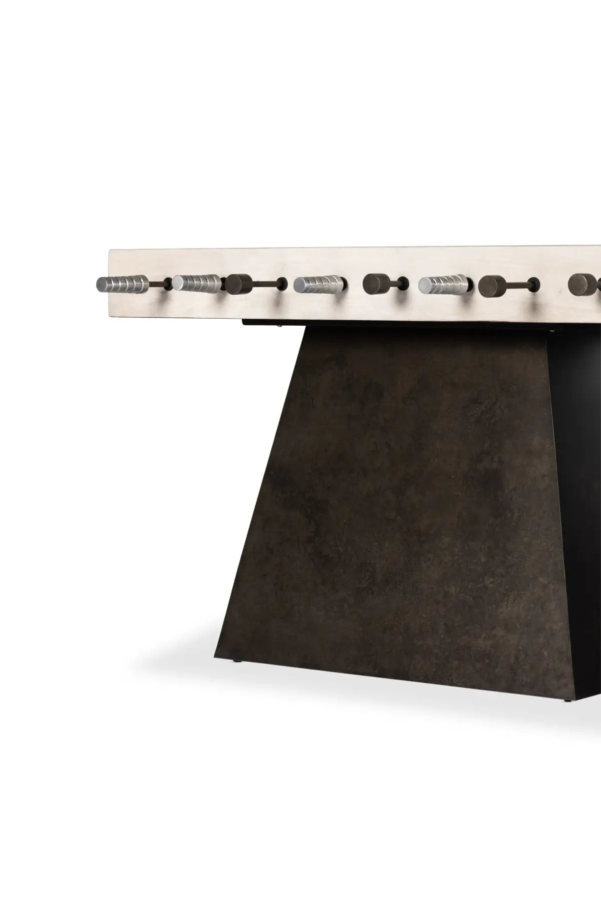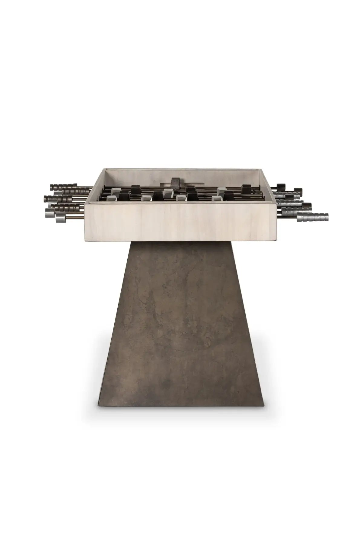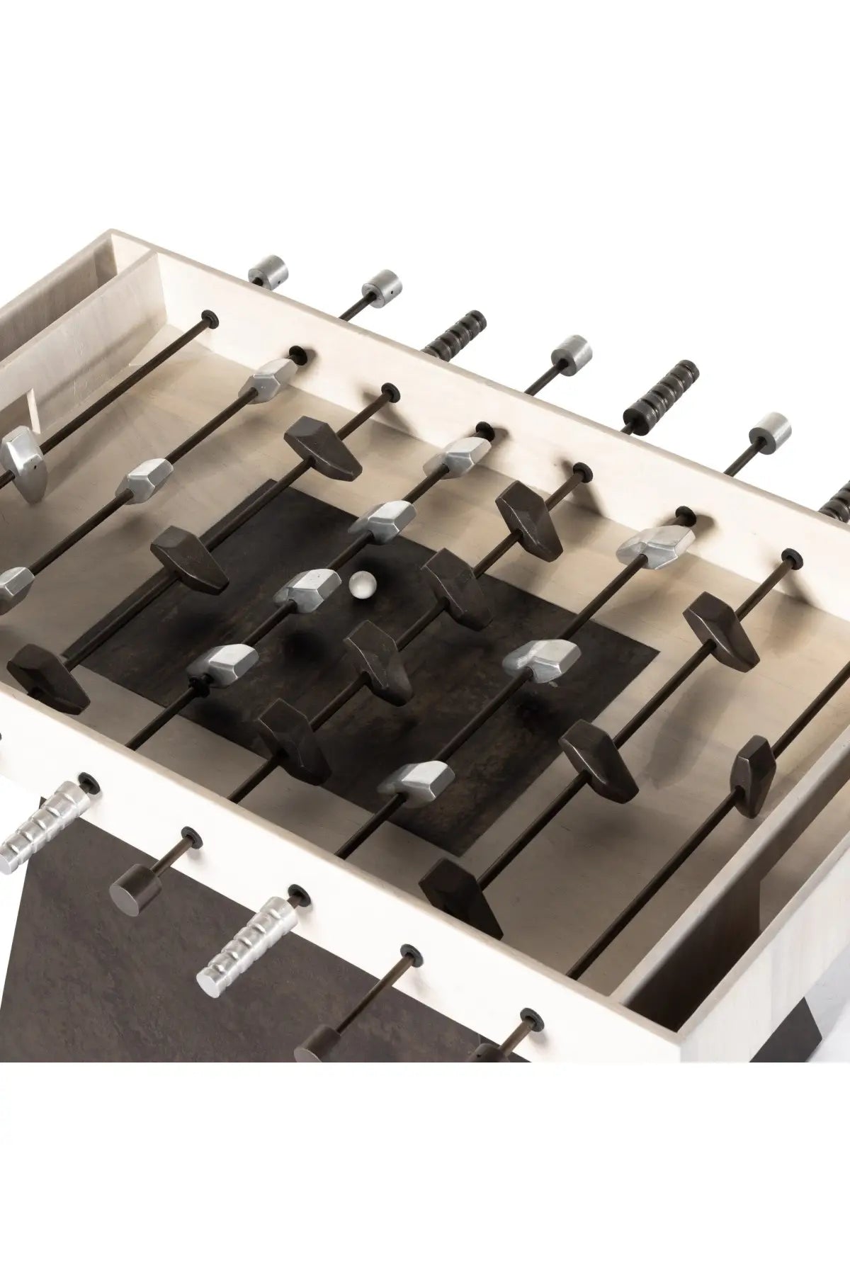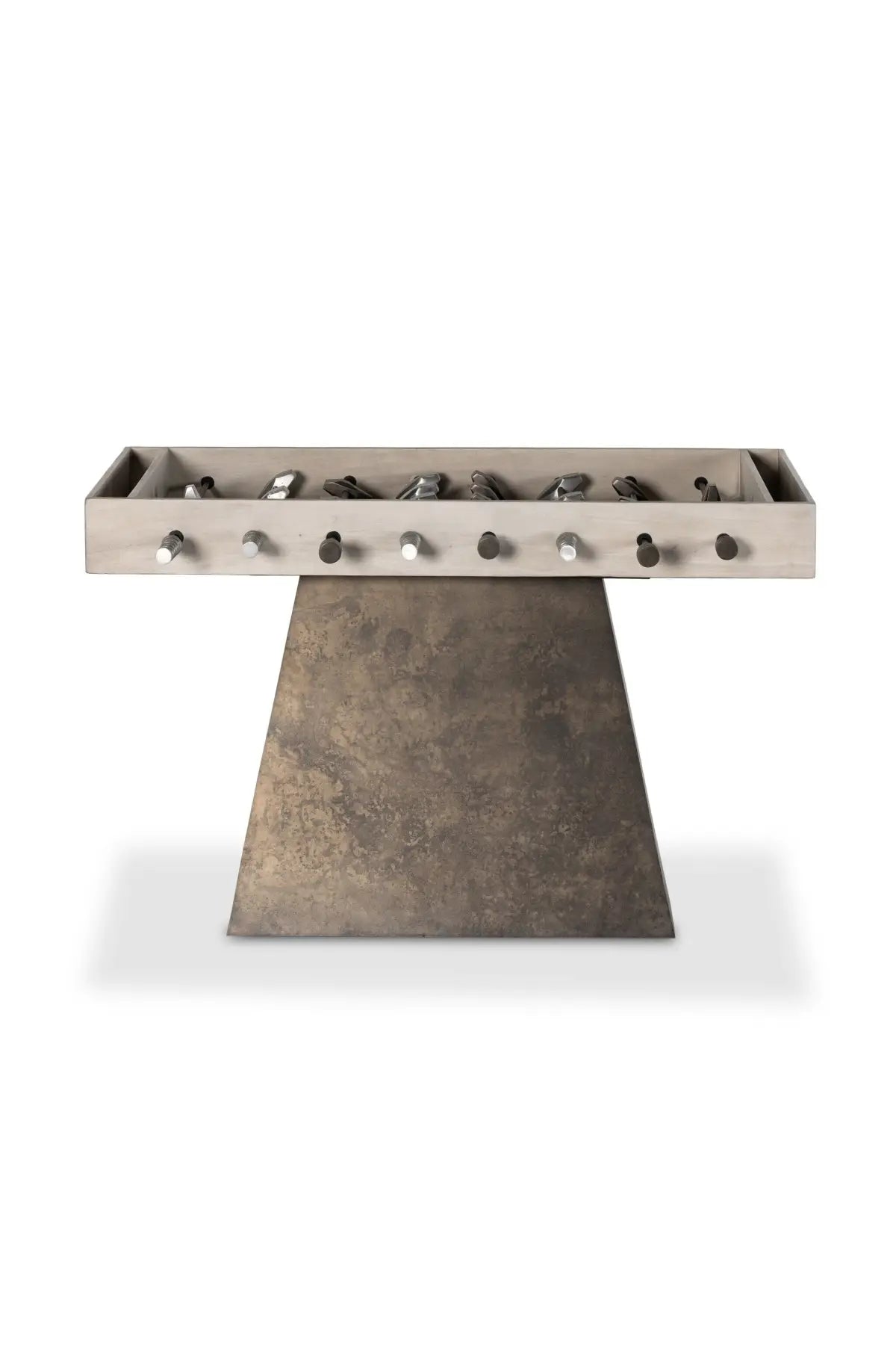 Meet our Foosball Table. Handmade by skilled artisans, this one-of-a-kind game features a beautiful blend of hand-finished Guanacaste wood and metal that’s been aged through a manual, month-long process using natural elements to bring unique character to each piece. Includes three balls.