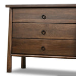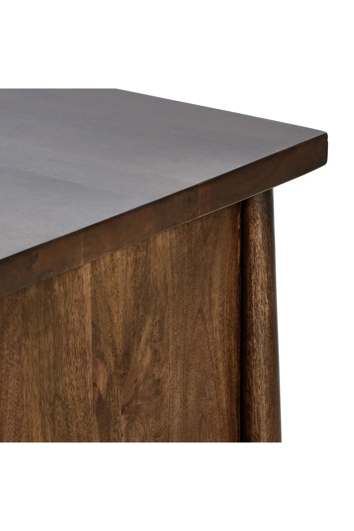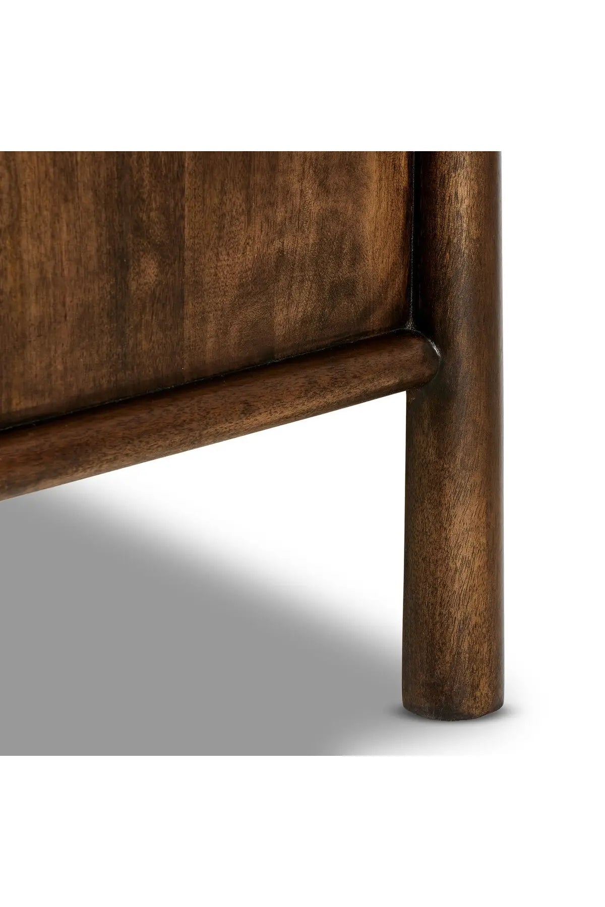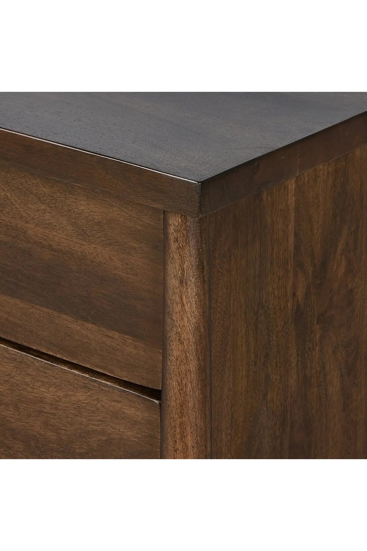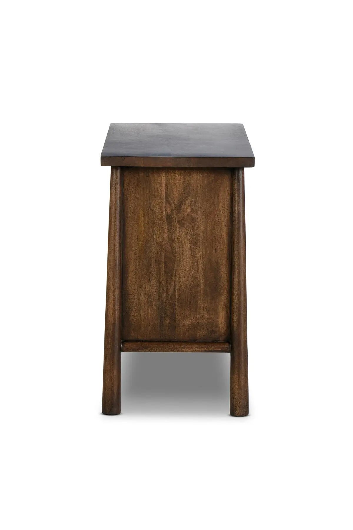 Meet the Freddie Chest. Inspired by French antique design, this dresser stands on round tapered legs with a prominent overhang top. Made of mango wood with cast iron key ring pulls, three drawers make it a versatile choice as a dresser or nightstand.
