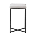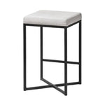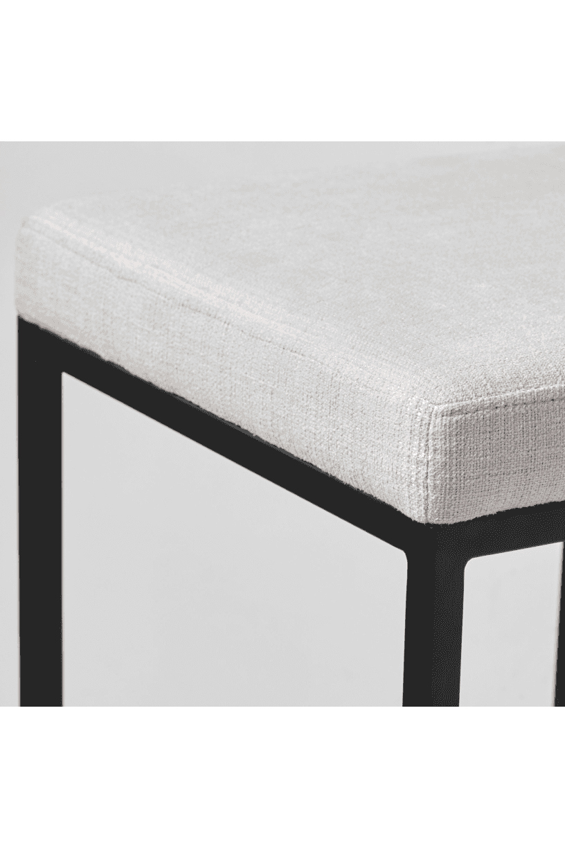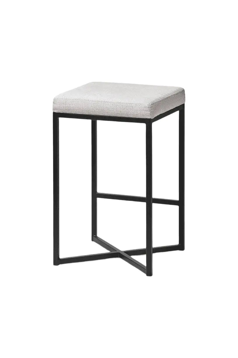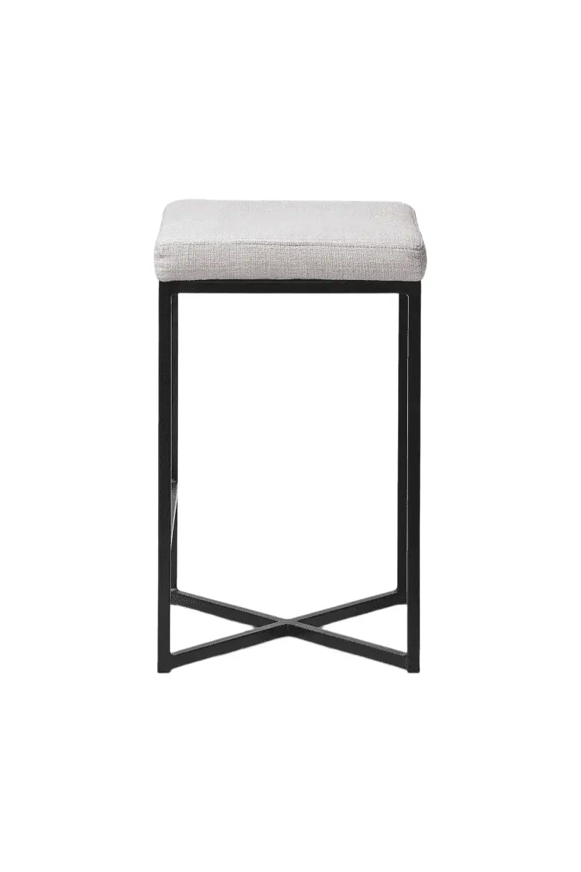 Meet the Frodo Counter Stool. Expertly crafted from metal and finished in a powder-coated matte-black tone, this is a spectacular counter-height stool that features a plush, cream-toned, fabric wrapped rectangular seat that is braced by a four-legged base.