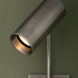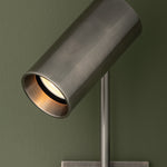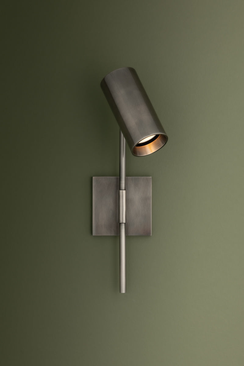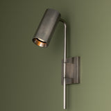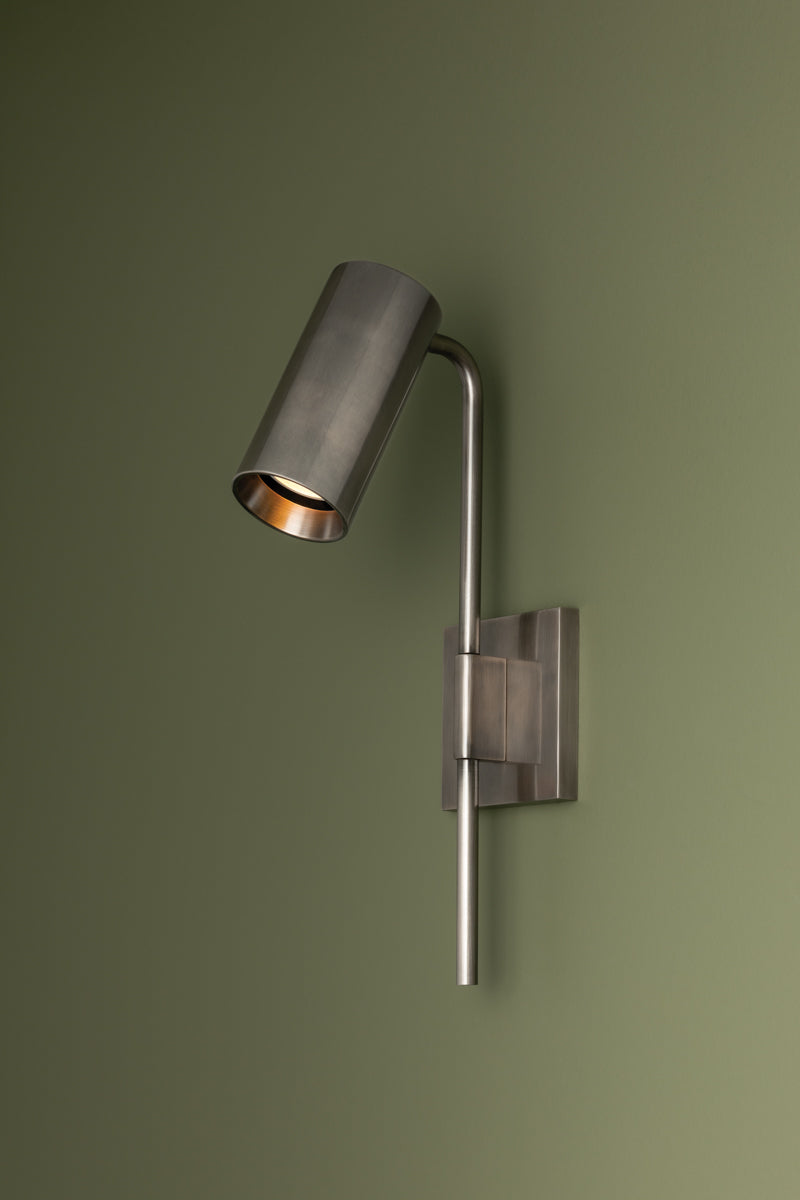 Meet the Gage Sconce. Gage industrial-inspired design creates a sleek spotlight in contemporary interiors. Its minimalist, elongated arm supports a pivoting head, providing flexibility to adjust the light as needed. Available in a Vintage Pewter or Patina Brass finish, this frills-free sconce casts powerful illumination over a desk, table, or bedside. Bulb(s) not included.