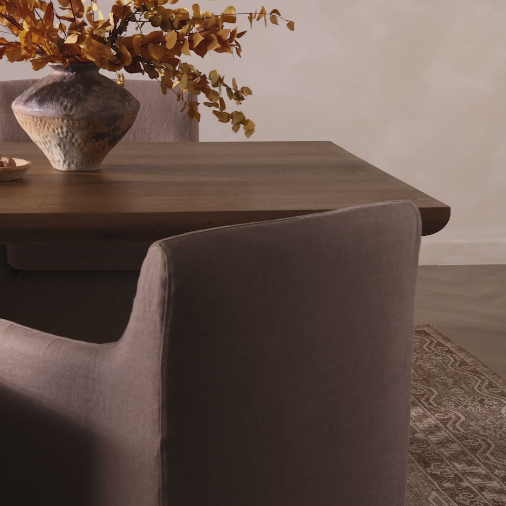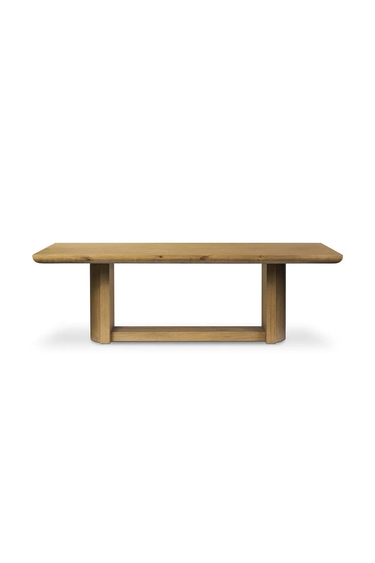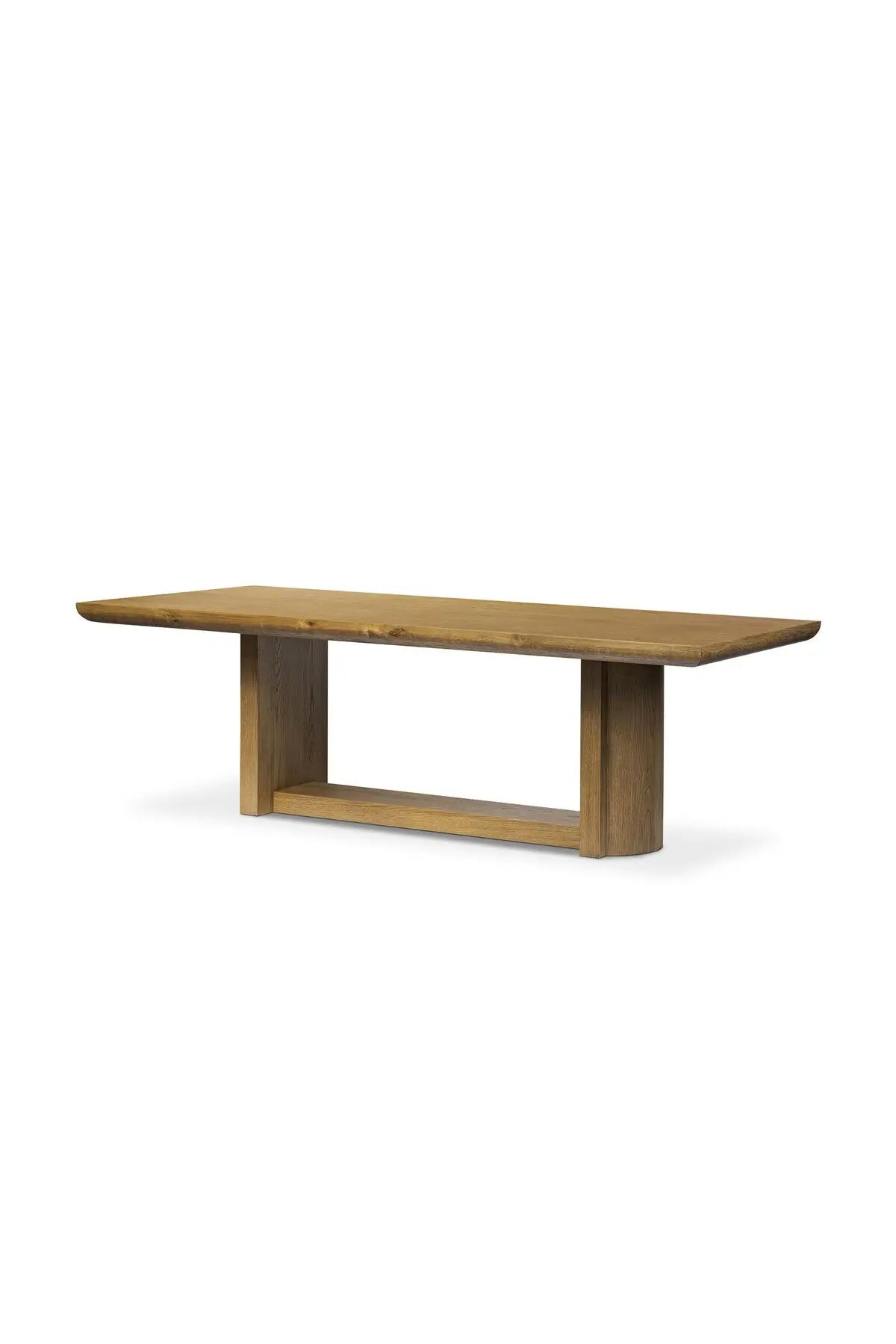 Meet the Garrett Dining Table. Host gatherings big and small with this fresh take on the traditional trestle table, pairing semi-cylindrical legs with linear stretcher detailing. Unique reversed bullnose edging completes the look with an artisan touch.