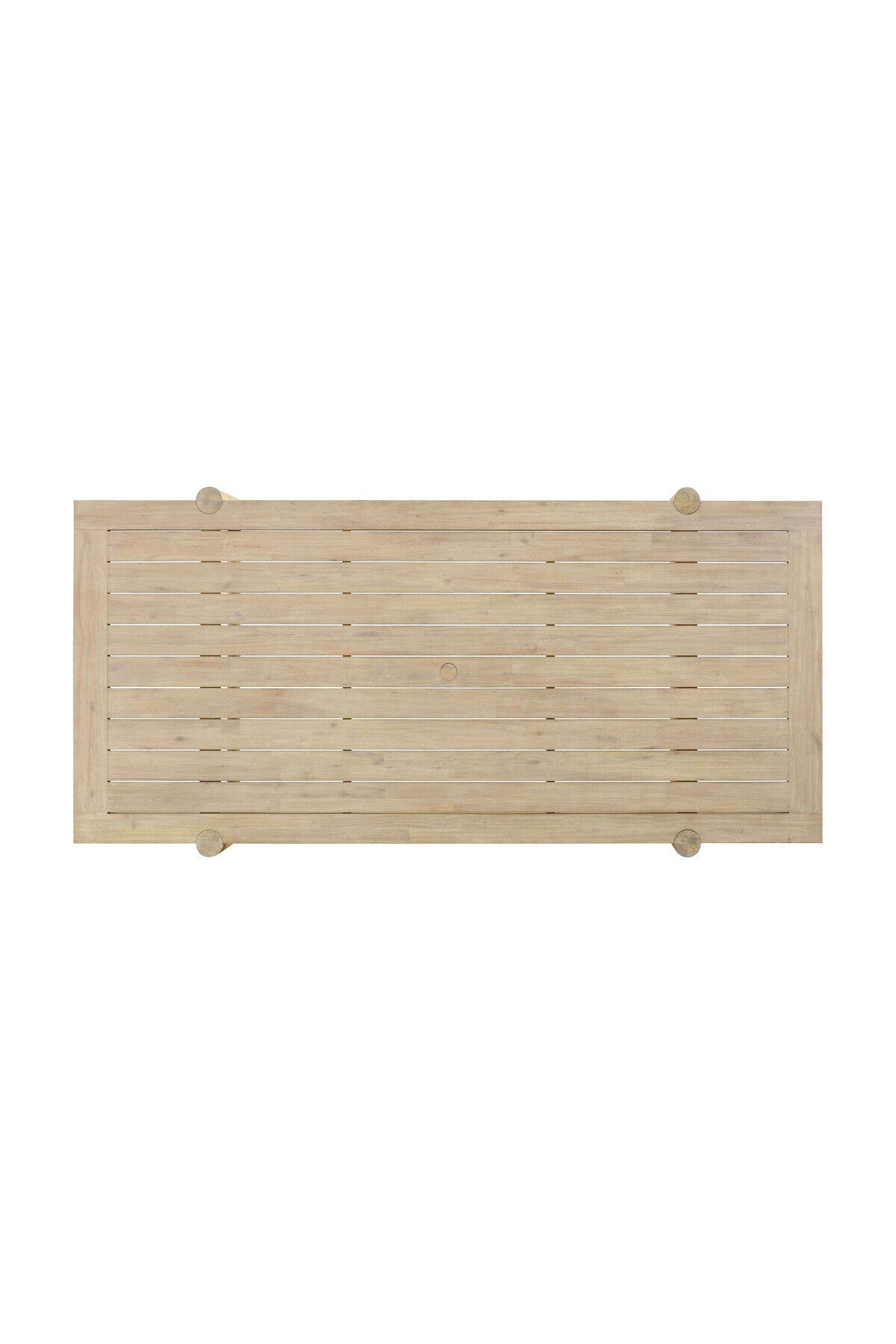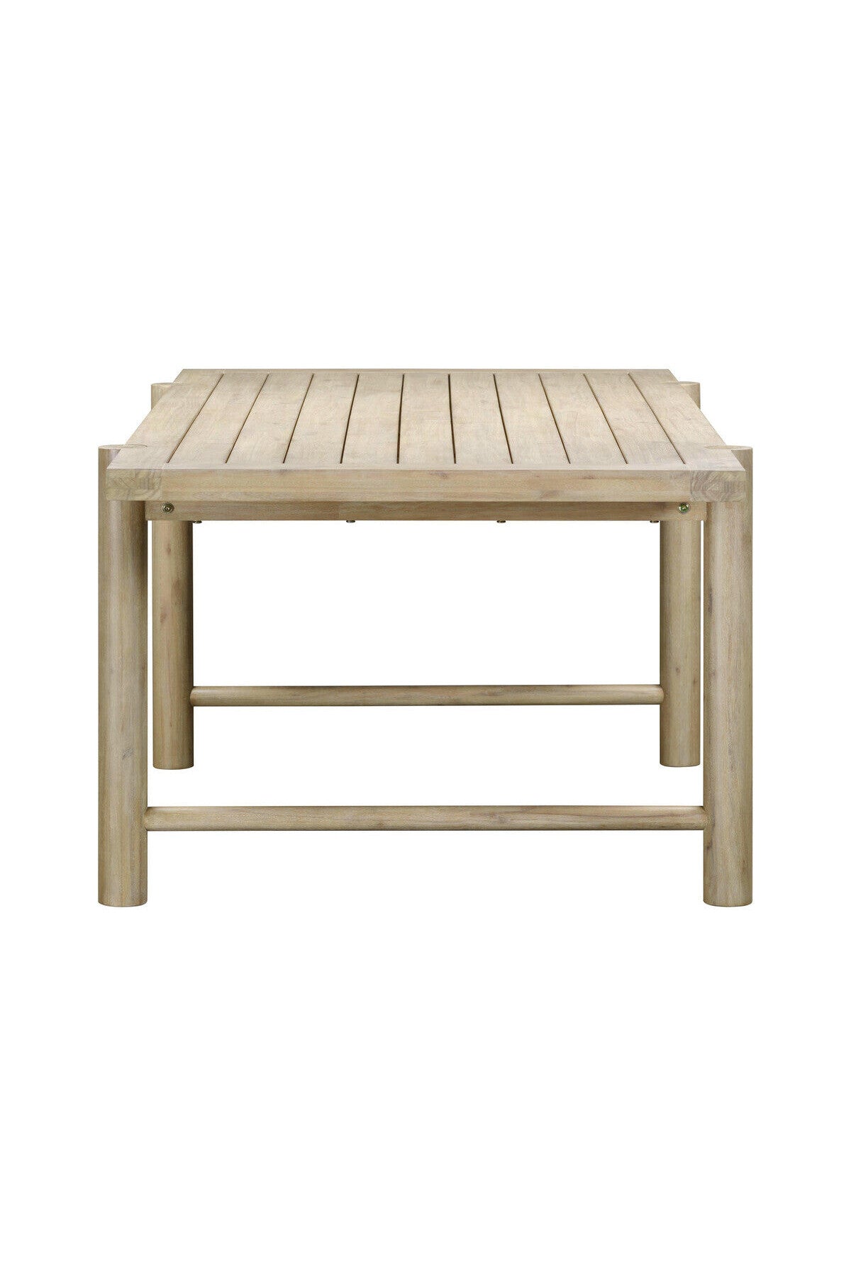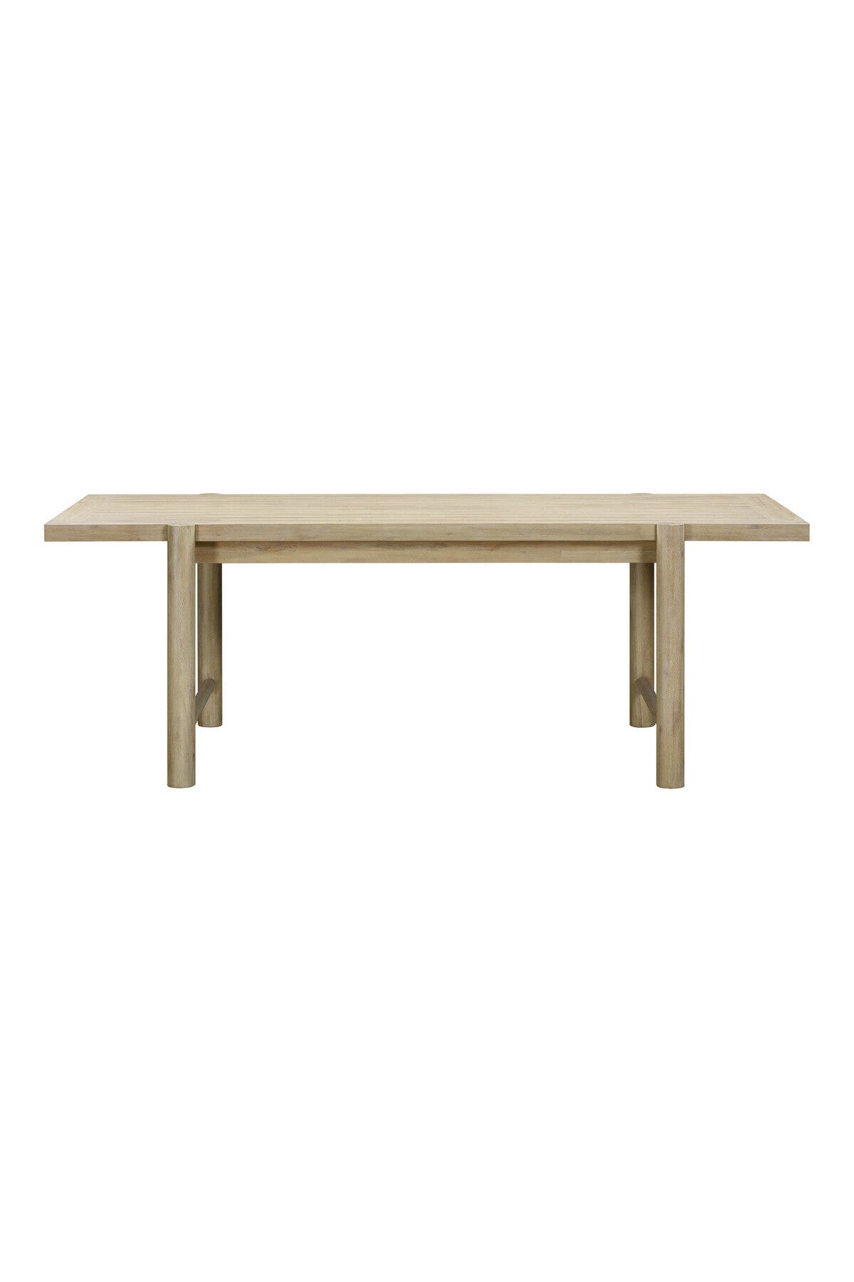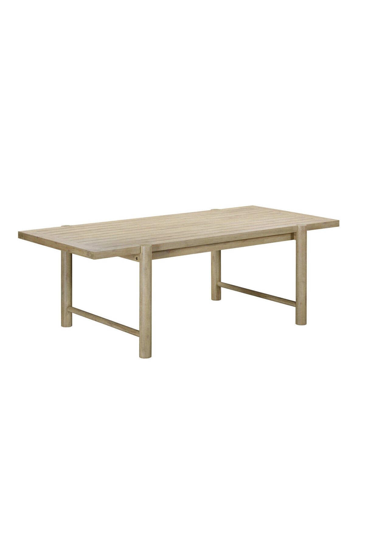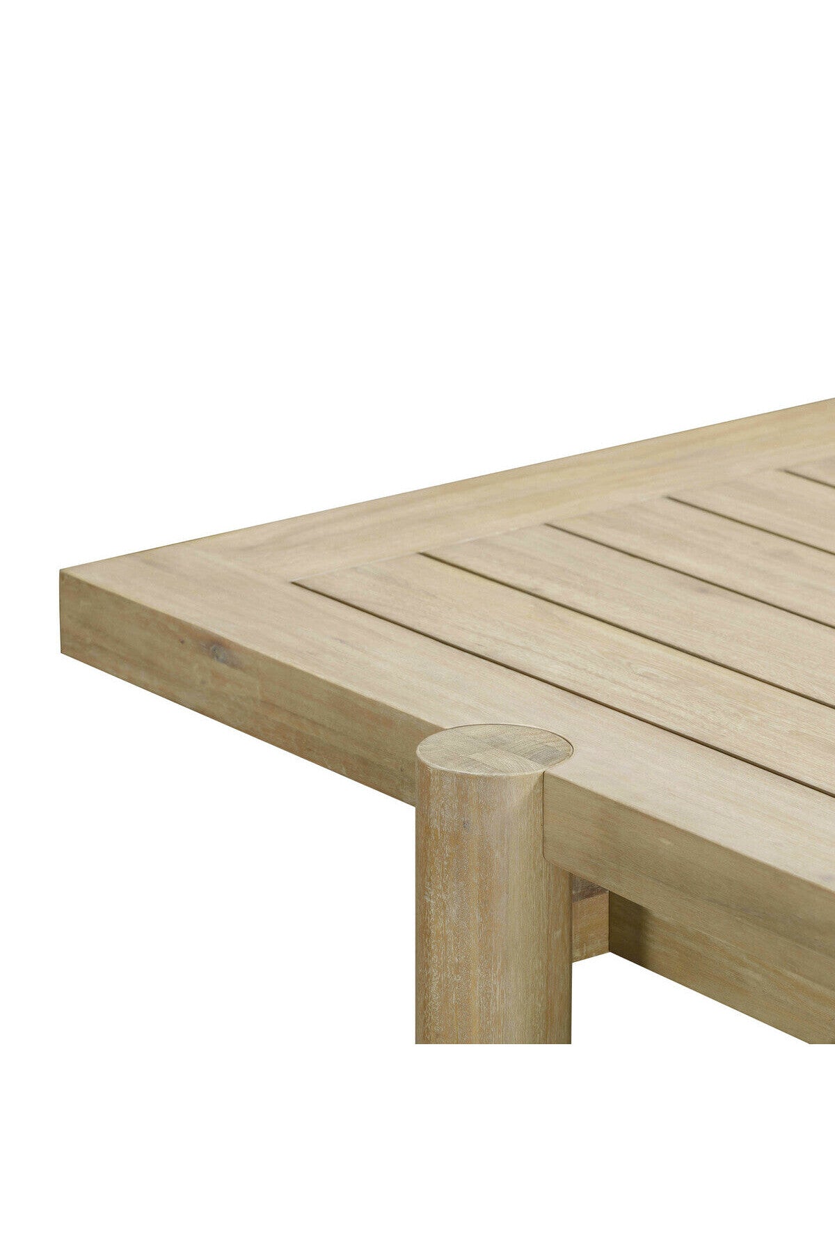 Meet the Gata Outdoor Dining Table. Crafted with solid Eucalyptus wood in a light teak finish, this piece is timeless and durable, complementing any outdoor aesthetic. The dining table features a convenient umbrella hole in the middle, complete with a wooden cap, providing the flexibility to use it with or without an umbrella.