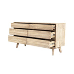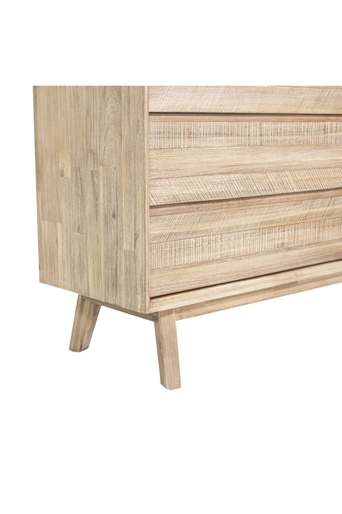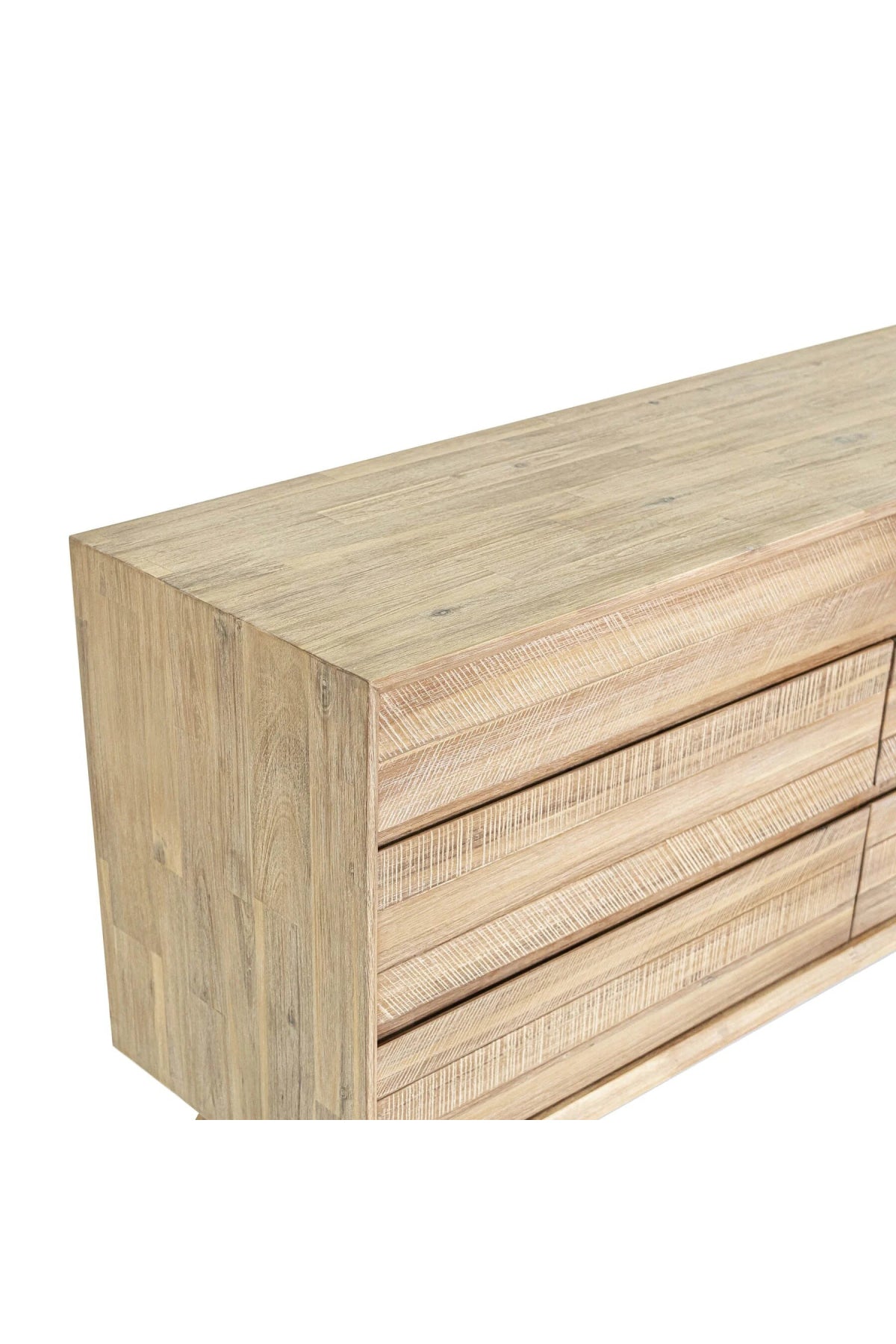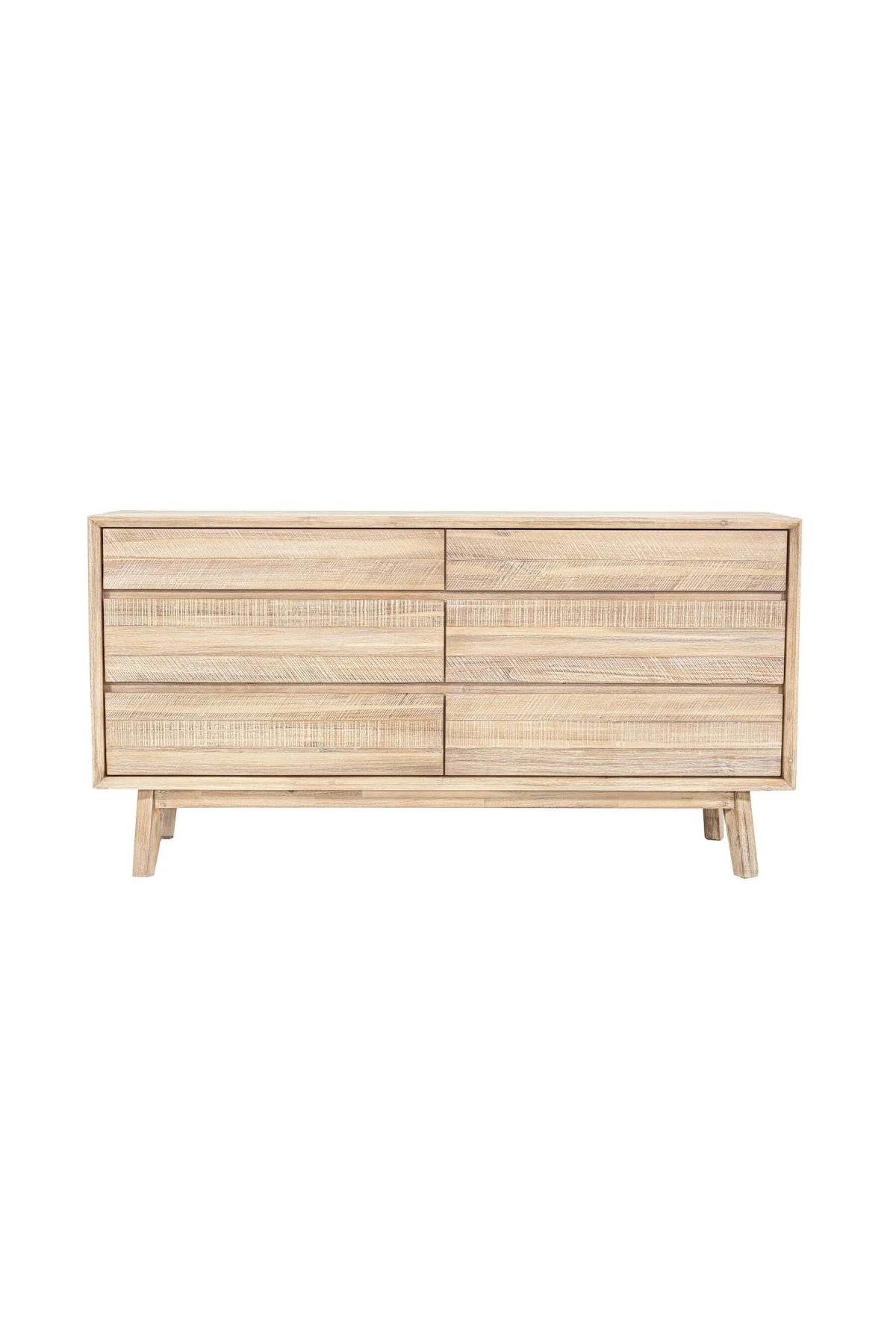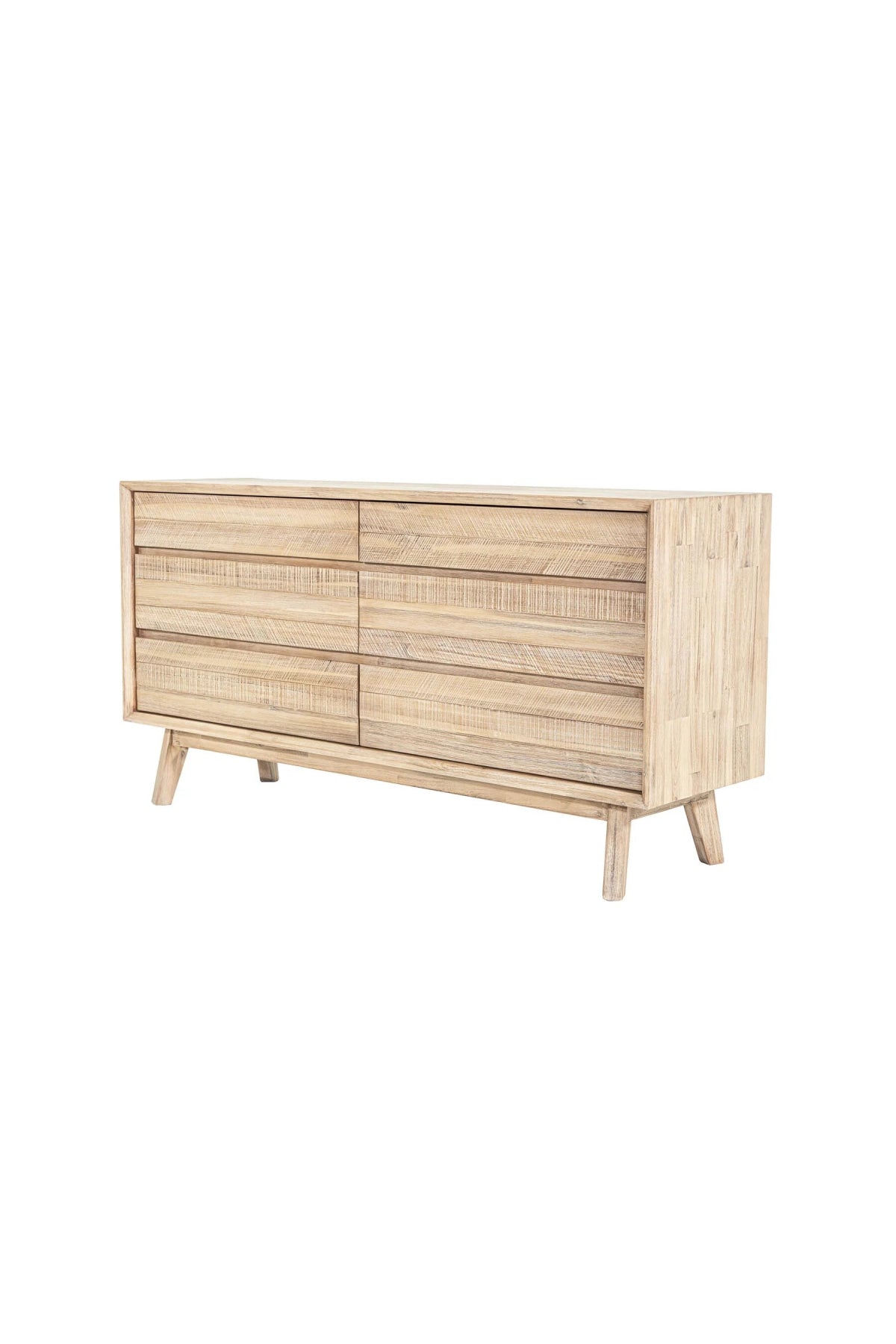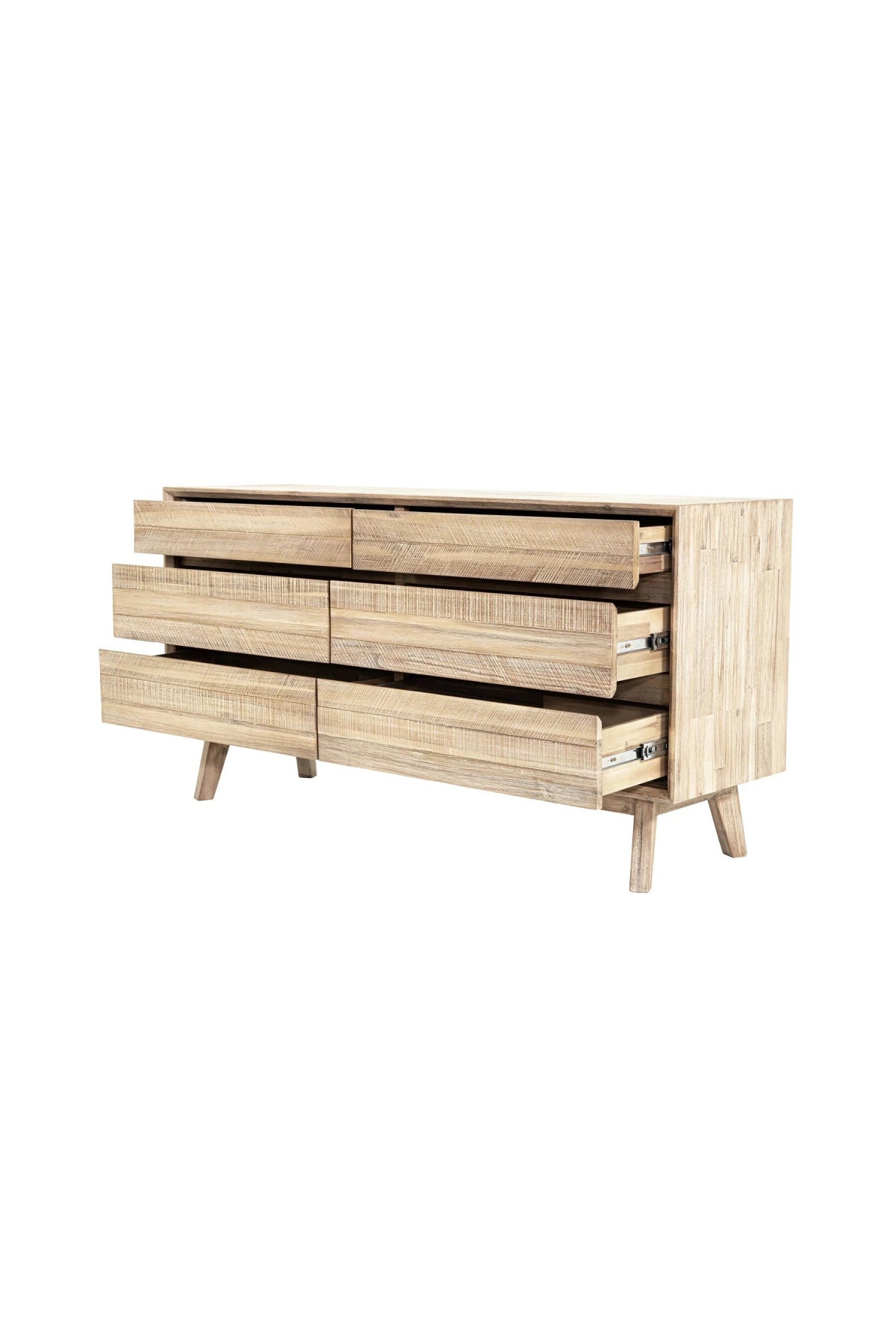 Meet the Gia 6 Drawer Dresser. This piece caters to modern living, with its light yet neutral finish. Made from acacia wood, each piece is steel brushed to add texture and will brighten up any space.