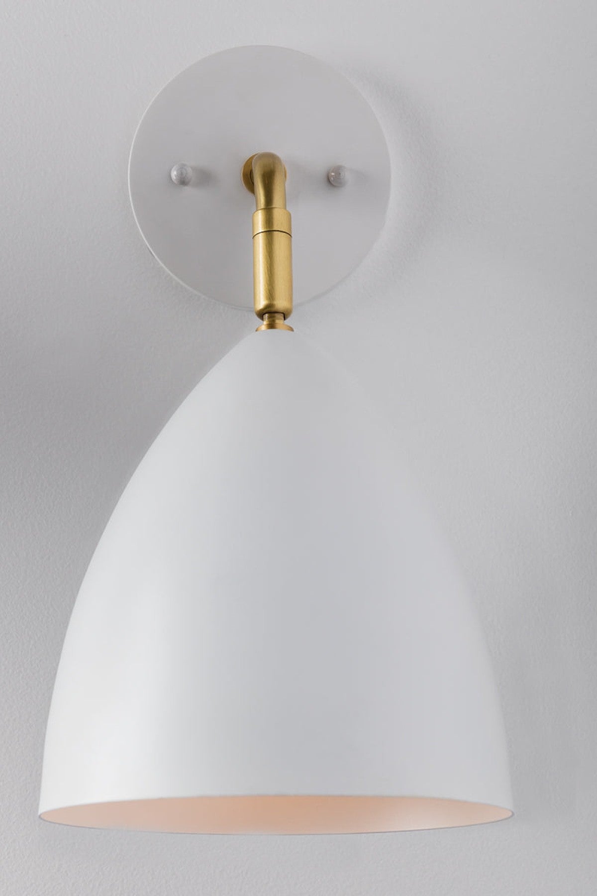 Meet the Gia Sconce. Minimalism meets mid-century modernism, Gia has a functional swivel integrated seamlessly into its streamlined design. Its elegant shade is lined with a glossy cream-color, maximizing the light reflecting off it. Bulb(s) not included.