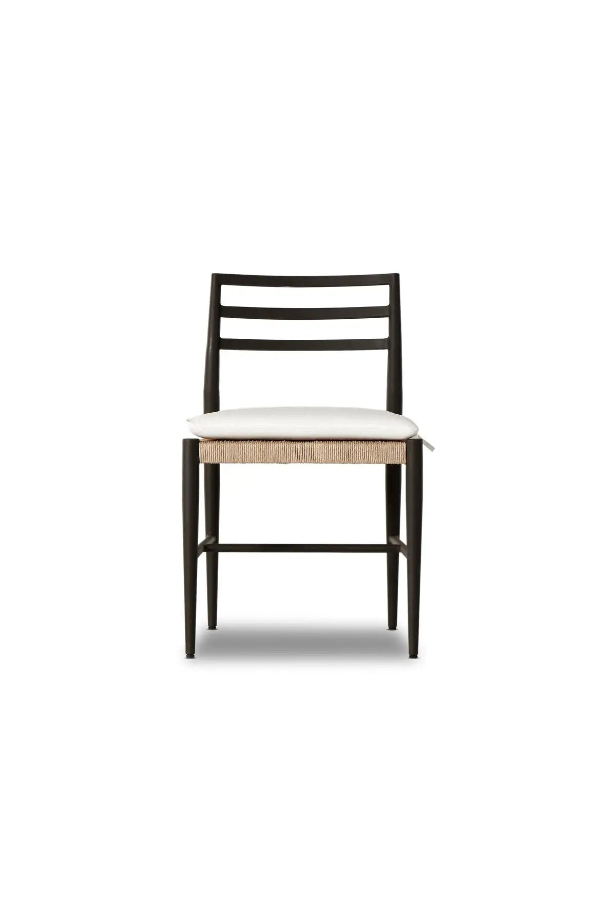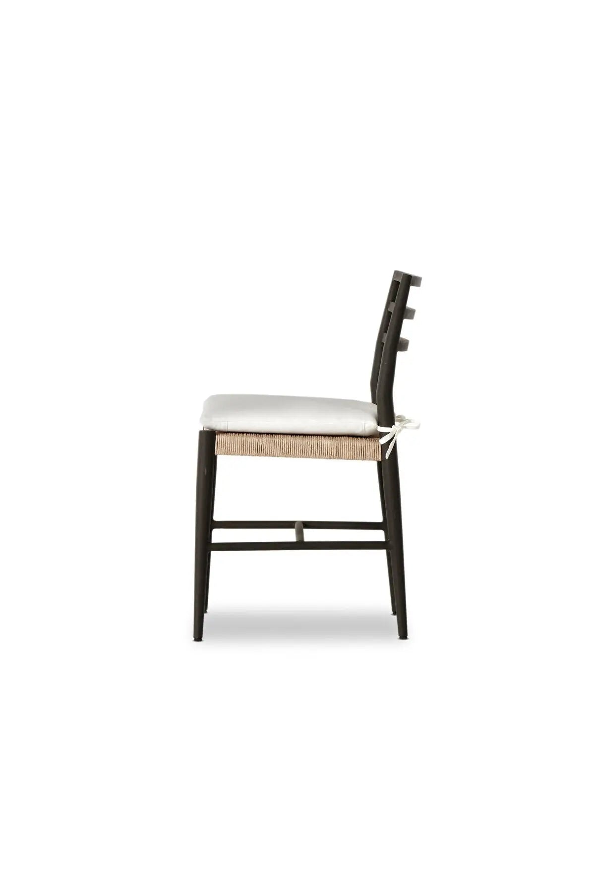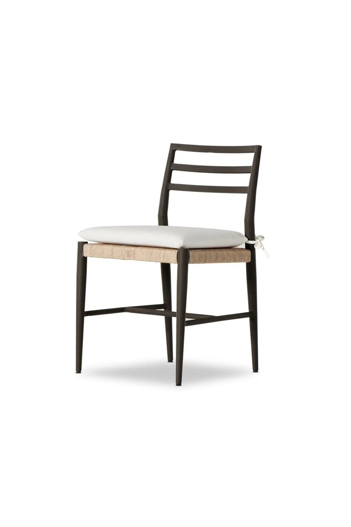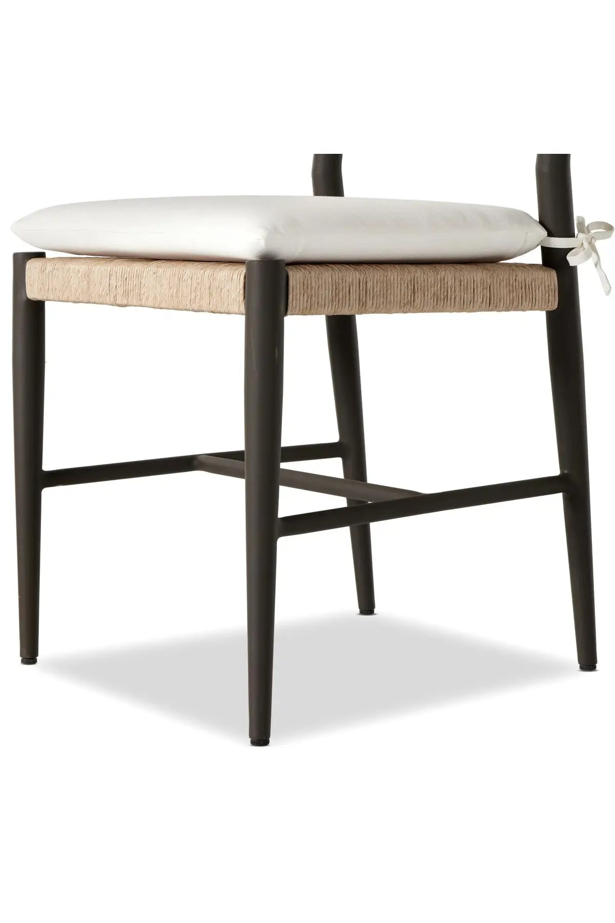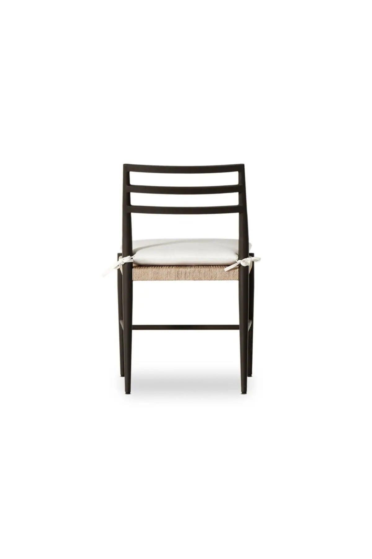 Meet the Glenmore Outdoor Dining Chair. A classic indoor silhouette moves outside. Durable aluminum redefines the classic ladderback chair. Woven seating with a removable cushion offers sleek comfort. Cover or store indoors during inclement weather and when not in use.