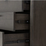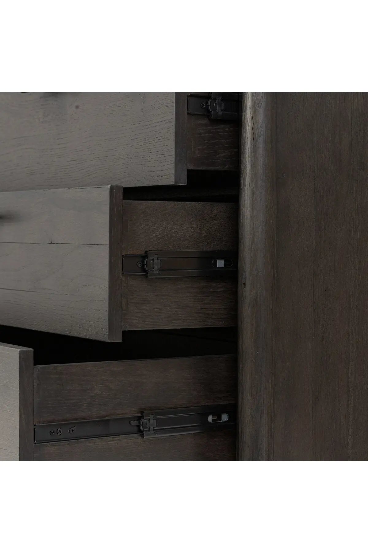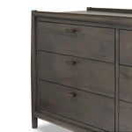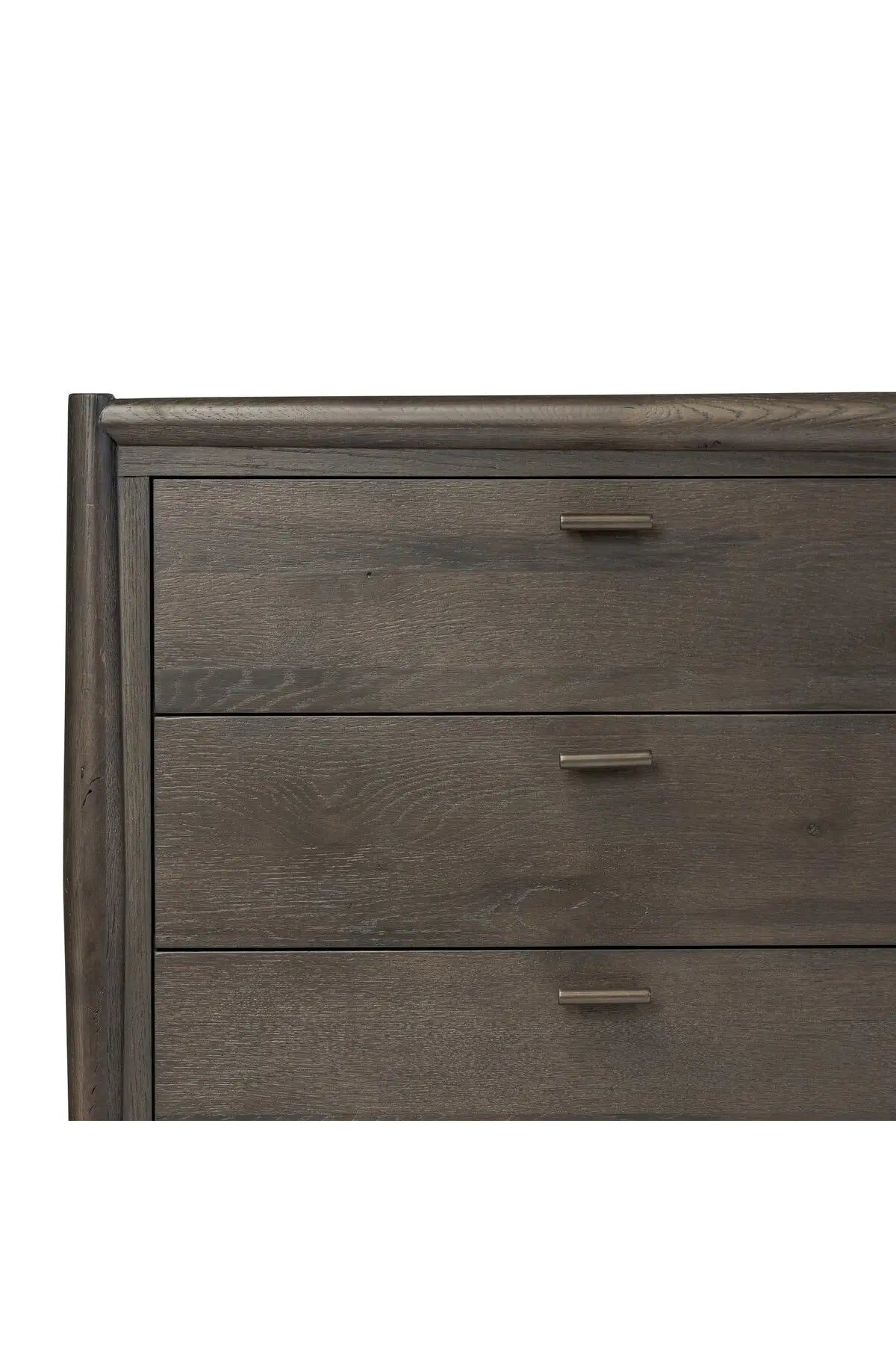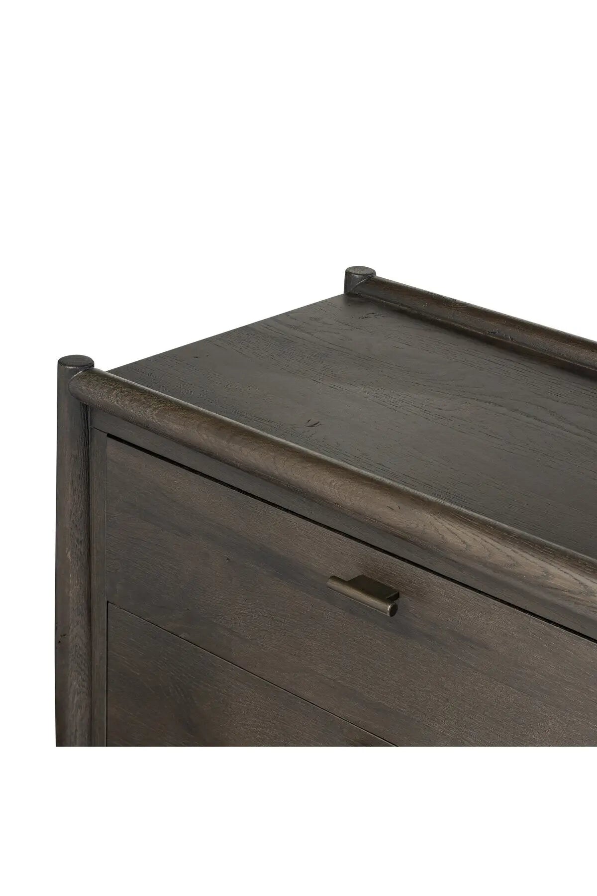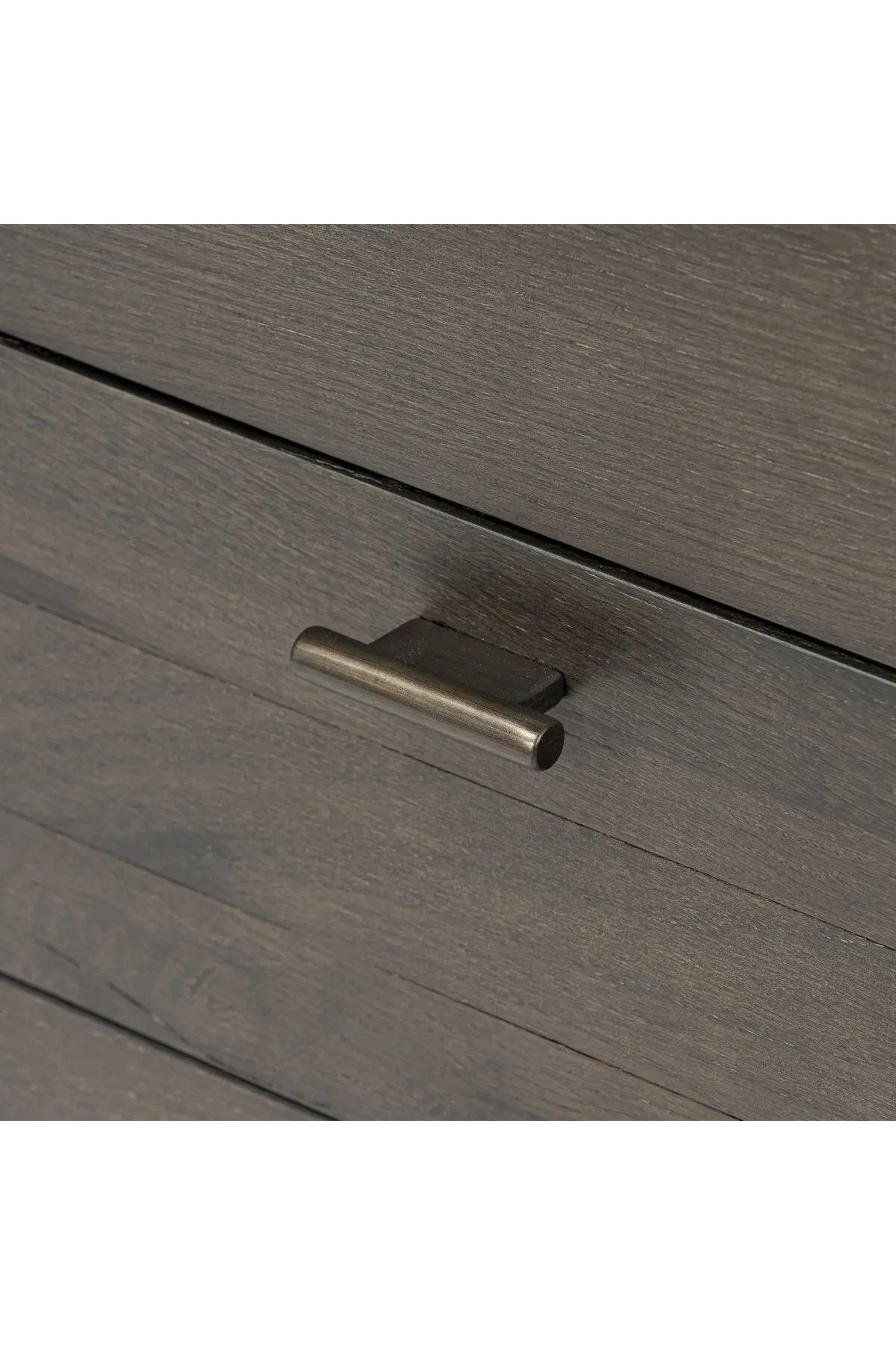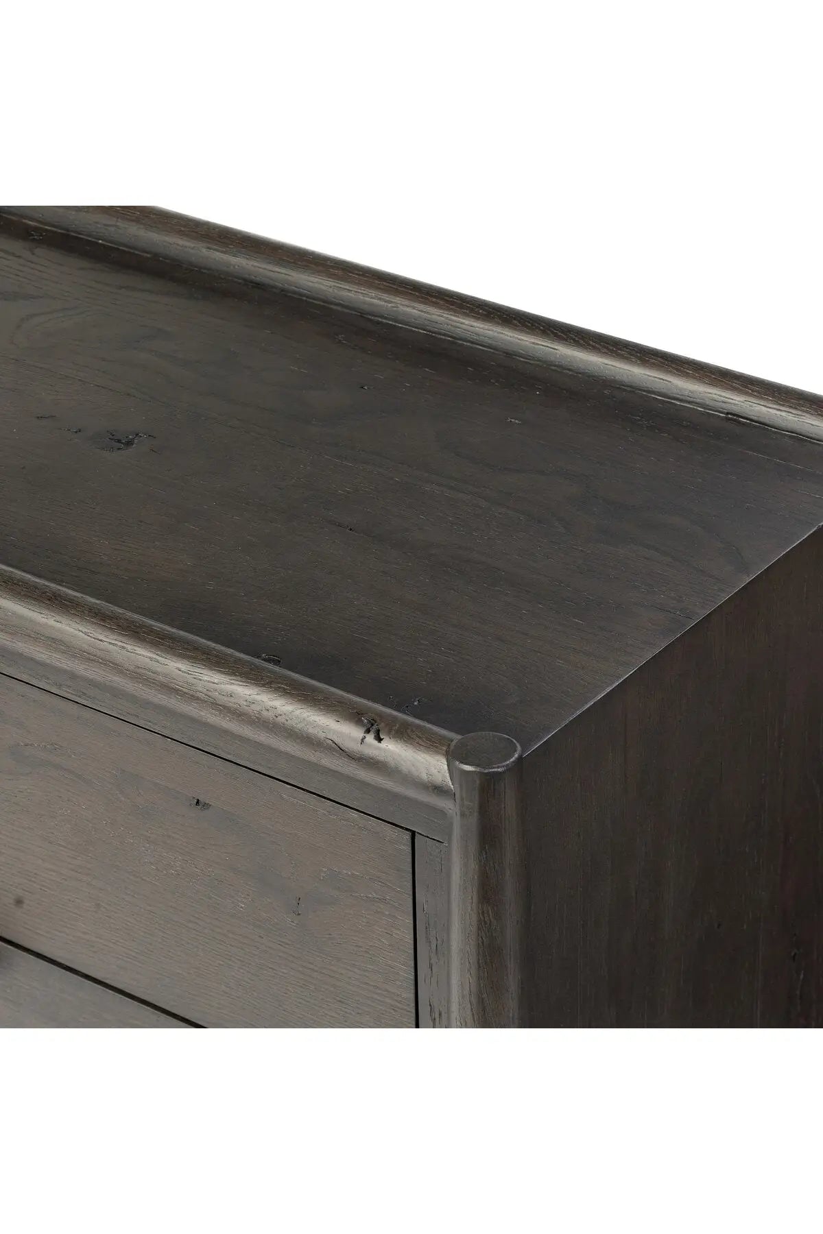 Meet the Glenview 6 Drawer Dresser. The traditional spindle structure brought to modern speed. Made from smoked black oak, six spacious drawers bring generous storage space to the bedroom. Simple cylindrical hardware is finished in an aged bronze.