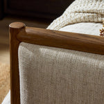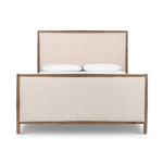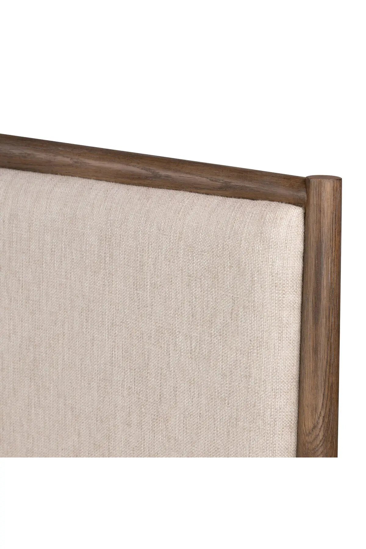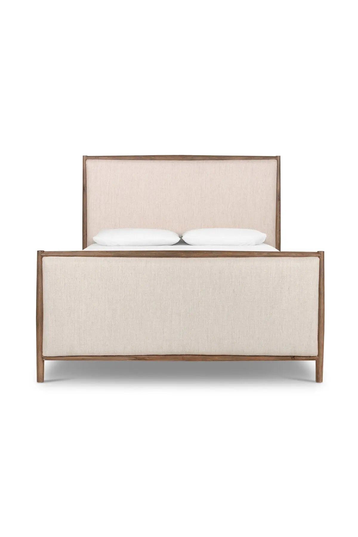 Meet the Glenview Bed! Weathered oak and light, linen-like upholstery fuse for a new take on traditional. Slats included.