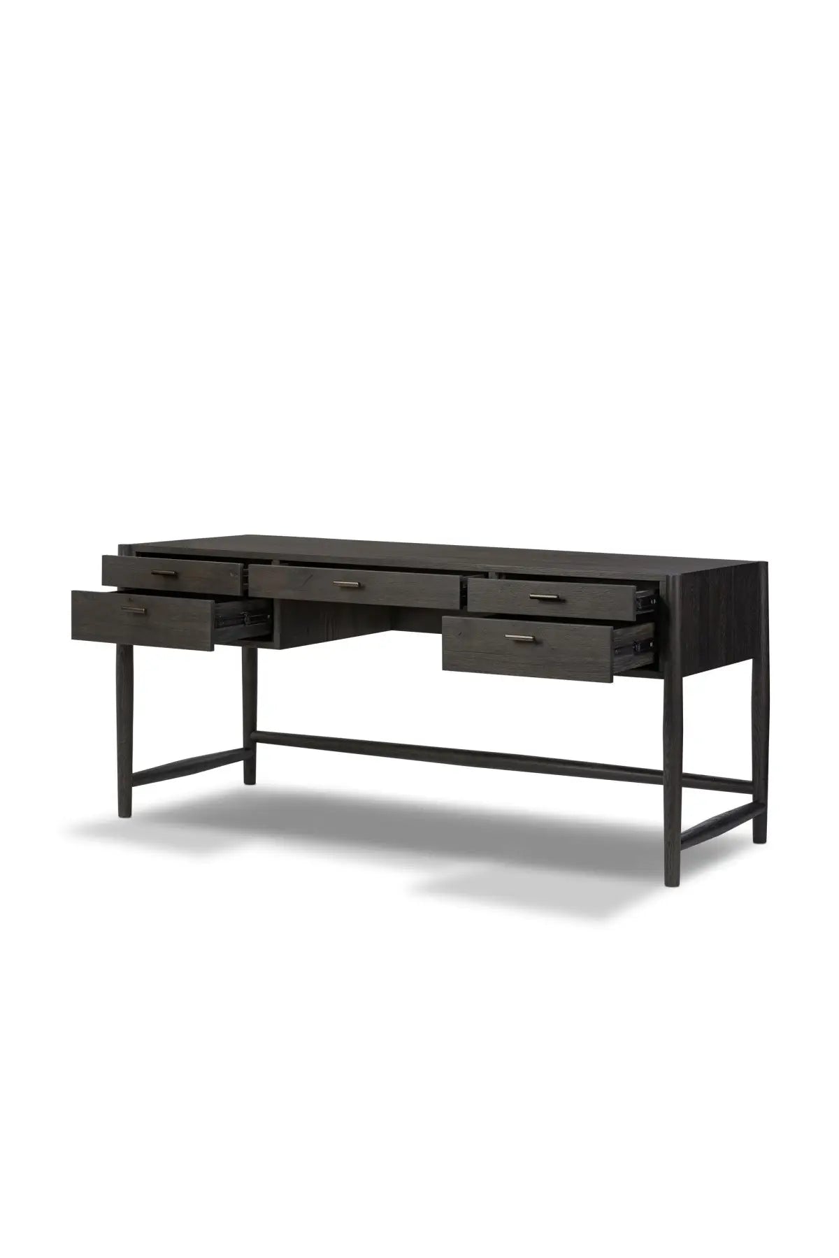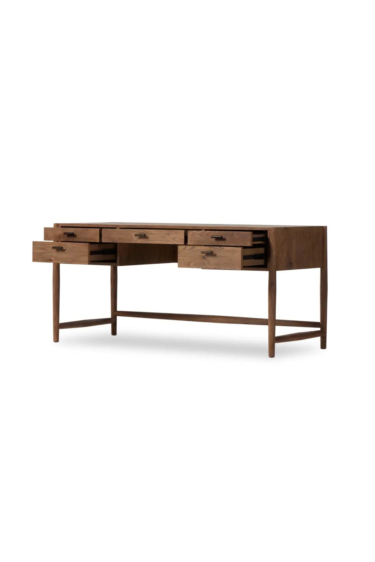 Meet the Glenview Desk. Traditional, reimagined. Made from oak, this desk brings generous storage space to the office. Simple hardware is finished in an aged bronze.