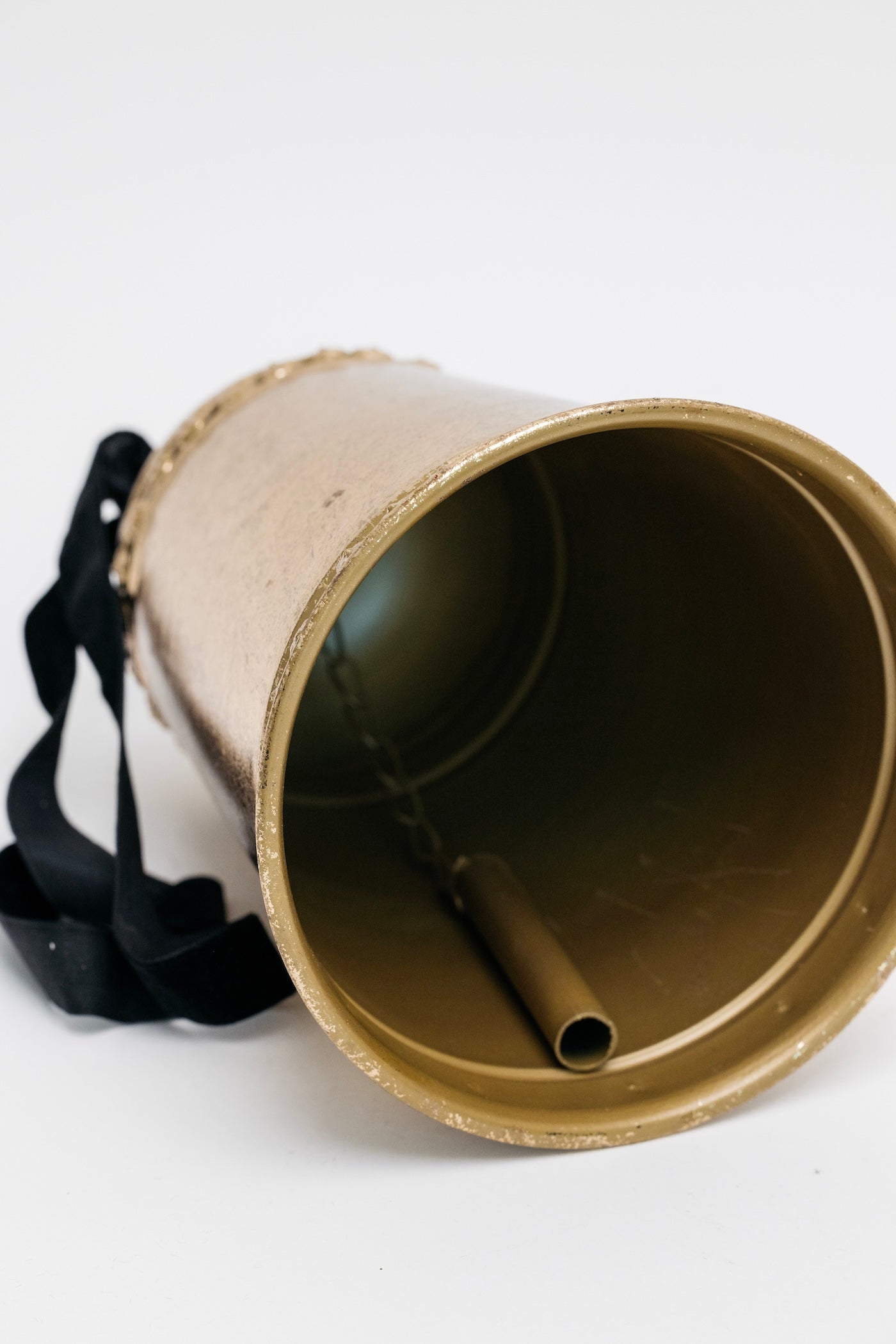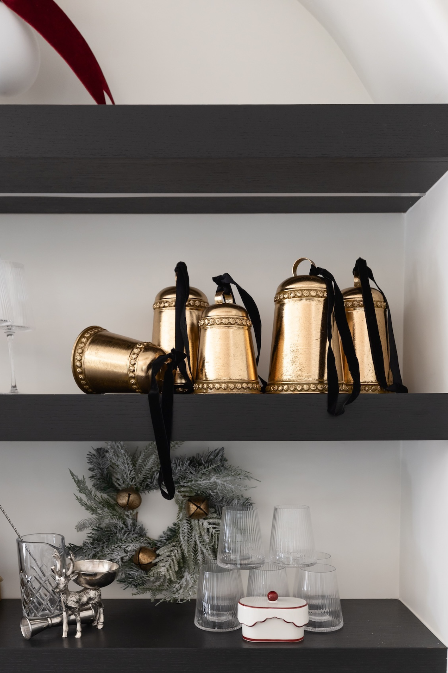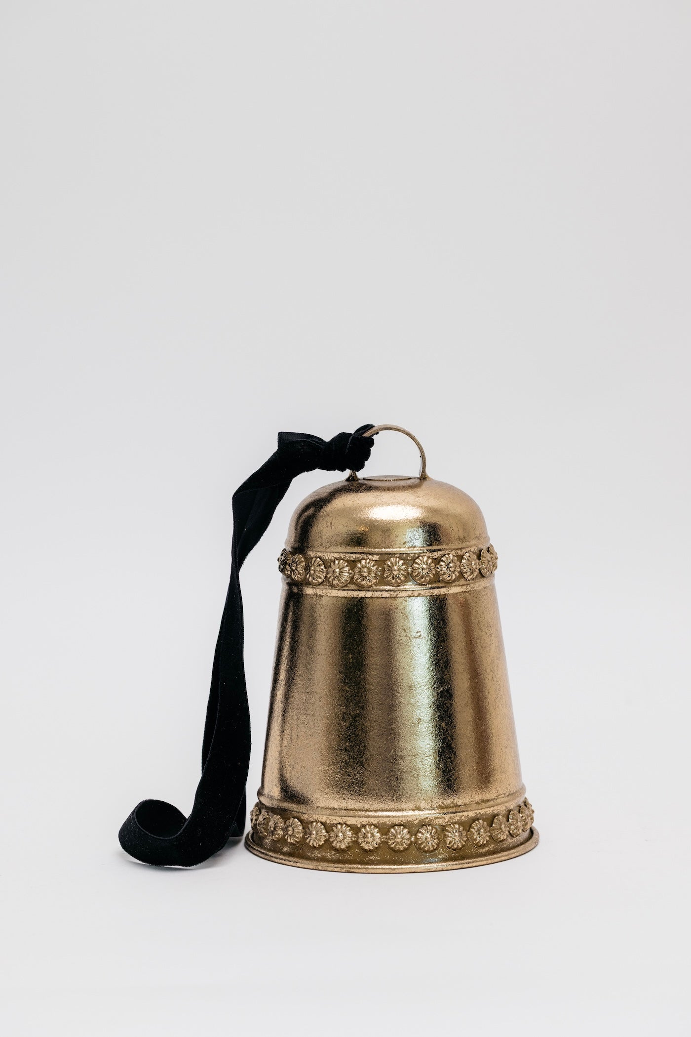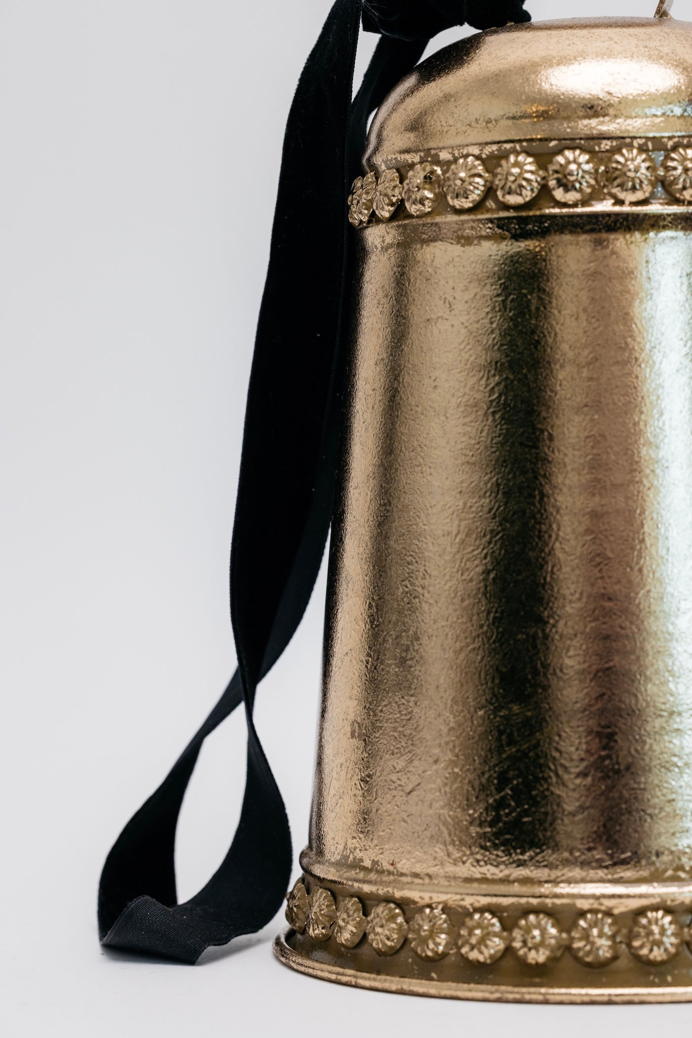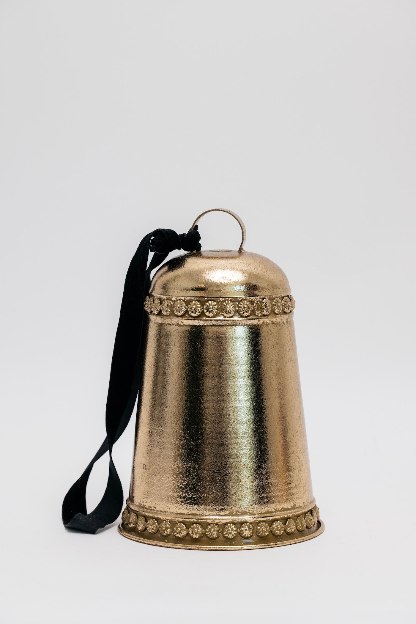 Ring in the holiday spirit with the Gold Bell with Ribbon! With its charming design and jolly sound, this bell is perfect for displaying anywhere that needs a little holiday cheer.
