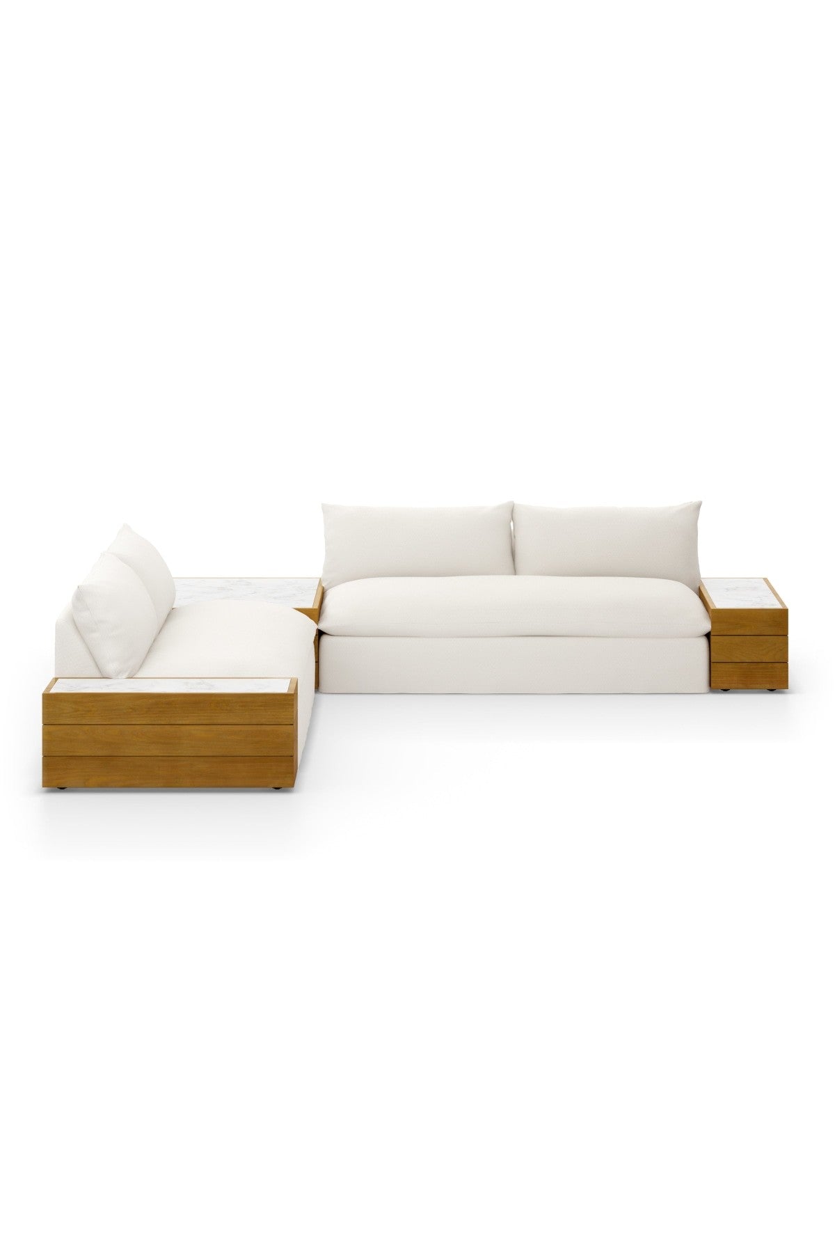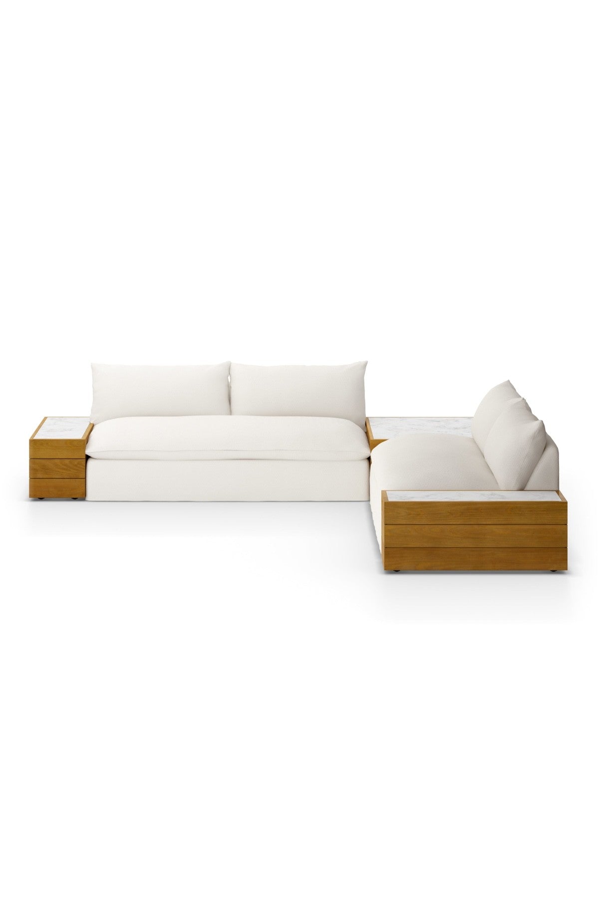 The Grant Outdoor 2-Piece Sectional with Coffee & End Tables offers stylish, comfortable outdoor seating with durable, UV-resistant cushions. Featuring teak tables for convenience, this set is perfect for relaxing and entertaining. Easy to maintain, it’s designed for lasting comfort and casual elegance.