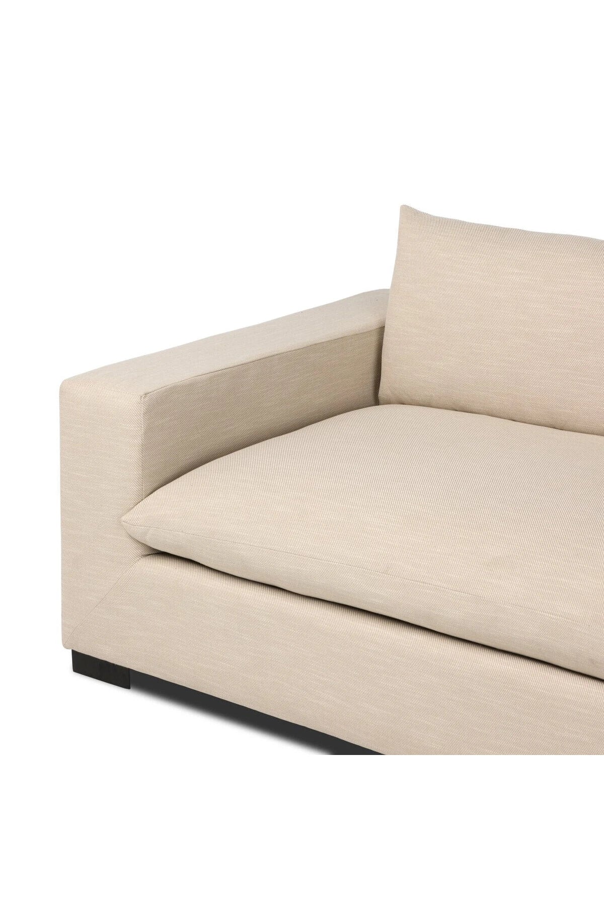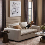 Welcome to the modern lounging essential - the Grant Sofa. A timeless track arm sofa is upholstered in neutral oatmeal performance fabric and finished with wooden block legs. Soft, easy to clean and free of PFAS, Crypton® performance fabric is specially engineered for protection against stains, moisture and odor.