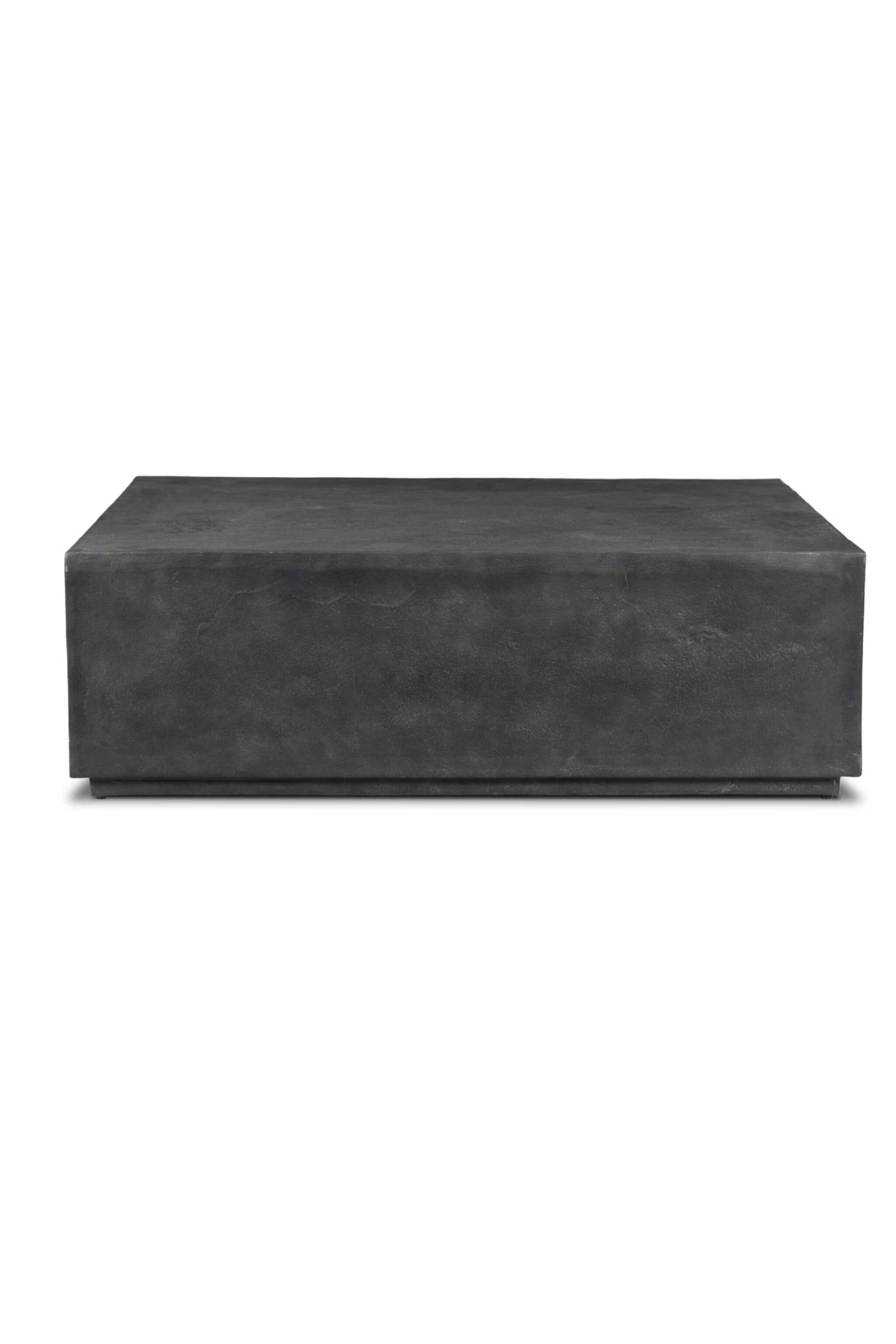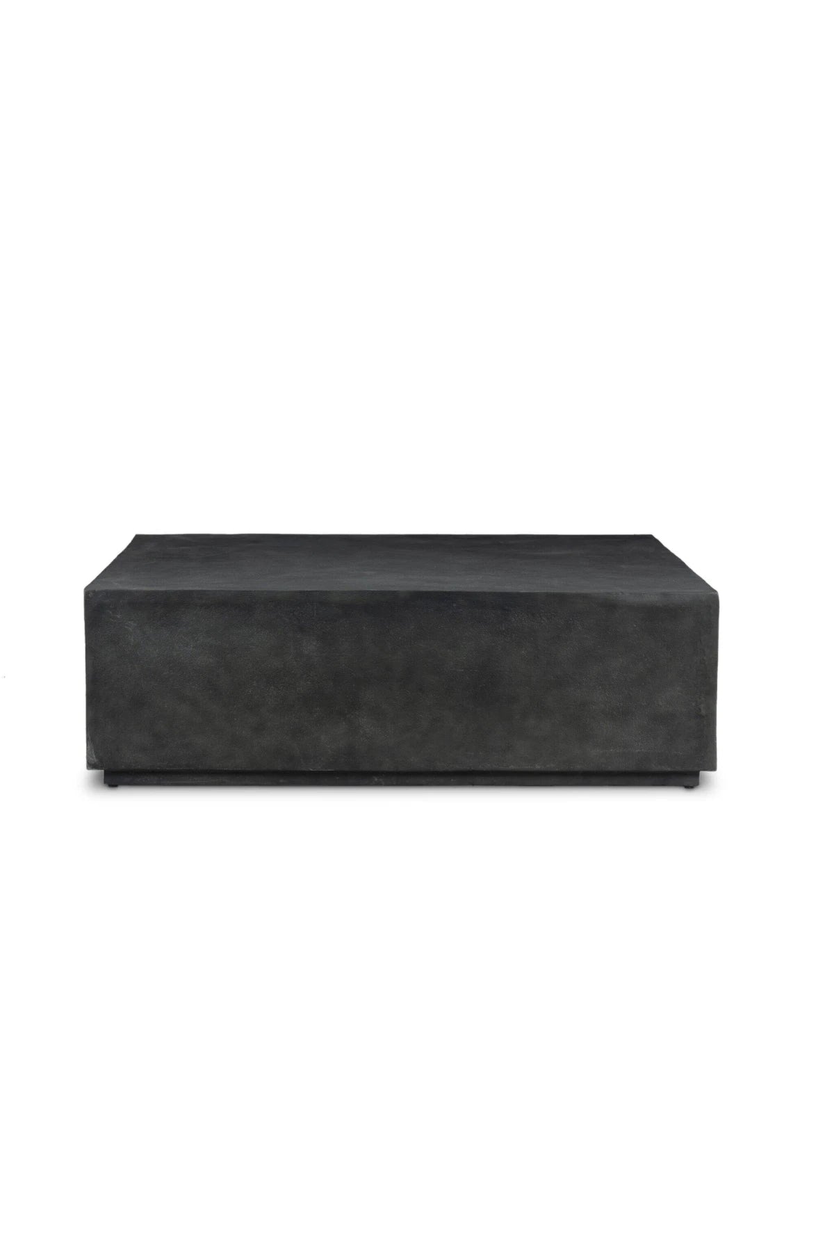 Meet the Graso Outdoor Coffee Table. Let the beauty of simplicity shine. A plinth-style outdoor coffee table is crafted of cast aluminum in a deep aged grey. Cover or store indoors during inclement weather and when not in use.