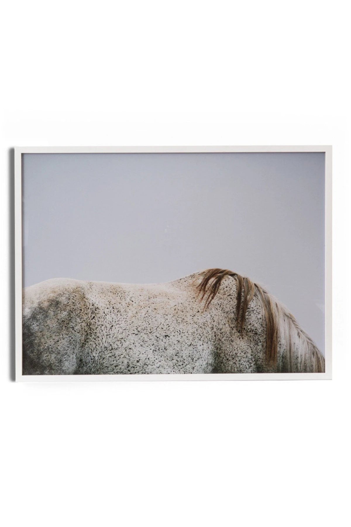 Meet Graze. The simple side profile of a bowed-head horse is printed on top-quality photo paper and framed within white American maple, for clean, striking effect.