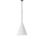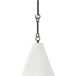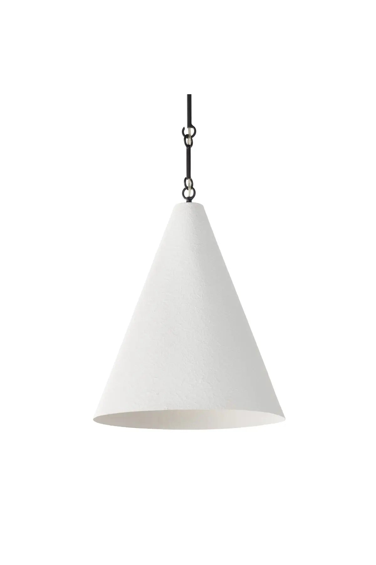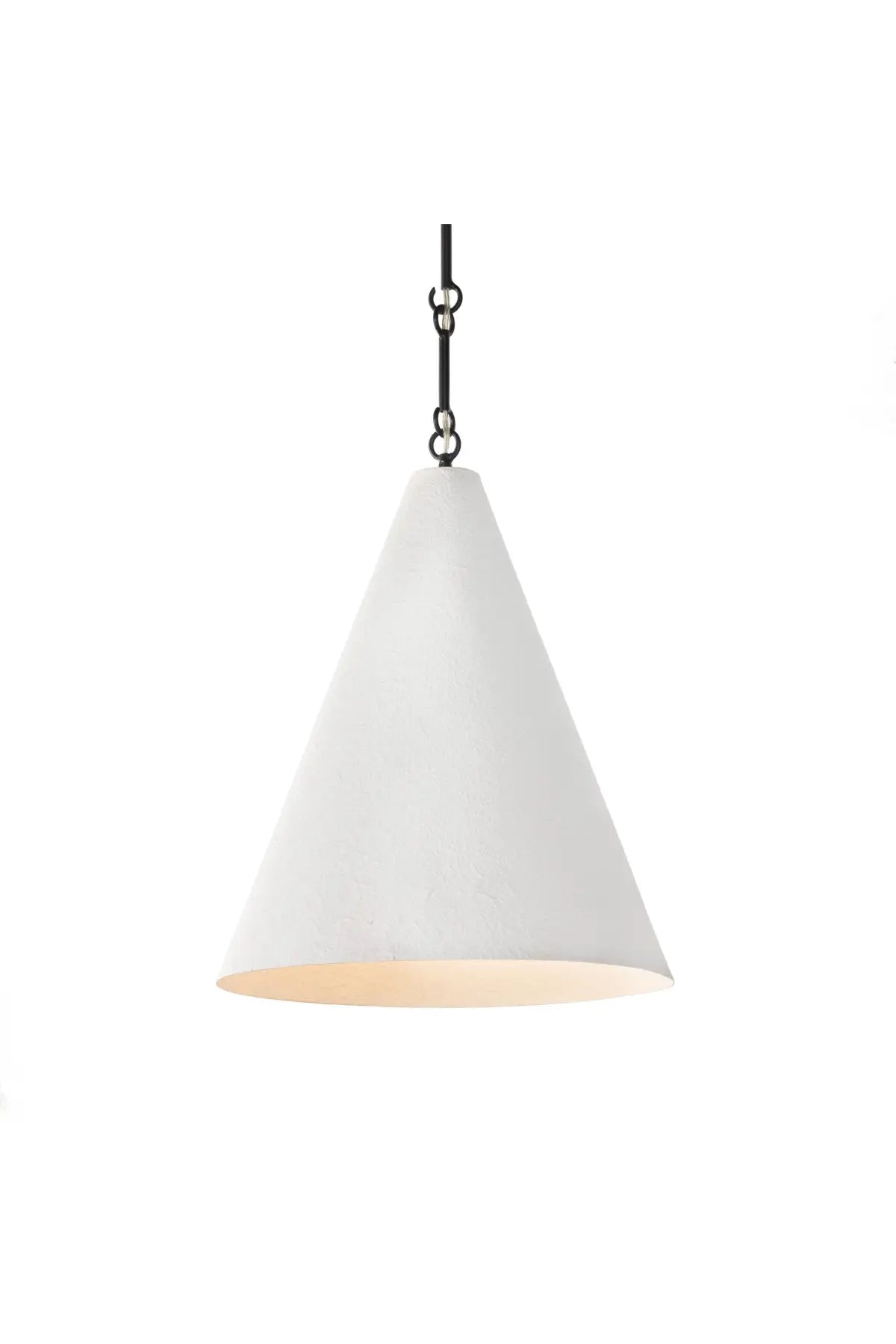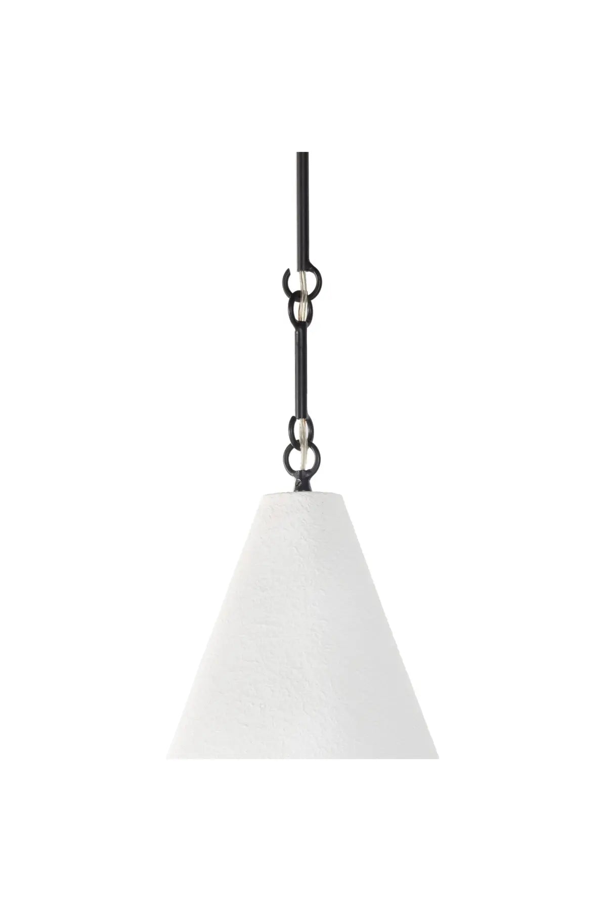 Simple and modern, the Grazia Pendant has a hand-molded look. Cast aluminum in a crisp matte plaster finish is complemented with antiqued iron hardware and a jewelry-inspired chain. Bulb(s) not included.