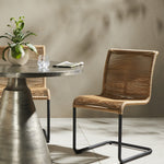 Meet the Grover Outdoor Dining Chair. Attractive curvature summons a sit. A slim iron frame supports woven all-weather wicker seating for a textural twist on cantilever-style seating. Cover or store indoors during inclement weather and when not in use.