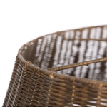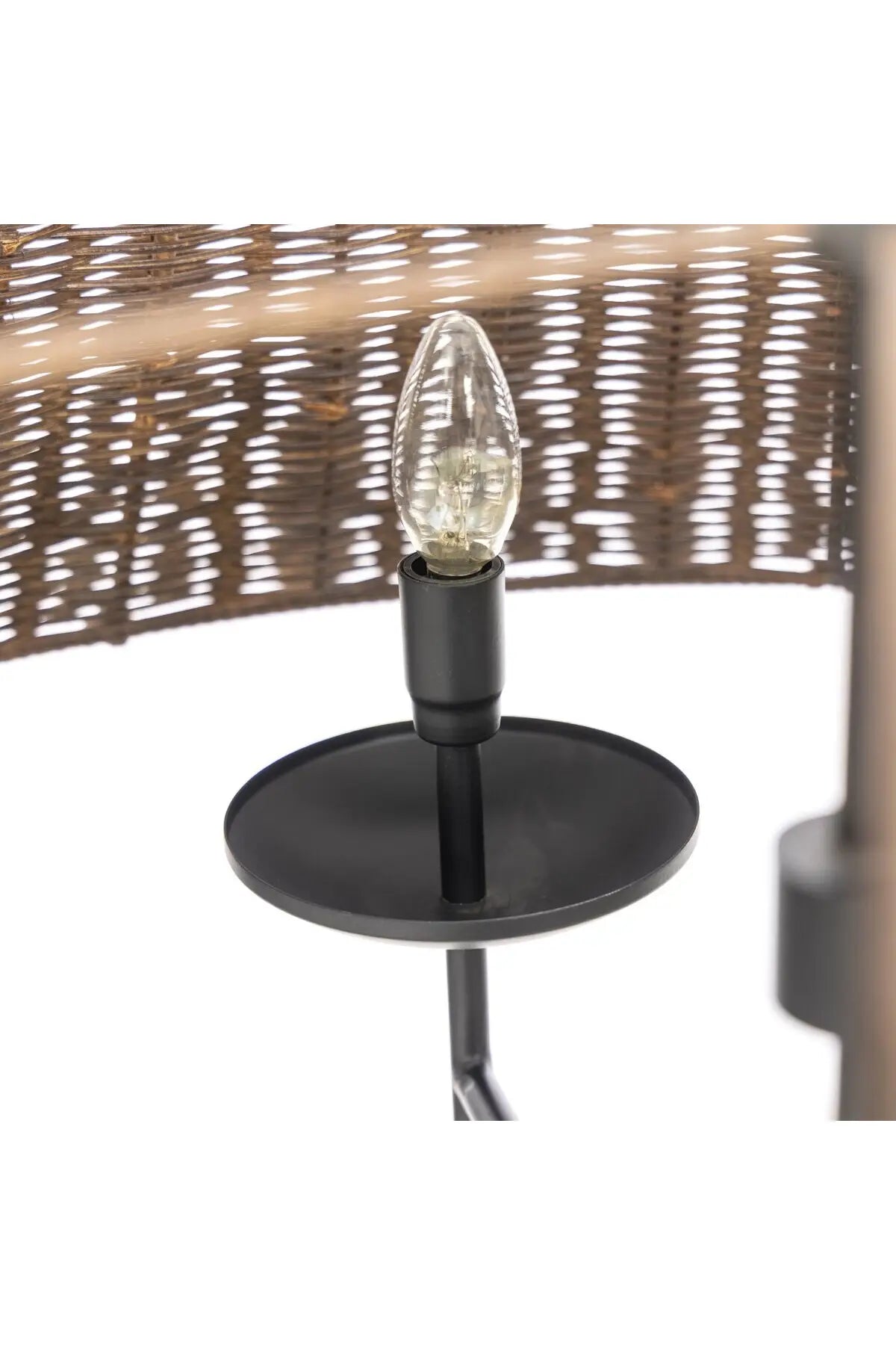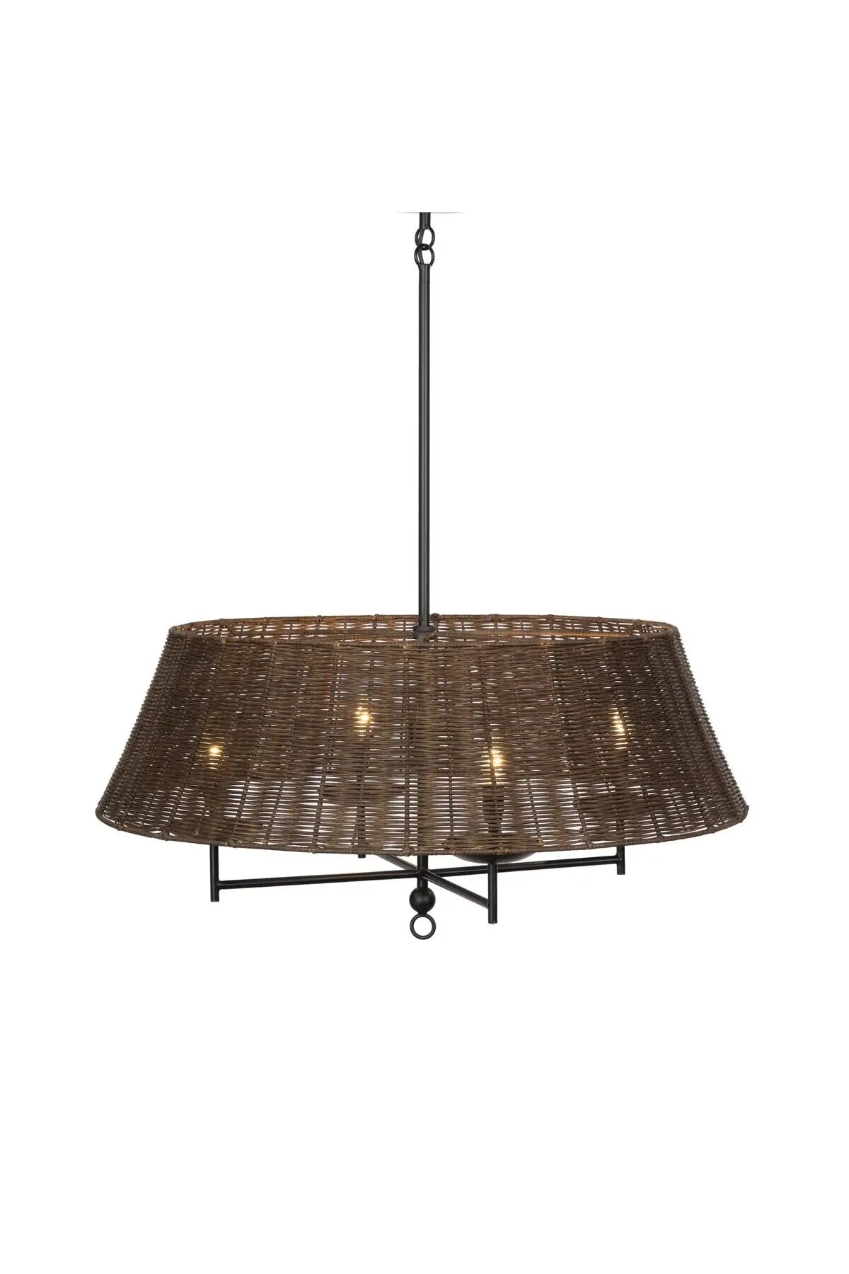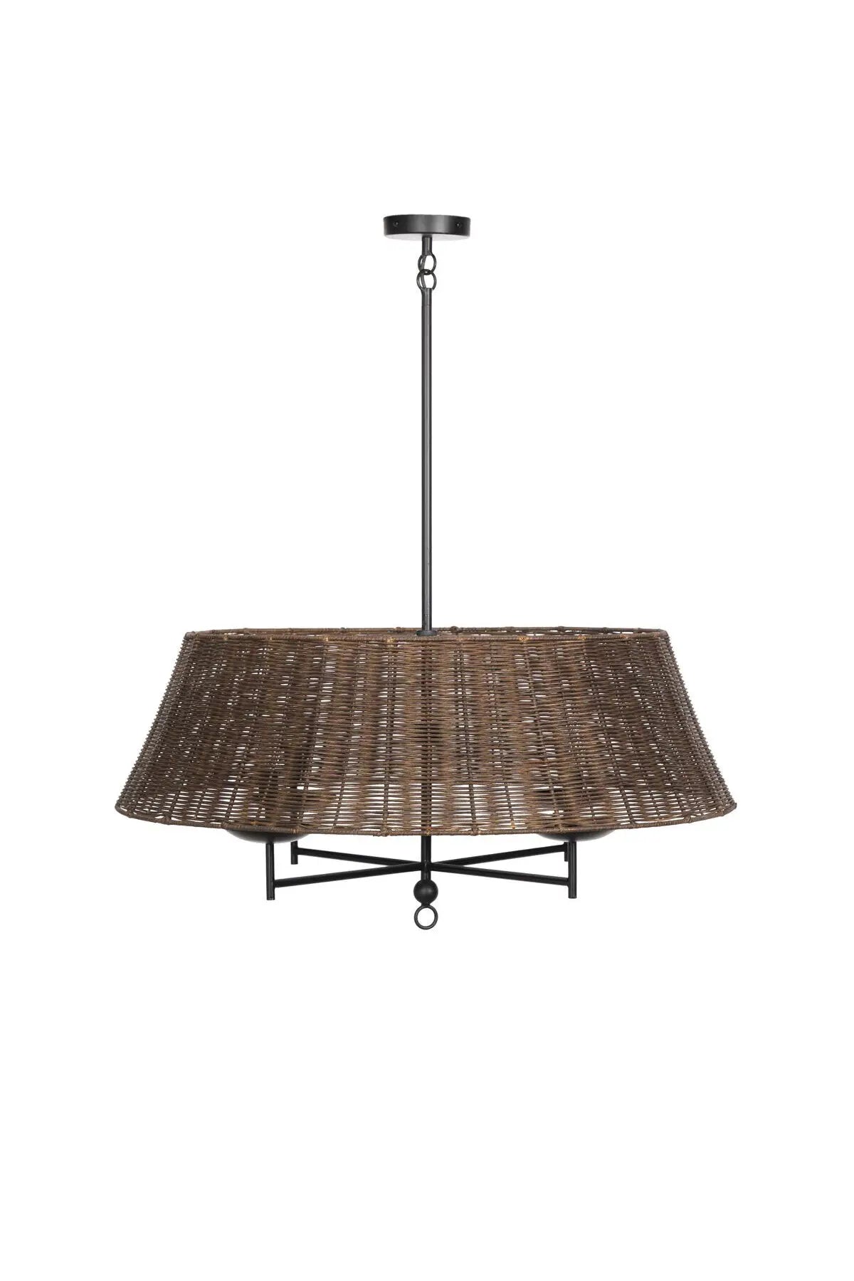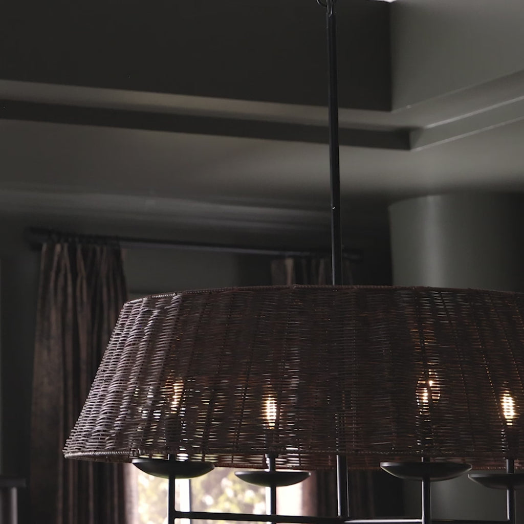 Meet the Harwick Chandelier. A texture-rich rattan shade covers four candlestick-inspired arms finished in a jet black, with vintage French-inspired ball and hook detailing. Adaptable to slanted ceilings, this fixture casts a warm, diffused glow perfect for dining spaces or entryways. Bulb(s) not included.