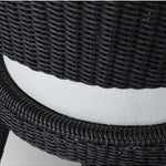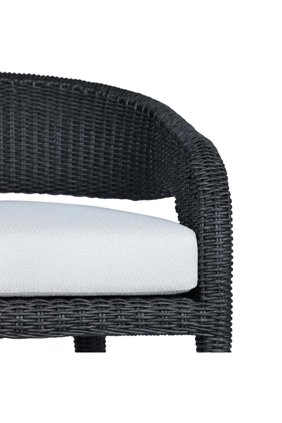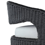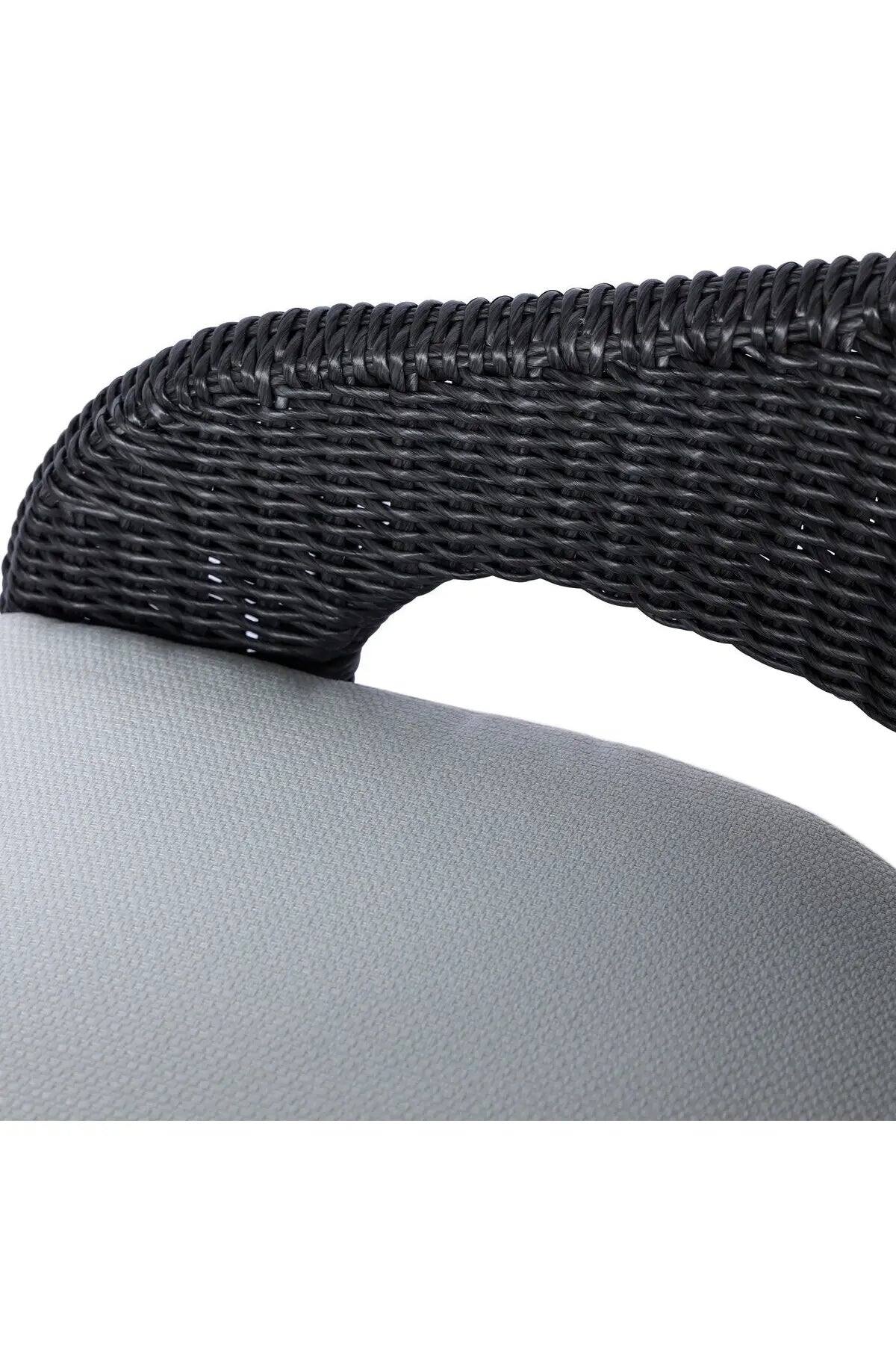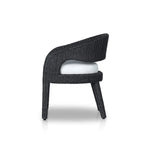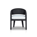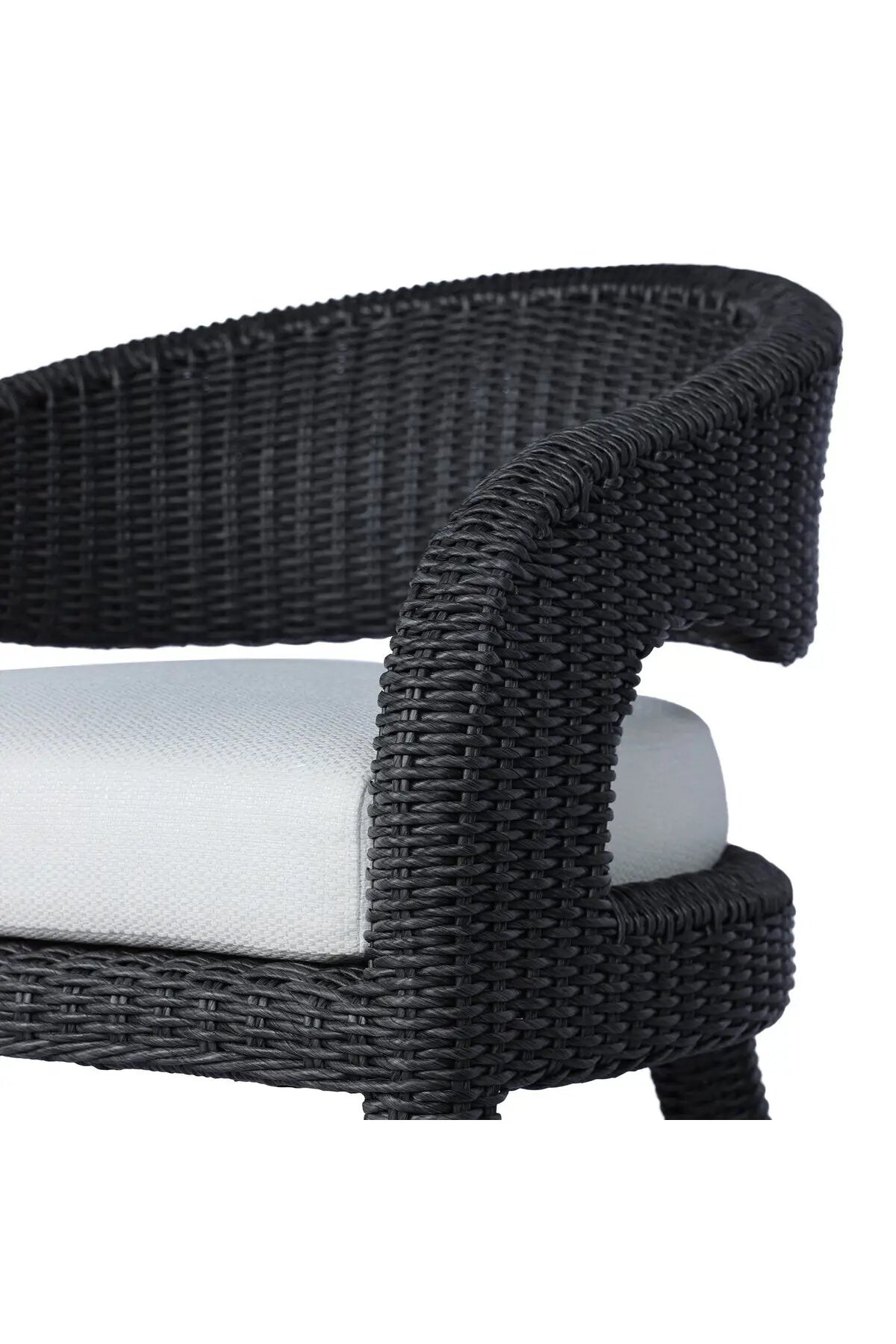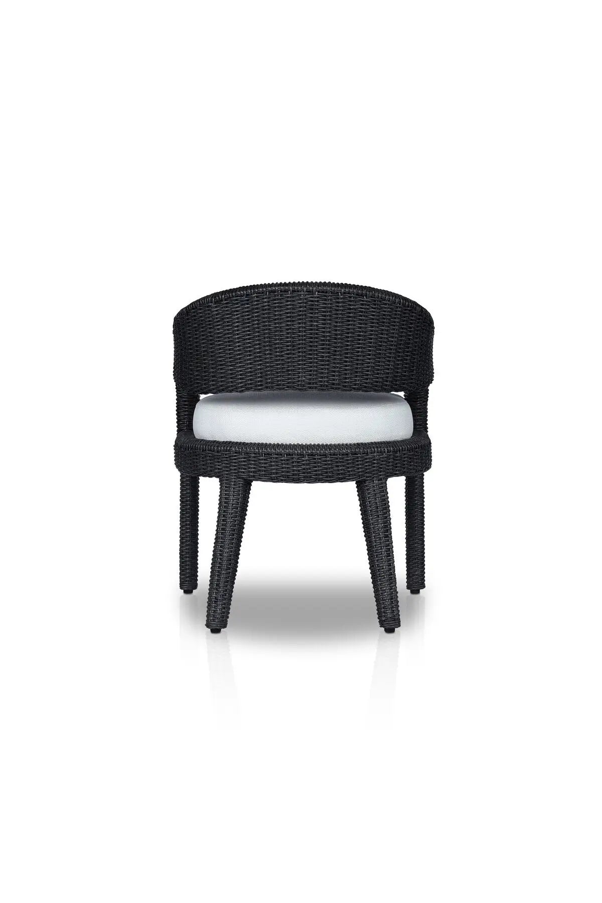 Meet the Hawkins Outdoor Dining Chair. This popular barrel-back shape with a cutout frame takes its place outdoors. Updated with a woven frame and a seat cushion in 100% olefin, known for its UV-resistant, water-repellent and quick-drying abilities.