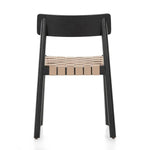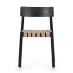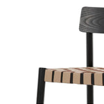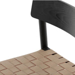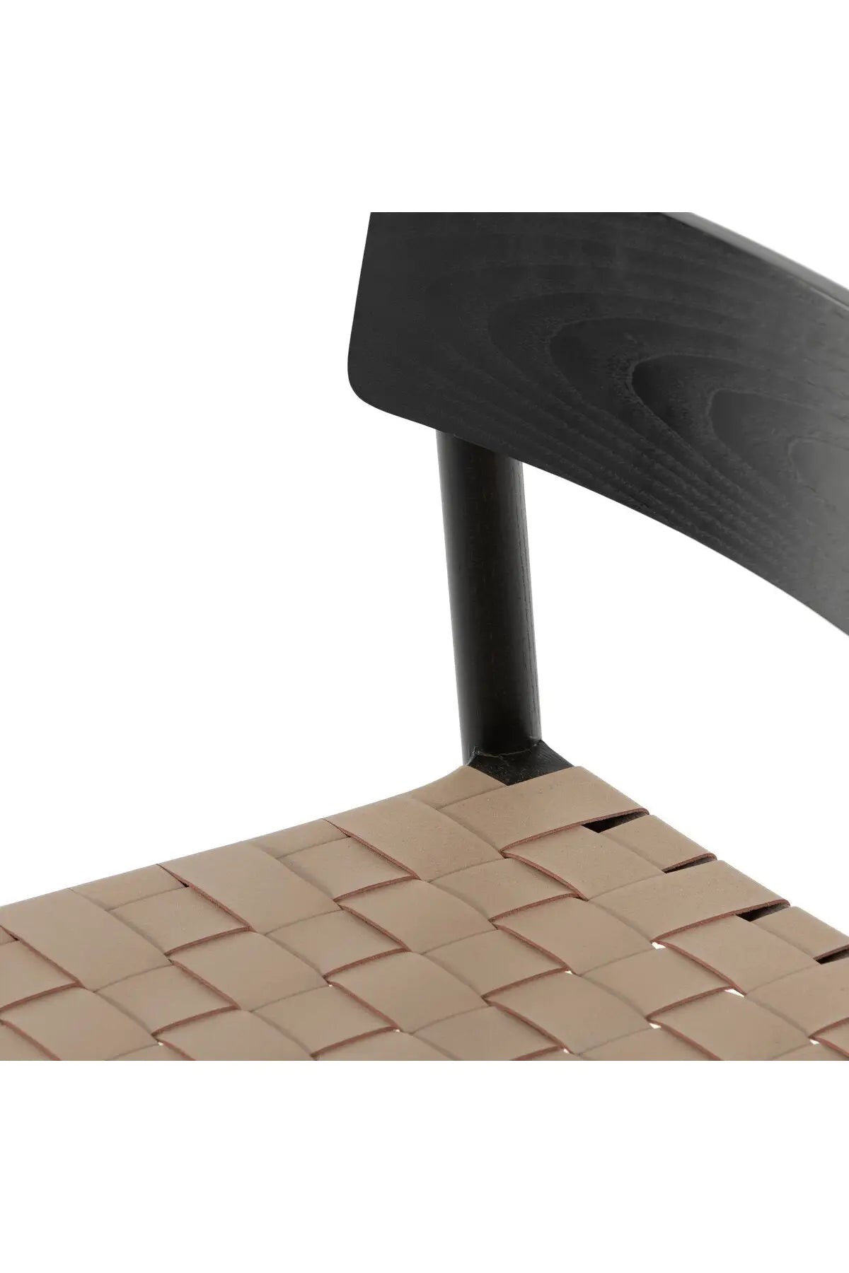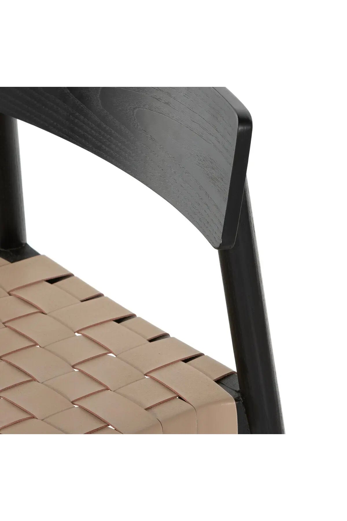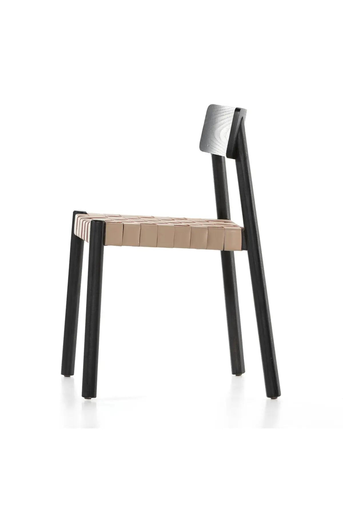 Meet the Heisler Dining Chair. Finished in a jet black, solid ash forms an airy, angular frame for woven leather seating in a cleverly contrasting tan.