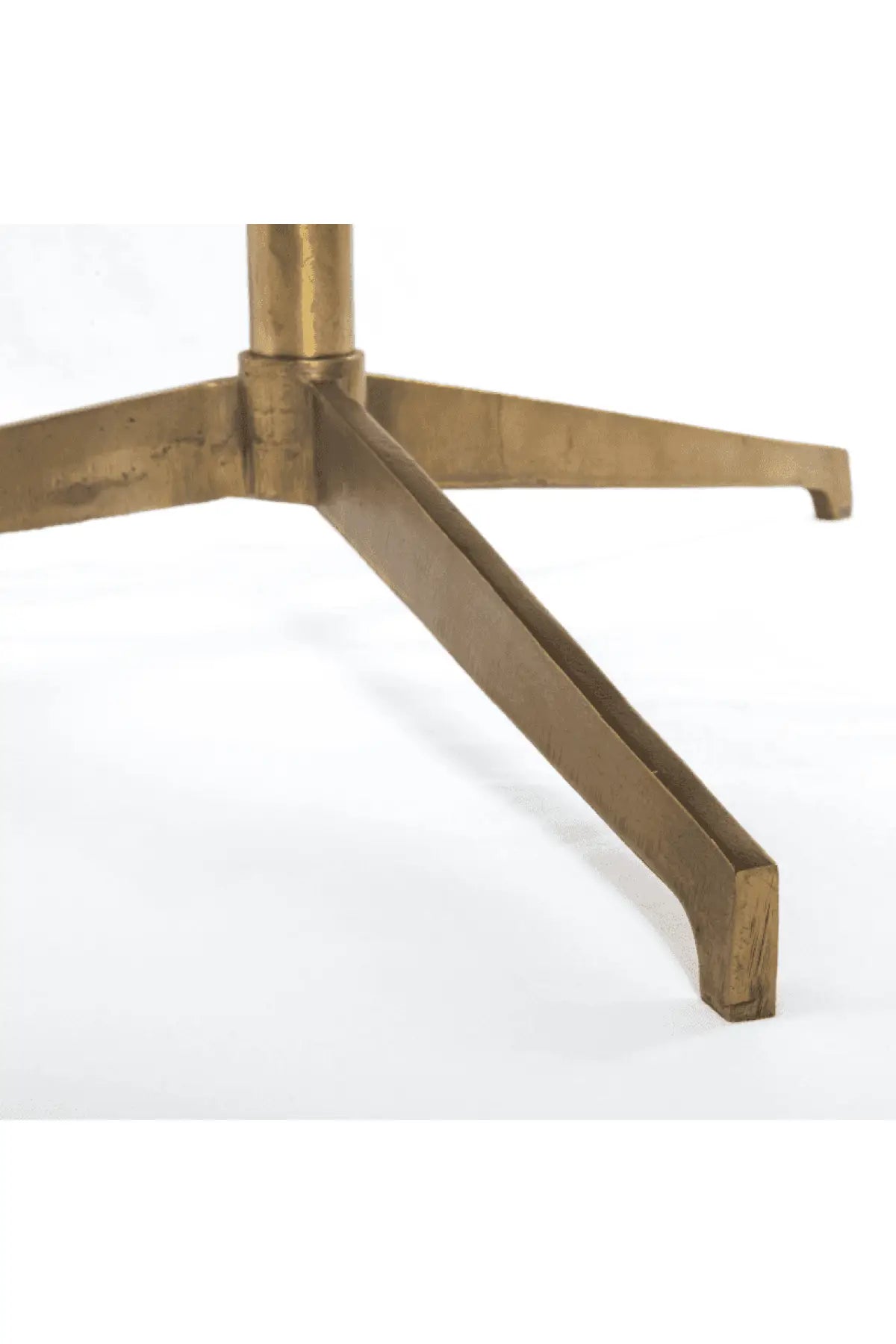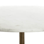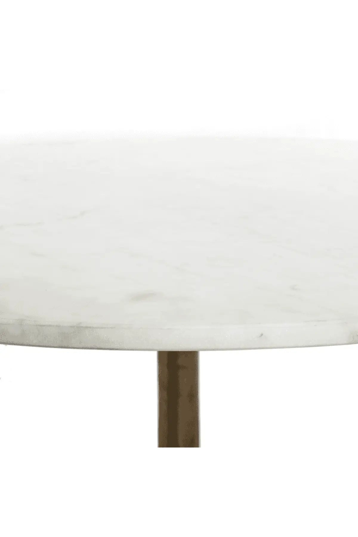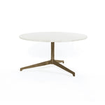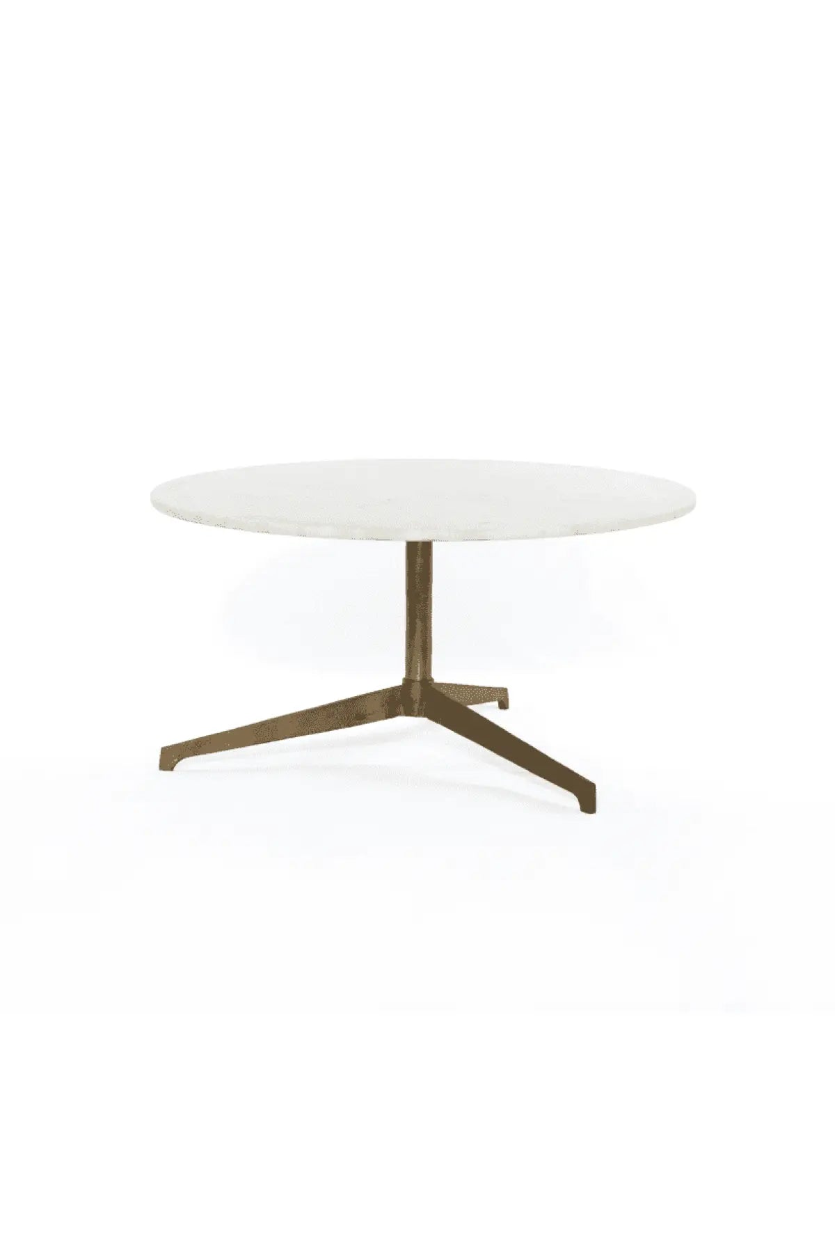 The Helen Round Coffee Table encapsulates simple, sophisticated style. A slim tripod base of raw brass supports a rounded tabletop of polished white marble. Petite scale perfect for smaller spaces or rooms with a sectional.