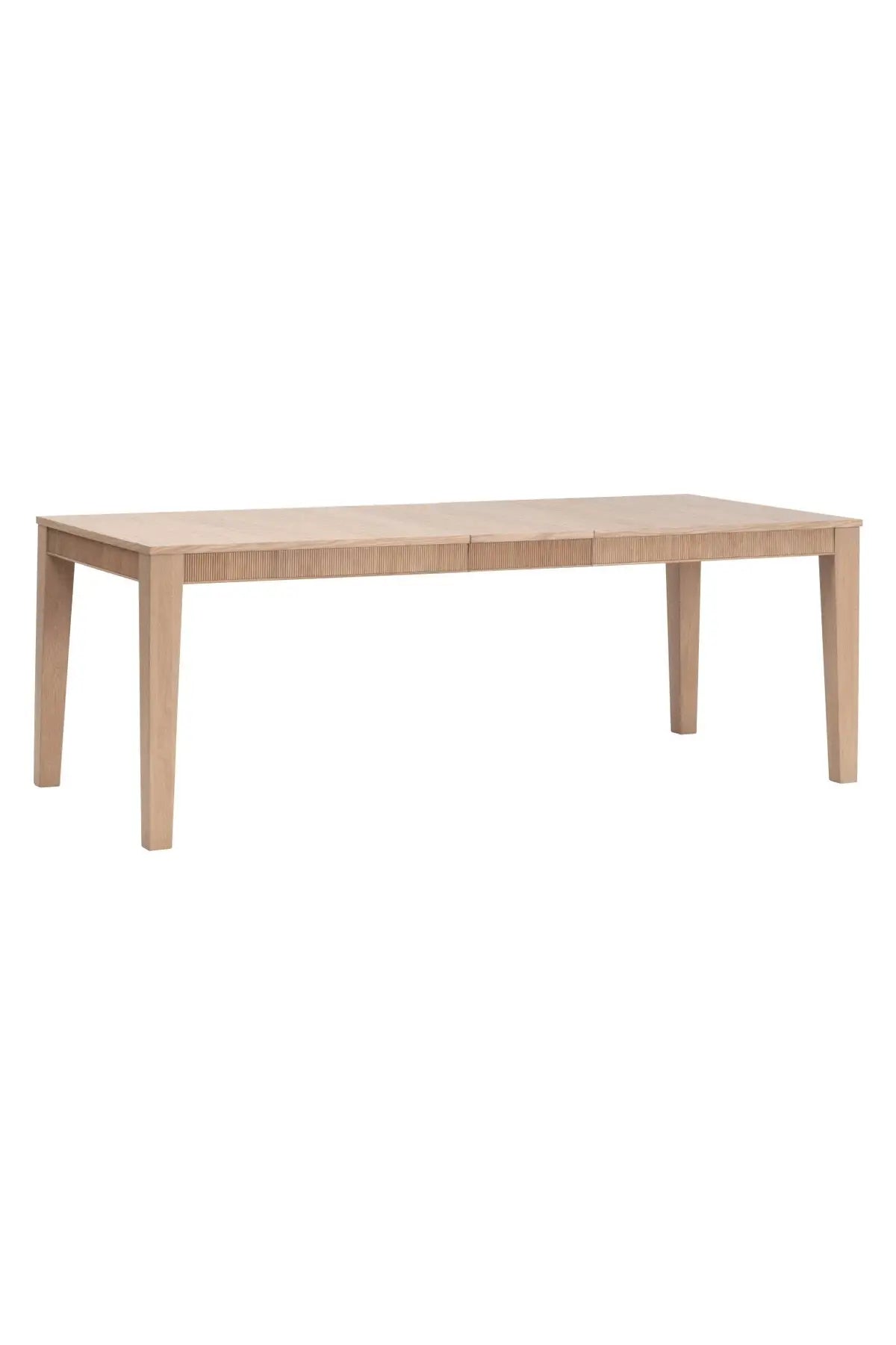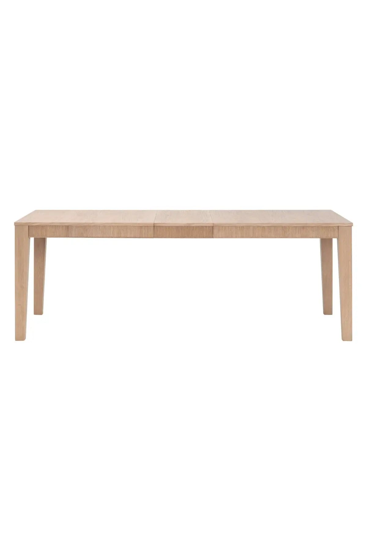 Meet the Highland Extension Dining Table. Anchor your dining space with this versatile extension table, crafted from solid oak wood and oak veneer. Its natural oak finish highlights the beautiful grain and warm tones. This expandable table provides ample space for both intimate family meals and larger gatherings.