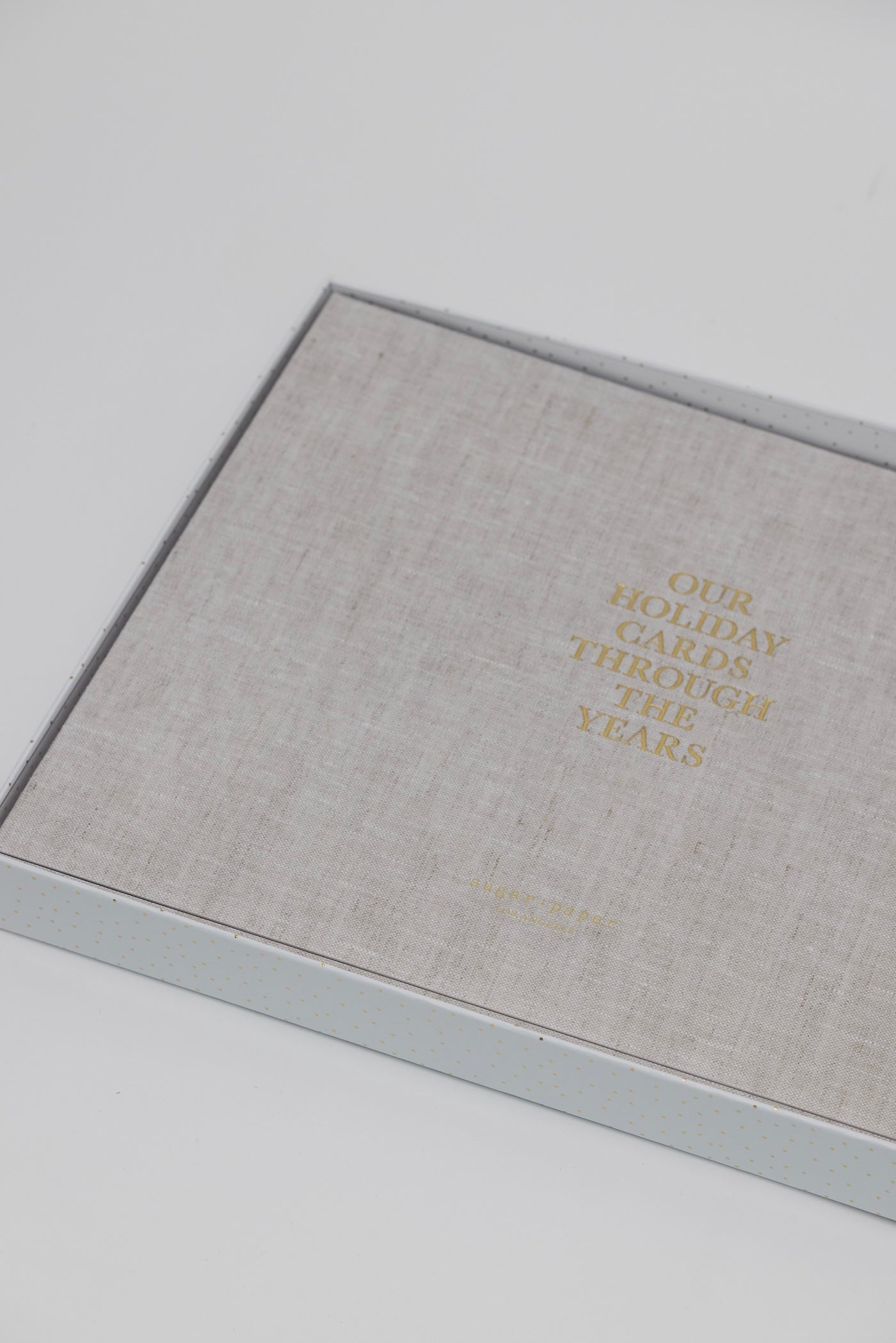 The Holiday Card Album is a classic, bound album that stores your personal holiday cards year after year for a treasured keepsake the whole family will adore. A flax linen cover with gold detailing adds the perfect touch of holiday style. This album comes boxed, and is a perfect gift for loved ones, or yourself!
