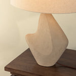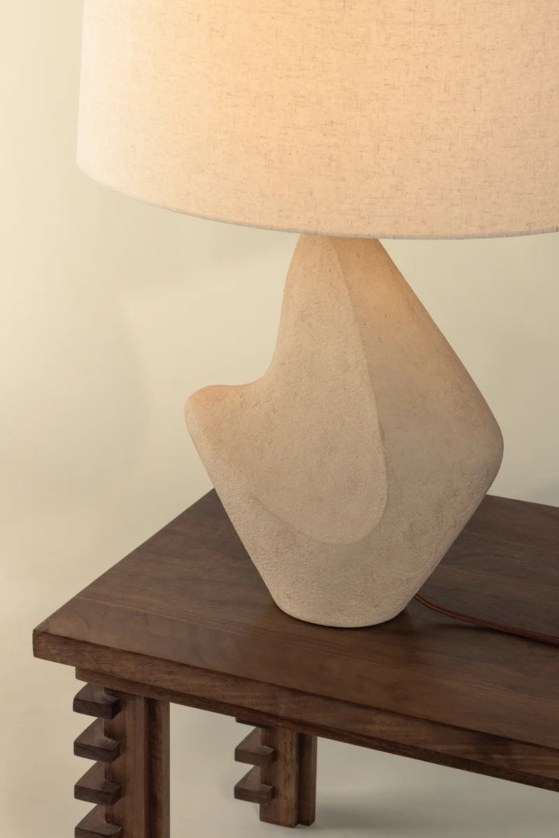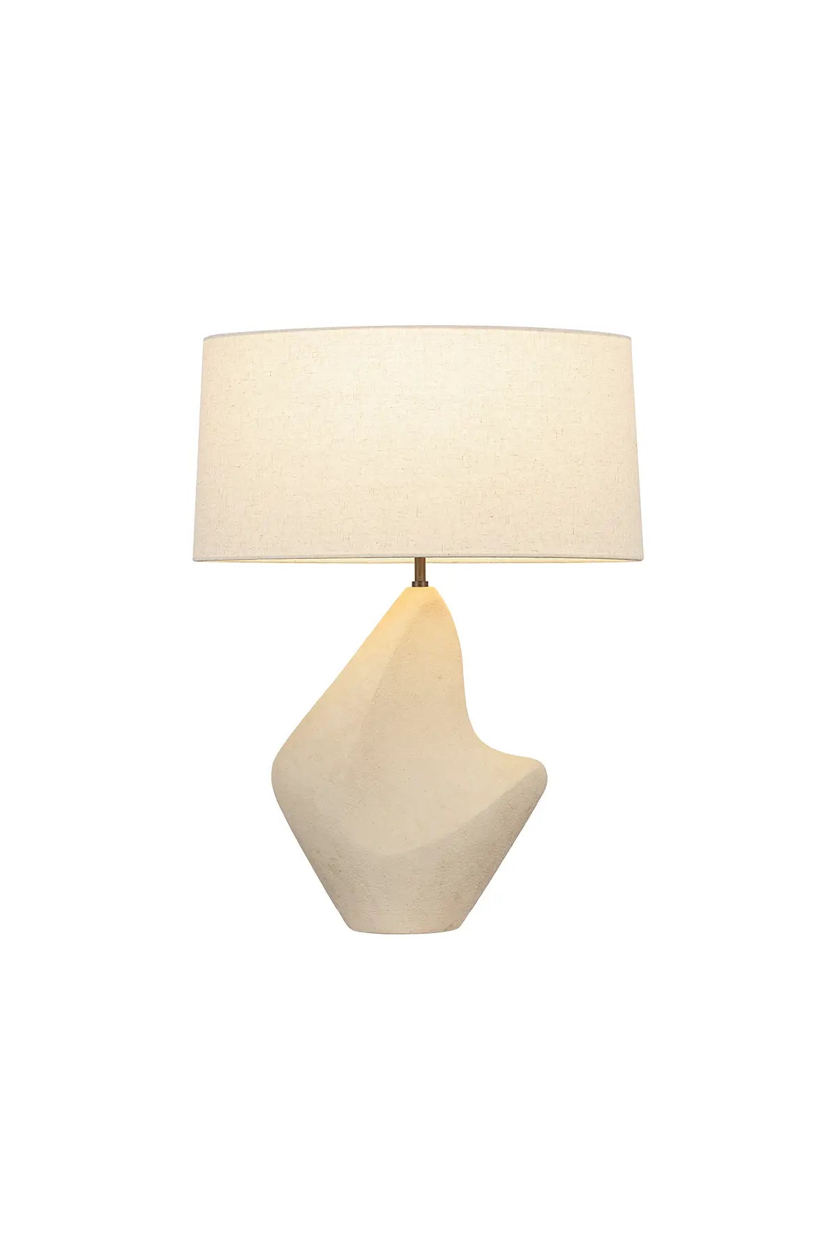Inspired by outdoor stone relics that evolve both physically and symbolically over time, the Huntly Lamp taps into an ancient vernacular while staying grounded in its refined, polished form. The concave cut-outs on the front and back create an evocative relief reminiscent of surfaces worn smooth by flowing water. Sculpted from matte ceramic with an overscale natural linen shade, this lamp serves as a conversation piece in any space. Bulb(s) not included.