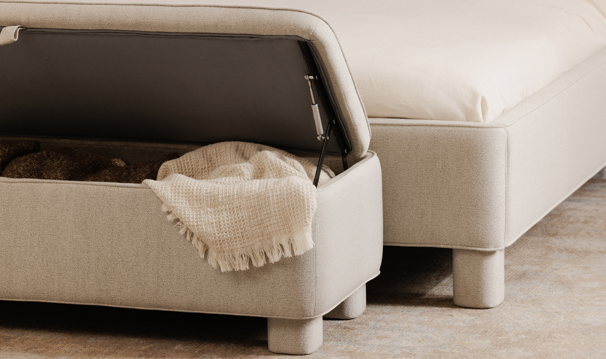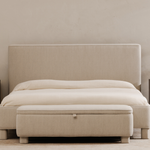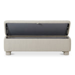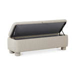 A testament to the timeless allure of a classic form, the sleek, rounded edges complement its luxuriously soft-to-the-touch upholstery created from premium polyester. While also providing ample hidden storage, the bench invites you to sink into its plush comfort offering lasting beauty for years.