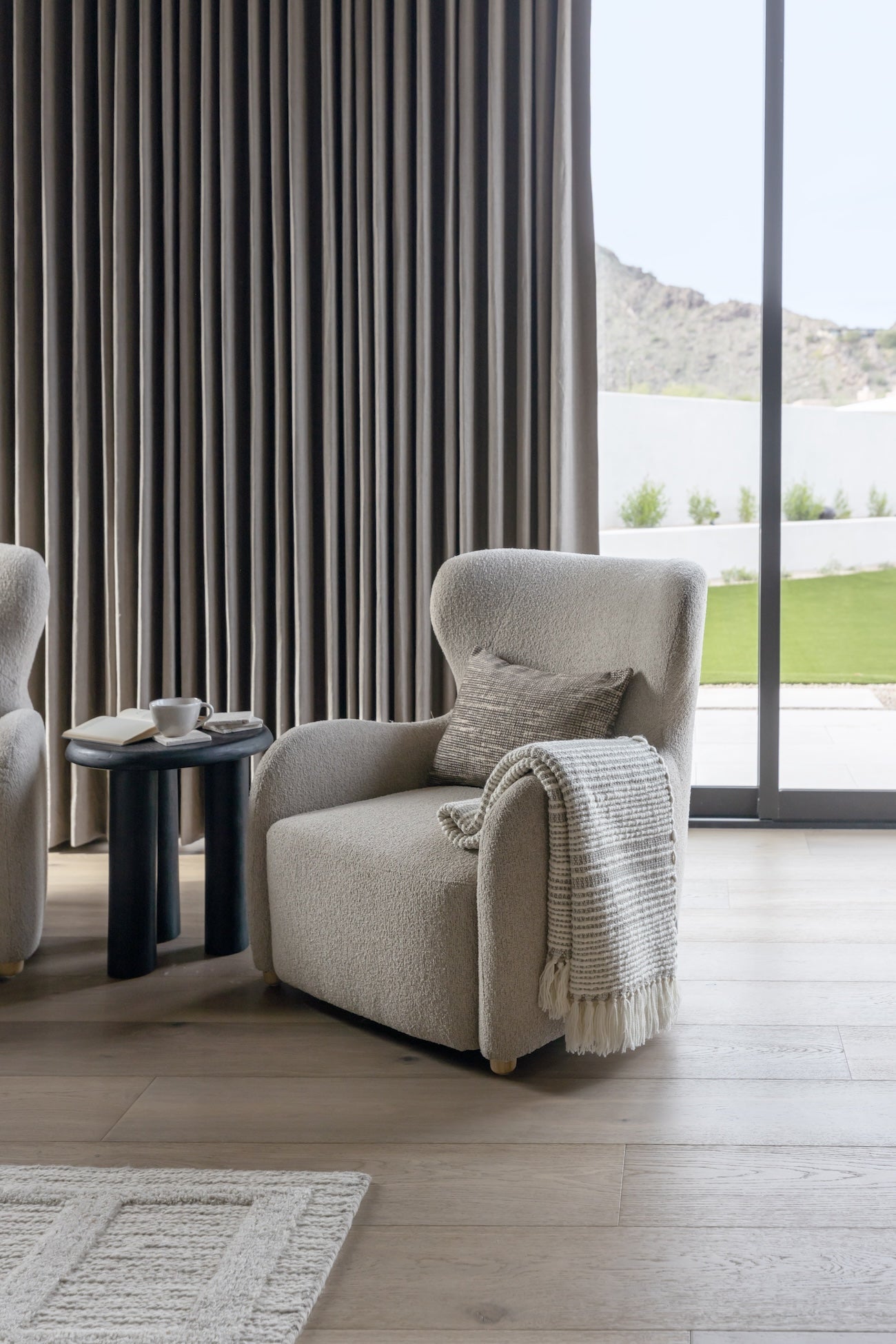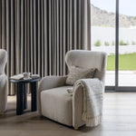 We are in love with the Jacqui Accent Chair. This piece blends sleek design with modern elegance, featuring durable polyester and wingback detail. The natural rubber wood base provides sturdy support, while the light beige finish adds a warm, earthy touch.