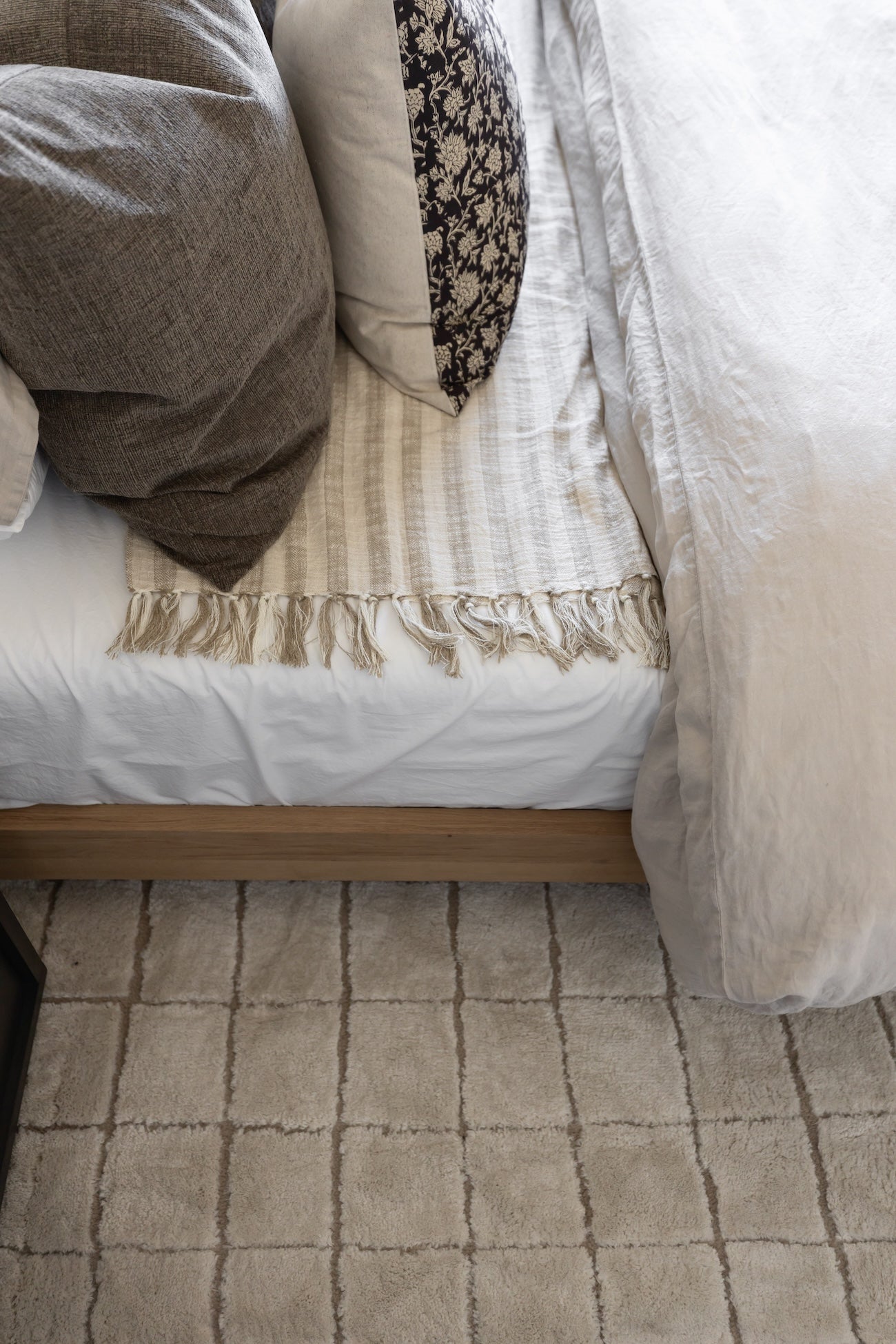 The Jaida Rug is inspired by a coveted blend of modern Moroccan style and cozy, inviting vibes. This plush area rug thrives in high traffic areas of the home such as living rooms, foyers, halls, and sunrooms. Samples are modeled at our North Scottsdale/Phoenix location.