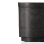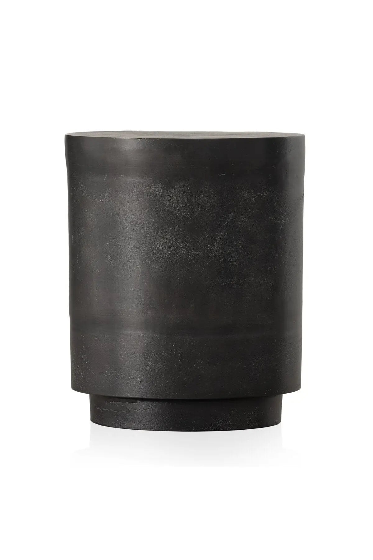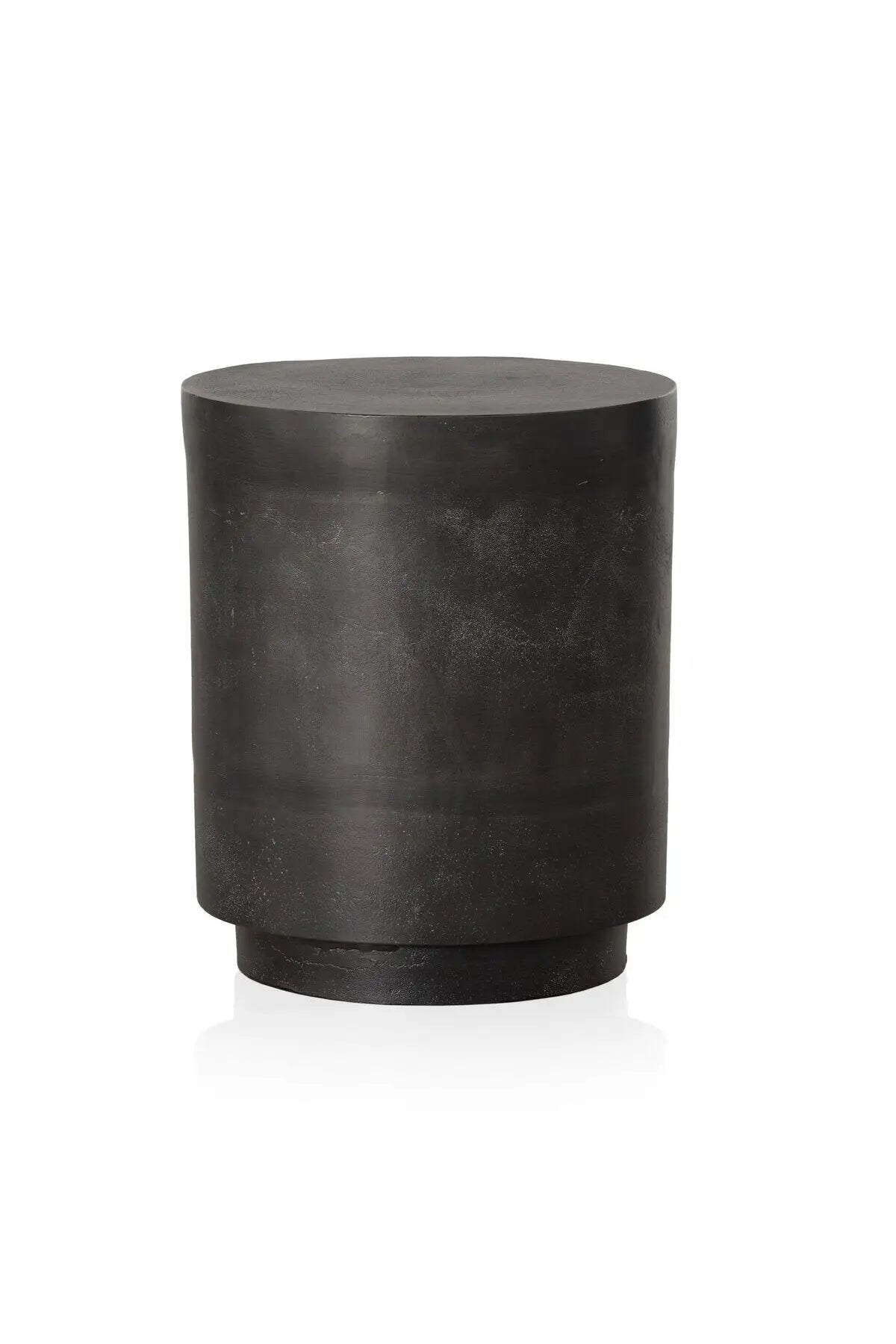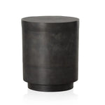 Meet the Javi Outdoor End Table. A simple drum shape end table crafted of cast aluminum atop a plinth. Natural texture and pitting from the molding process to be expected and contributes to the unique character of each item. Style indoors or out. Cover or store indoors during inclement weather and when not in use.