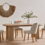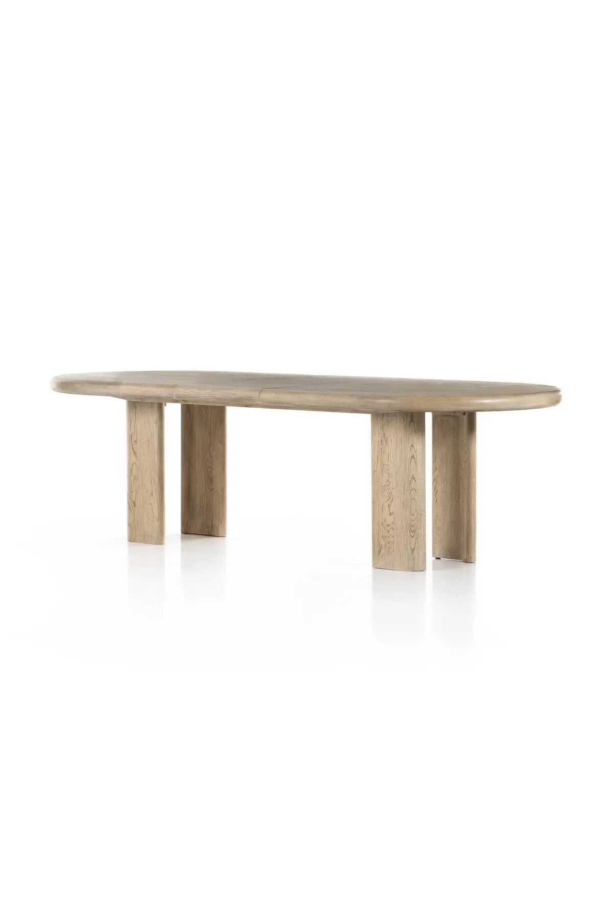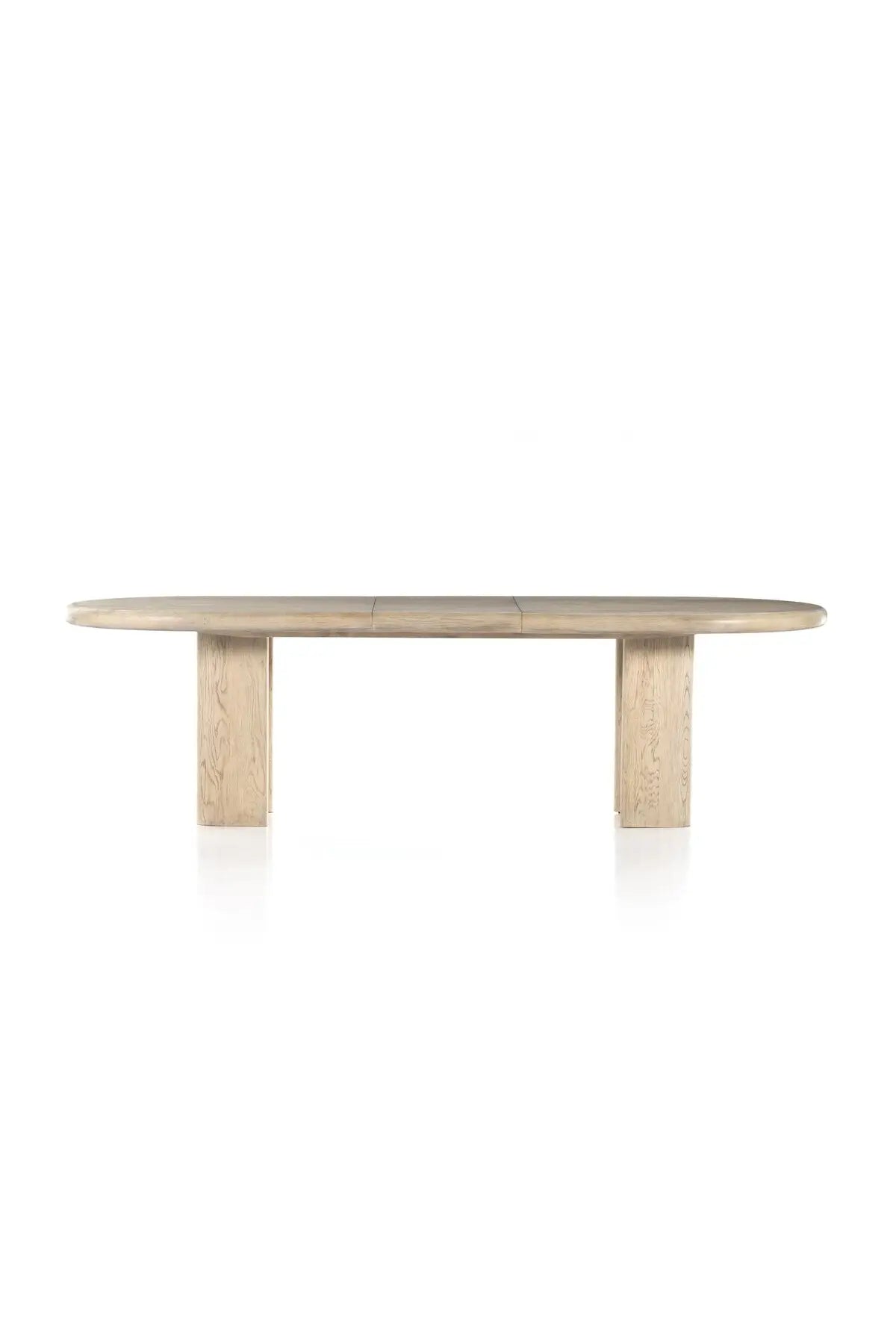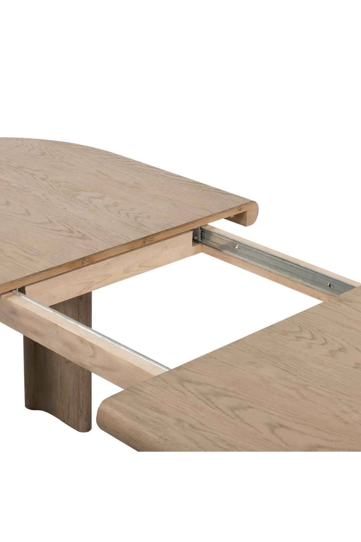 Meet the Jaylen Extension Dining Table. Made from light-finished oak, the oval-shaped Jaylen Extension Dining Table flaunts eye-catching curves, with an extension feature that expands the table from 87" to a roomier 107".