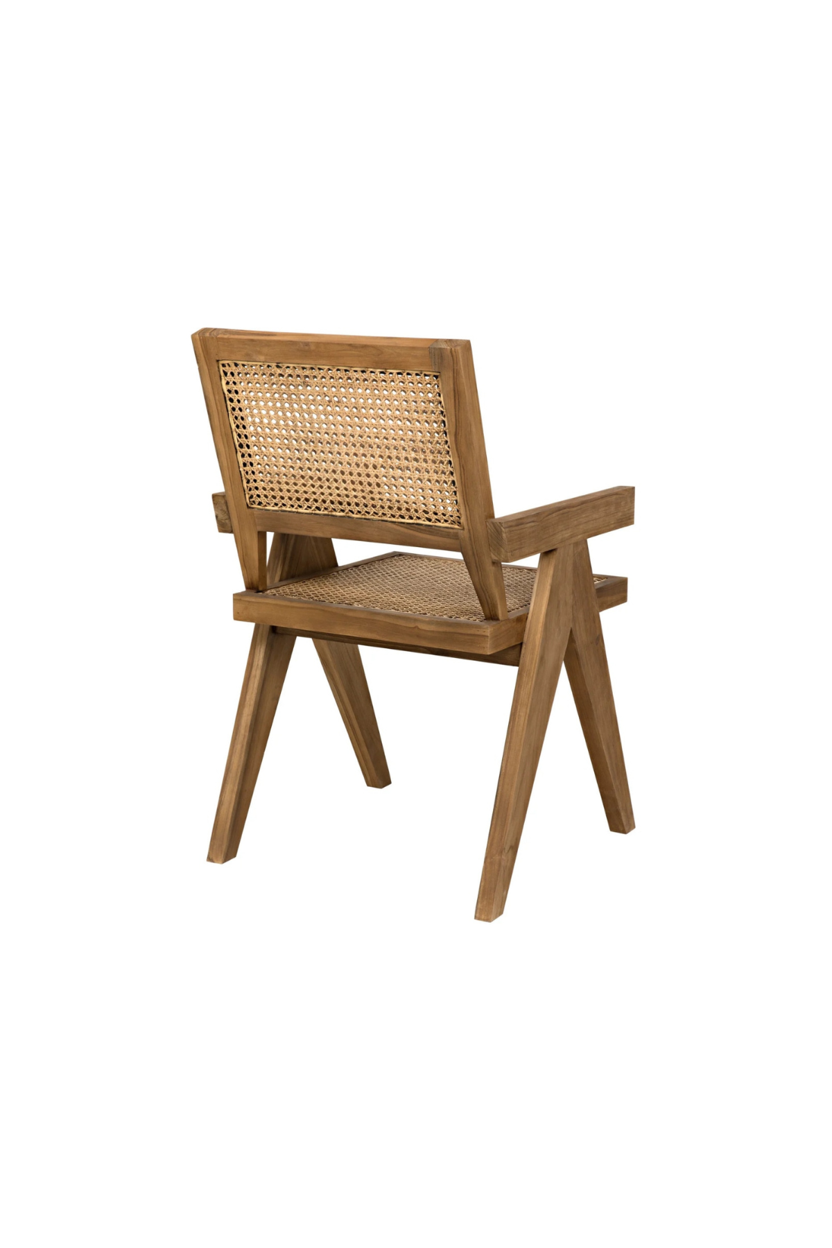 Meet the Jude Chair. This blocky, modern design finished in a clear coat flat showcases beautiful, natural teak wood, with natural caning seat and back inserts. A refreshing addition to traditional and coastal themes.