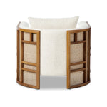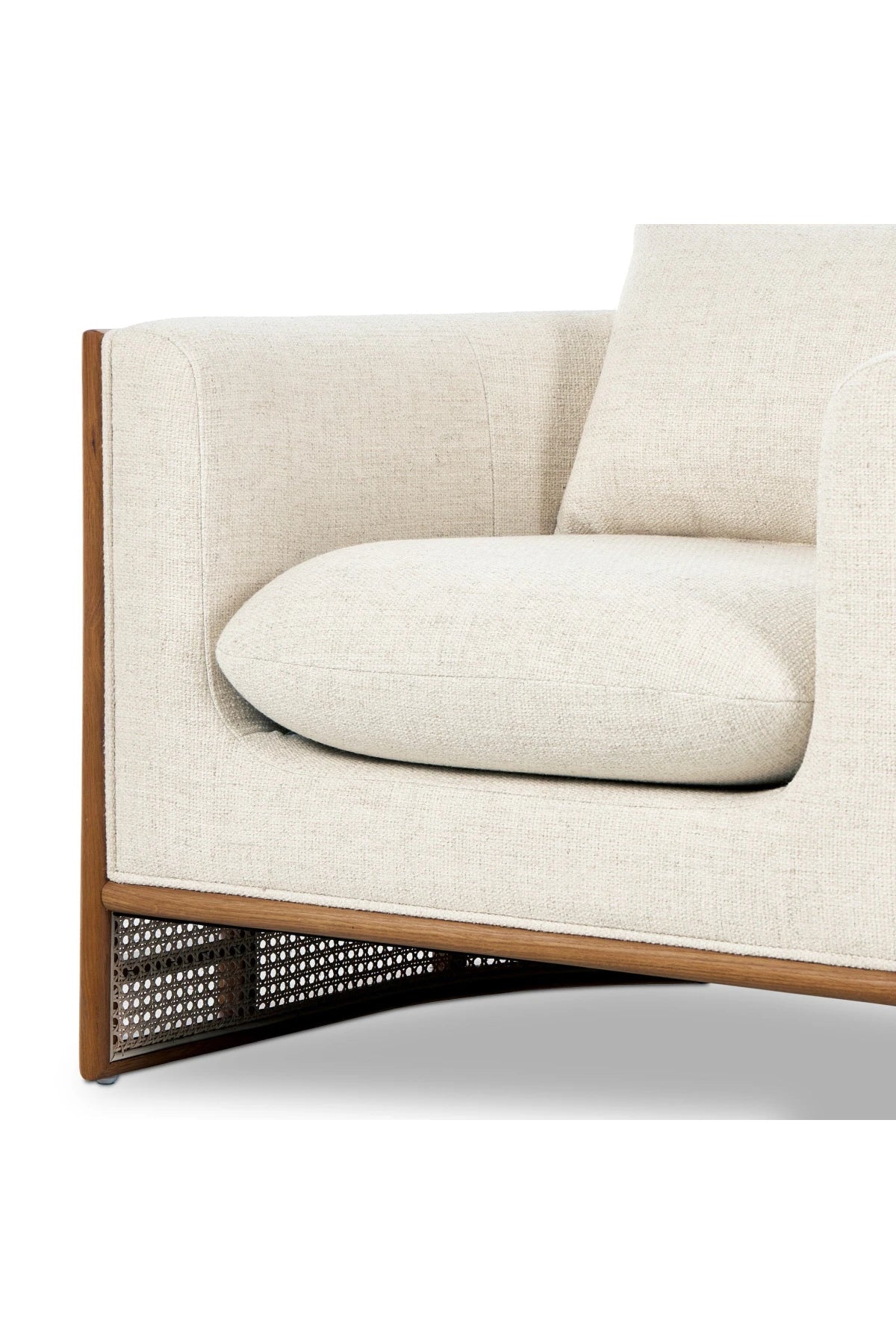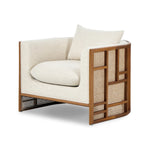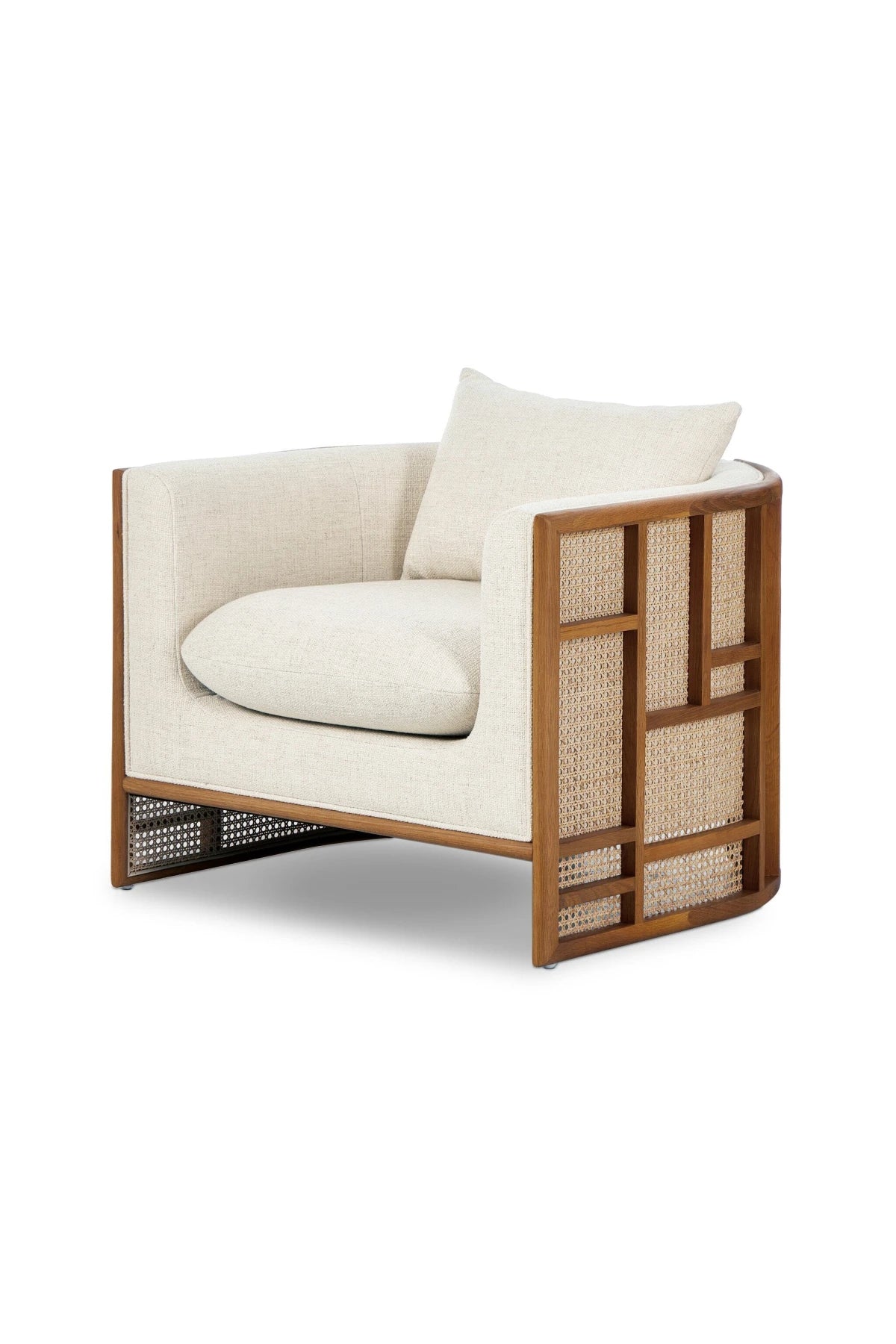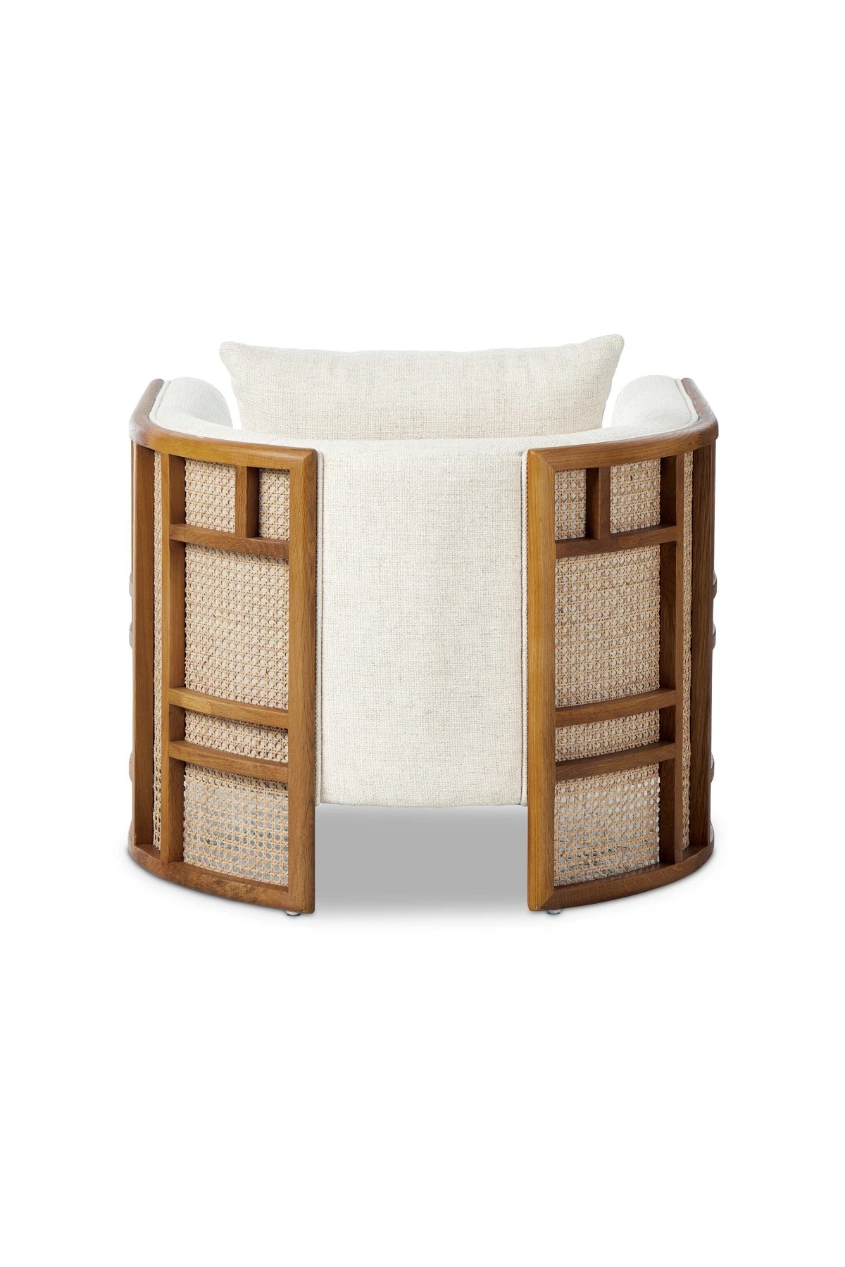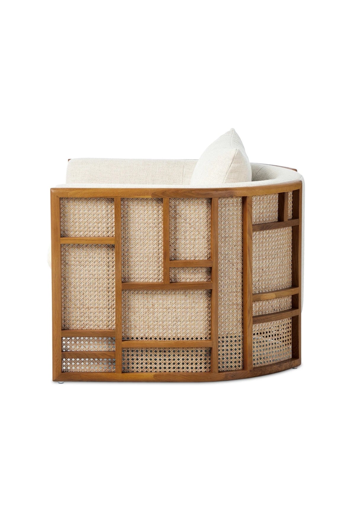 Meet the June Chair. Textural + curve driven. Inspired by Japanese Tatamis, a cleverly constructed outer frame consists of rattan + natural cane paneling. Adding to that clean contrast sits cream linen-blend performance seating with one knife-edge for added comfort.