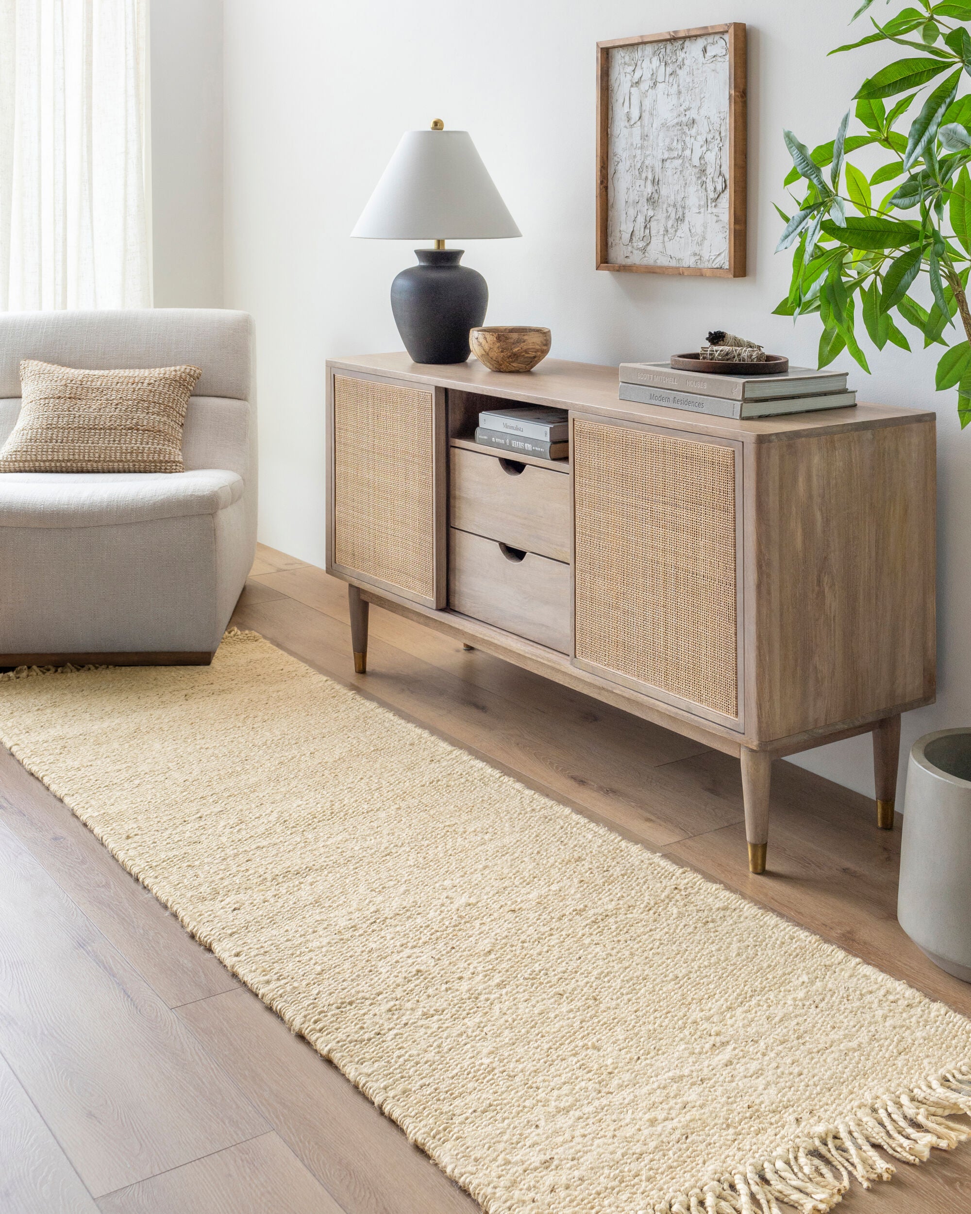 The Jute Handmade Rug is round beauty with loads of texture! This is a piece that will add a pop to any space, but we love this in a children's play space.
