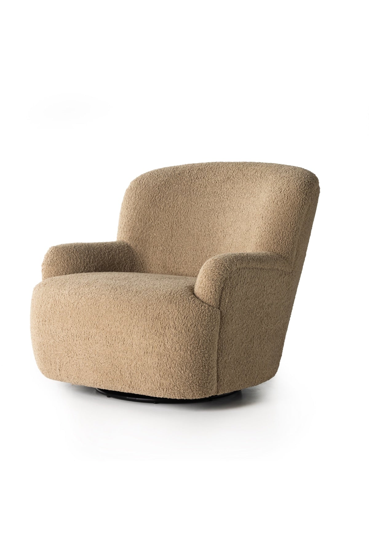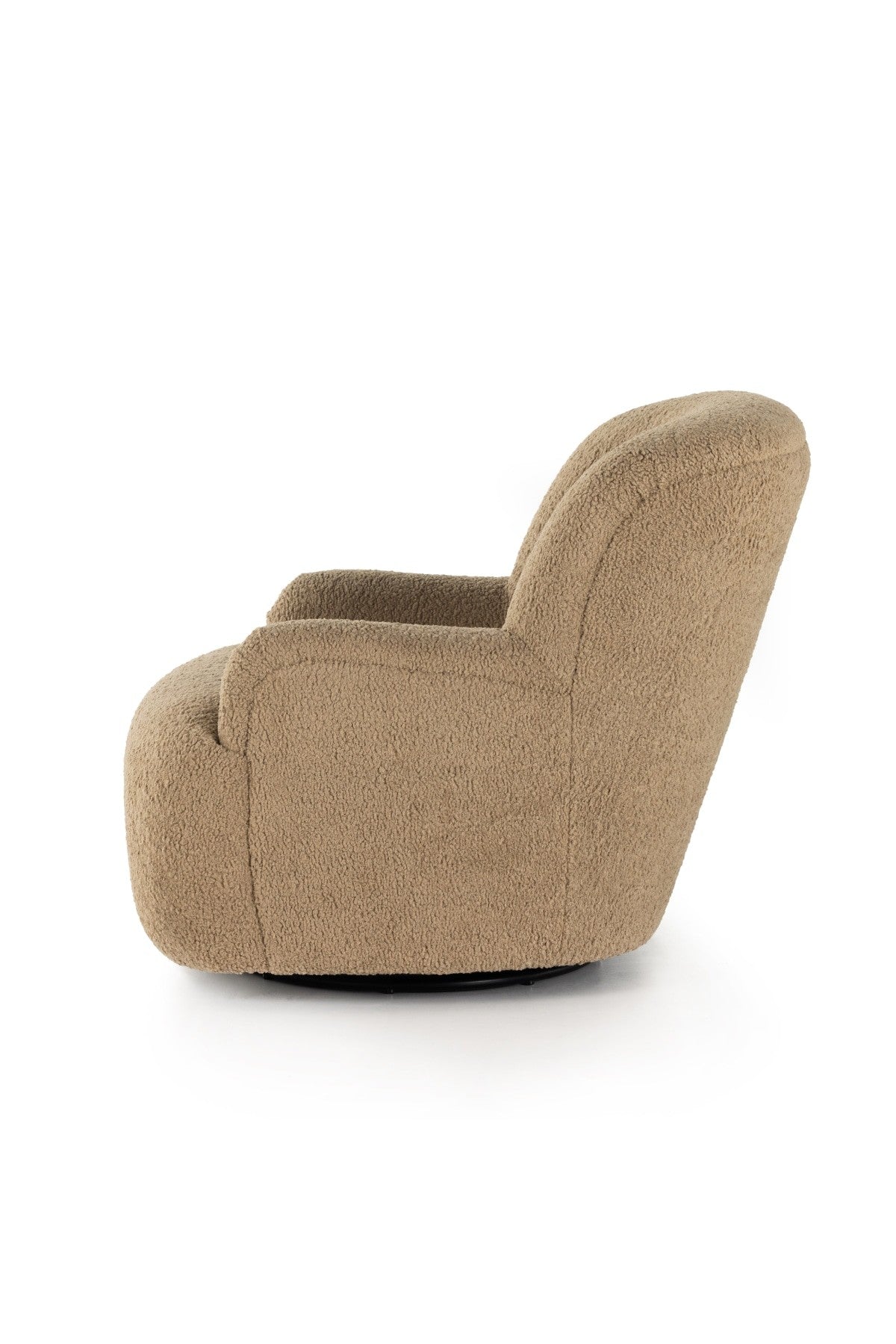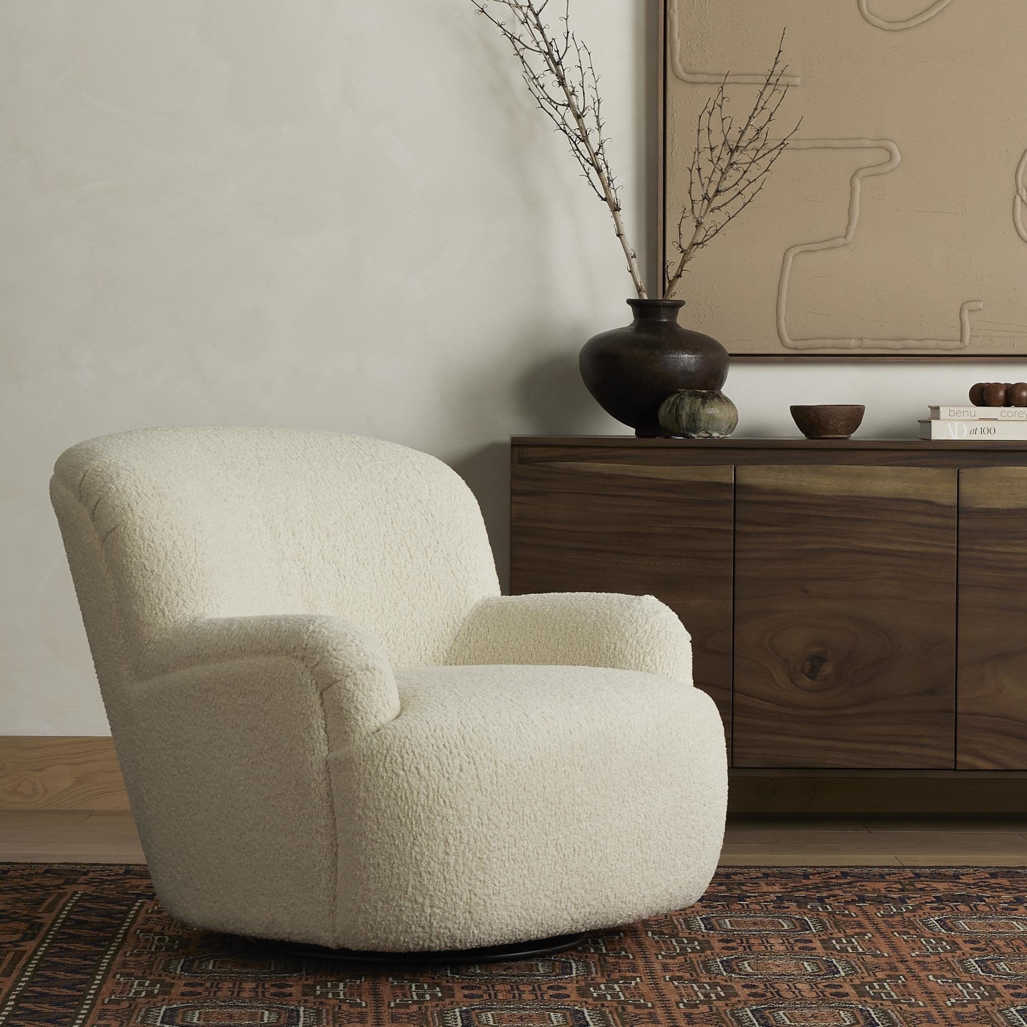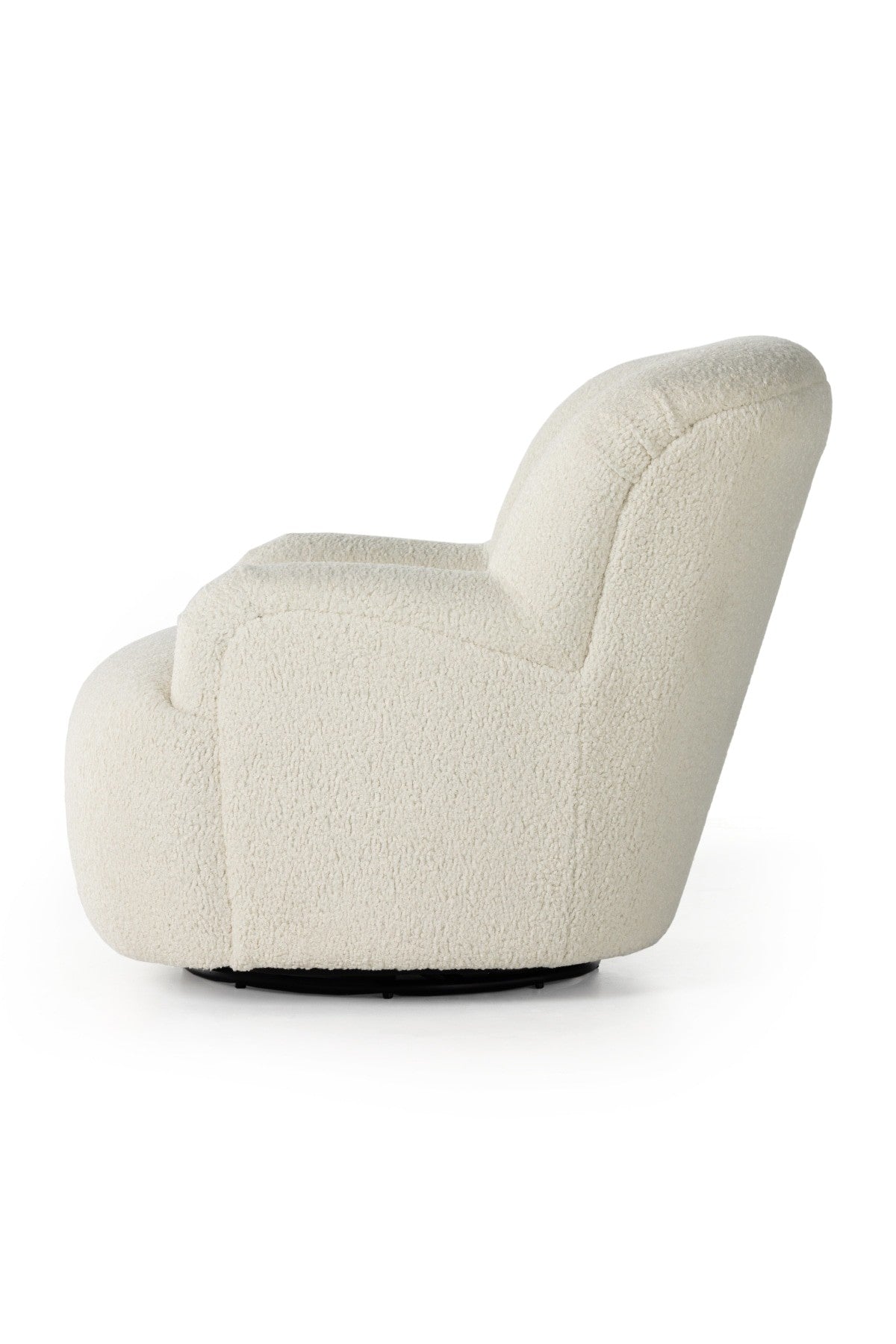 The Kadon Swivel Chair is simply classic. A high wing back pairs with softly rolled arms for a curvy look and supportive sit. Shearling-upholstered seating tops a 360-degree swivel for total modernity.