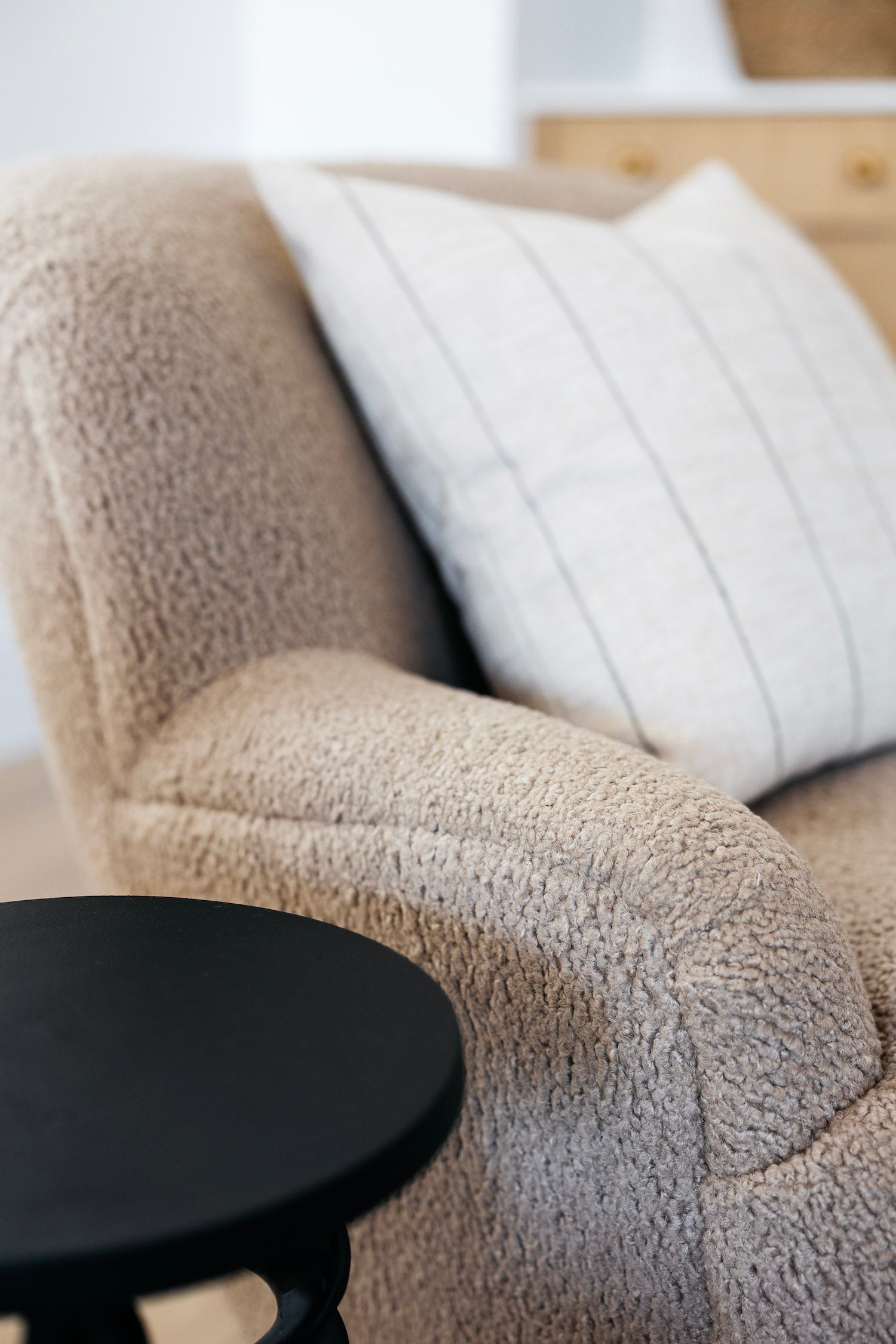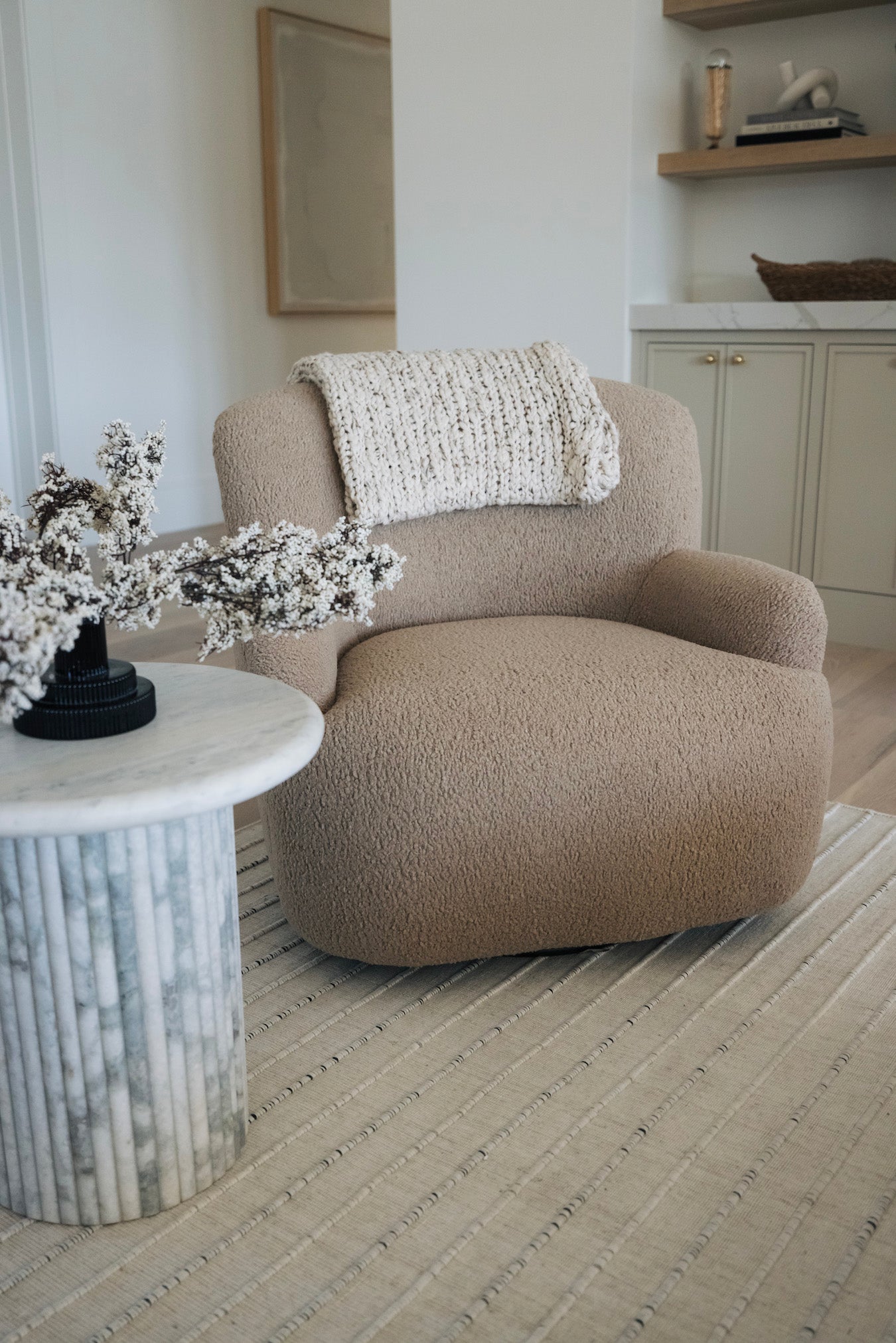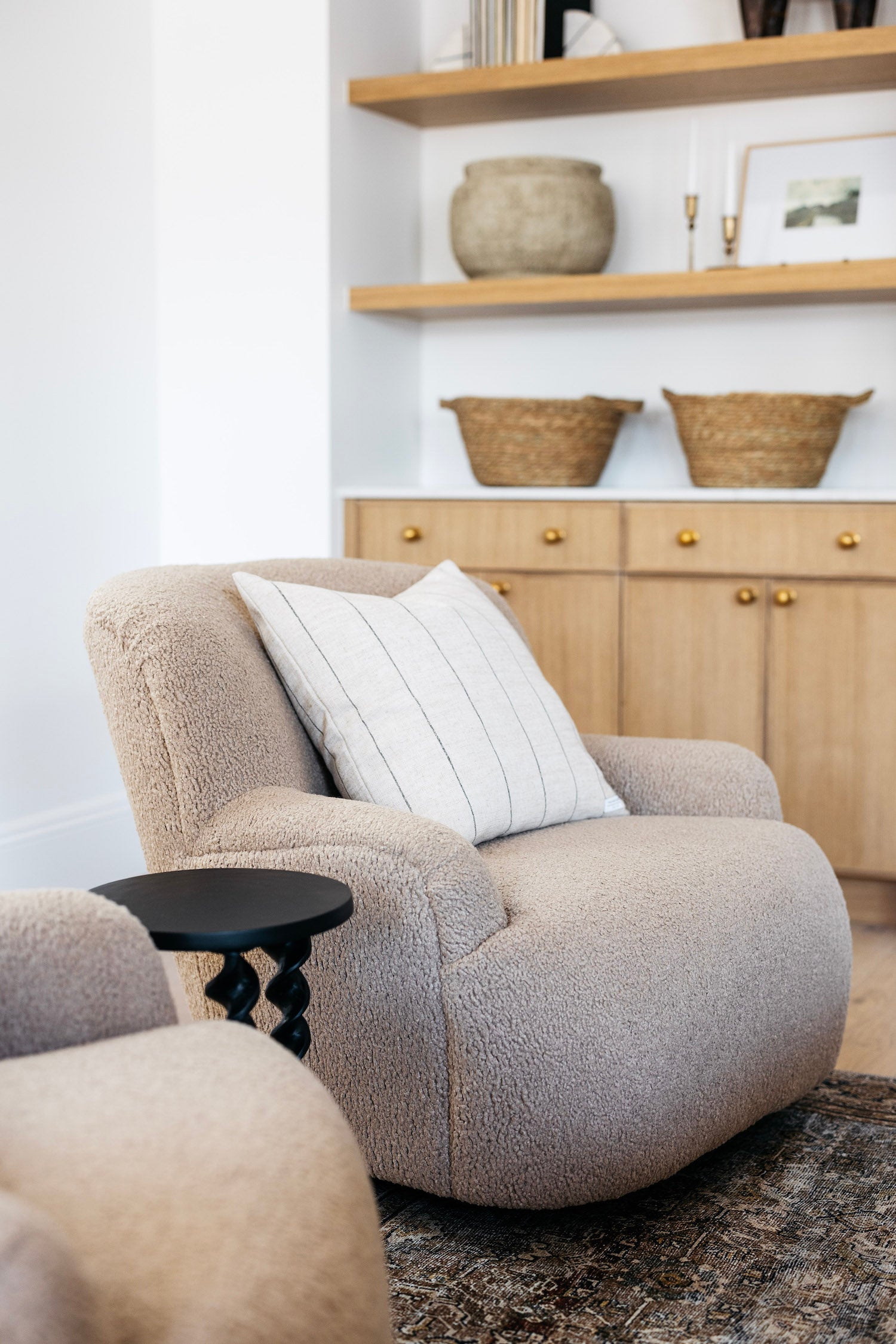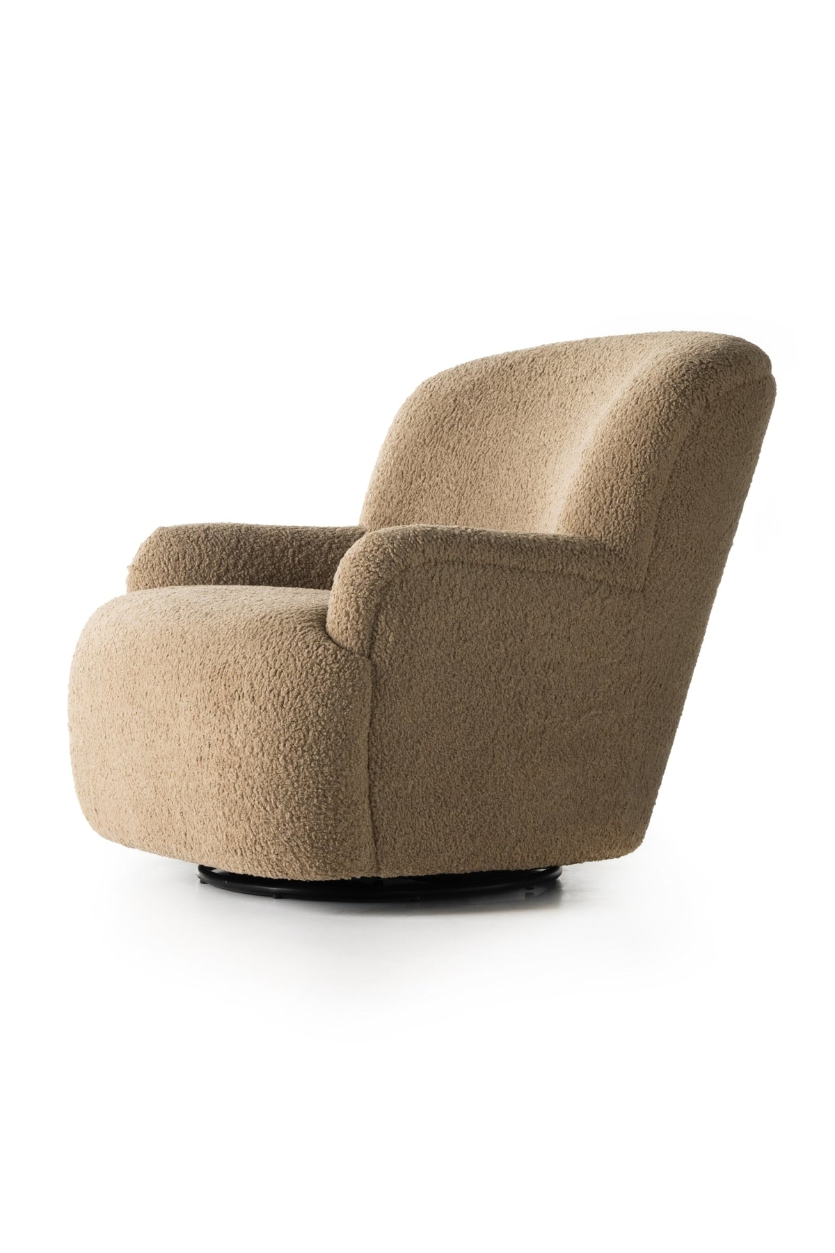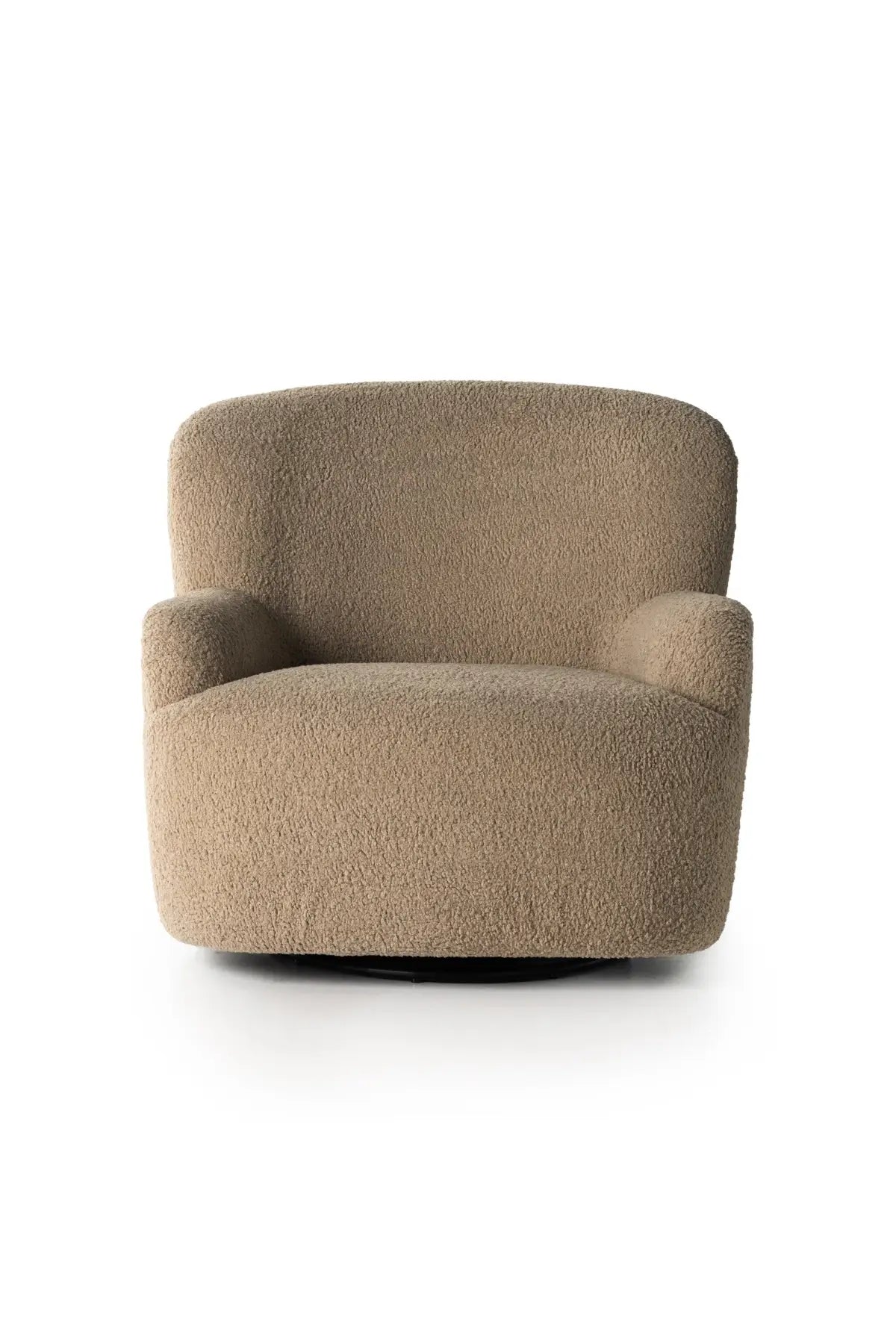 The Kadon Swivel Chair is simply classic. A high wing back pairs with softly rolled arms for a curvy look and supportive sit. Shearling-upholstered seating tops a 360-degree swivel for total modernity.