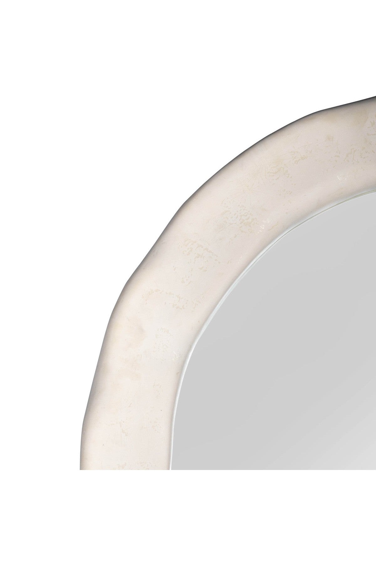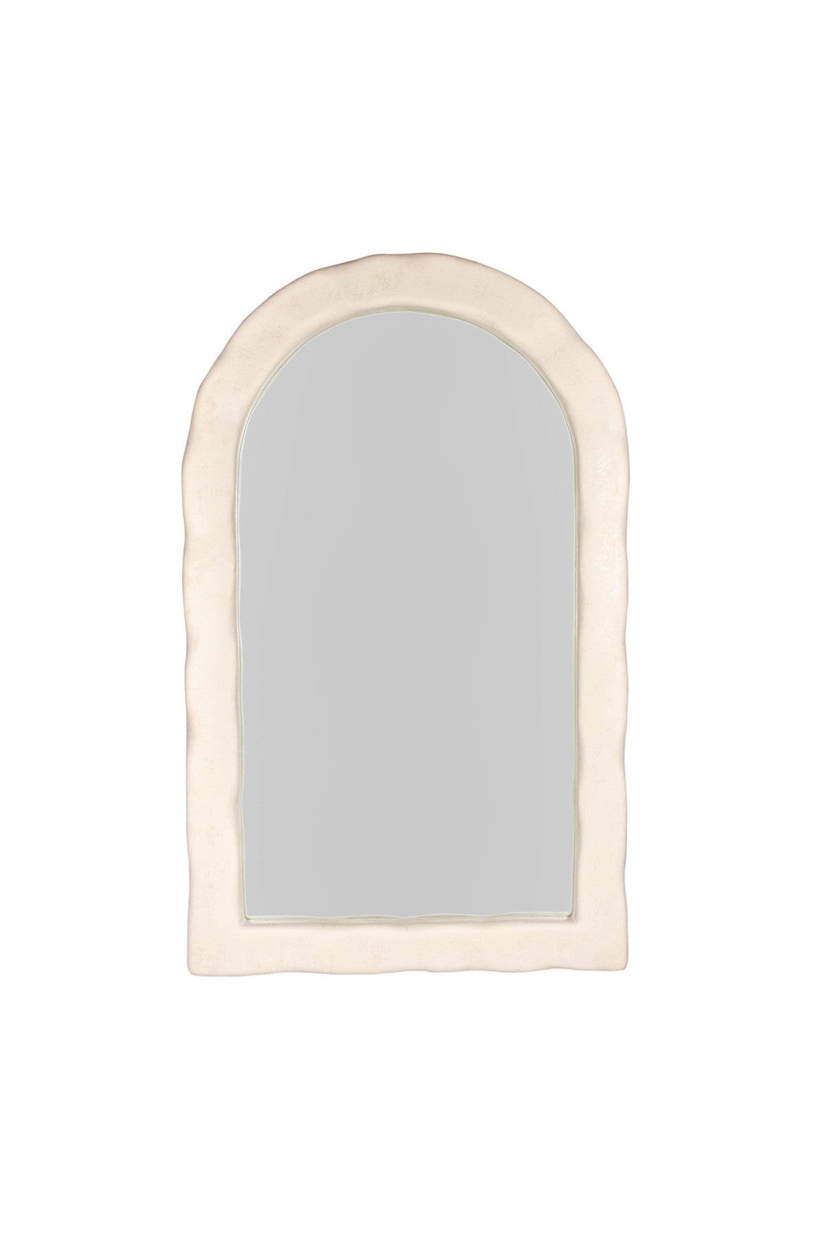 Embrace the wabi sabi trend with the Kaia Textured Floor Mirror. Crafted with organic bumpy texture and a beautiful sculptural arch, this mirror brings a touch of natural beauty and artistic appeal to your space. Expertly made with fiberglass, it combines durability with stunning design, making it a functional and stylish addition to your home.