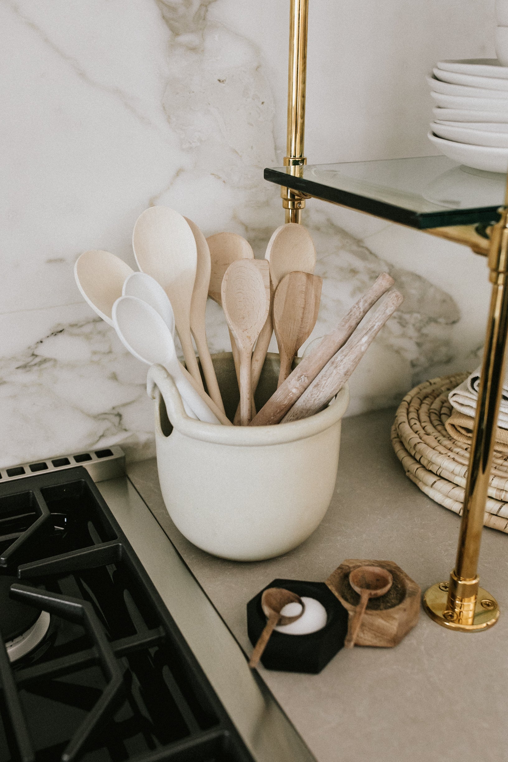 Must-have kitchen essential! We are loving the light wood color of the Karlee Wood Spoon paired with its subtle grain detail. Sure to be your new go-to for serving + looks equally as chic styled in our Lyon Crock near your stove. You won't be able to resist just one!