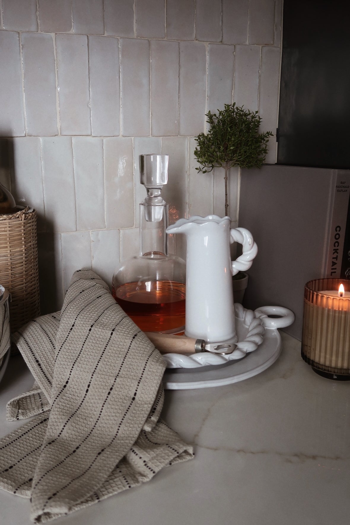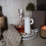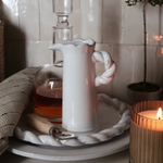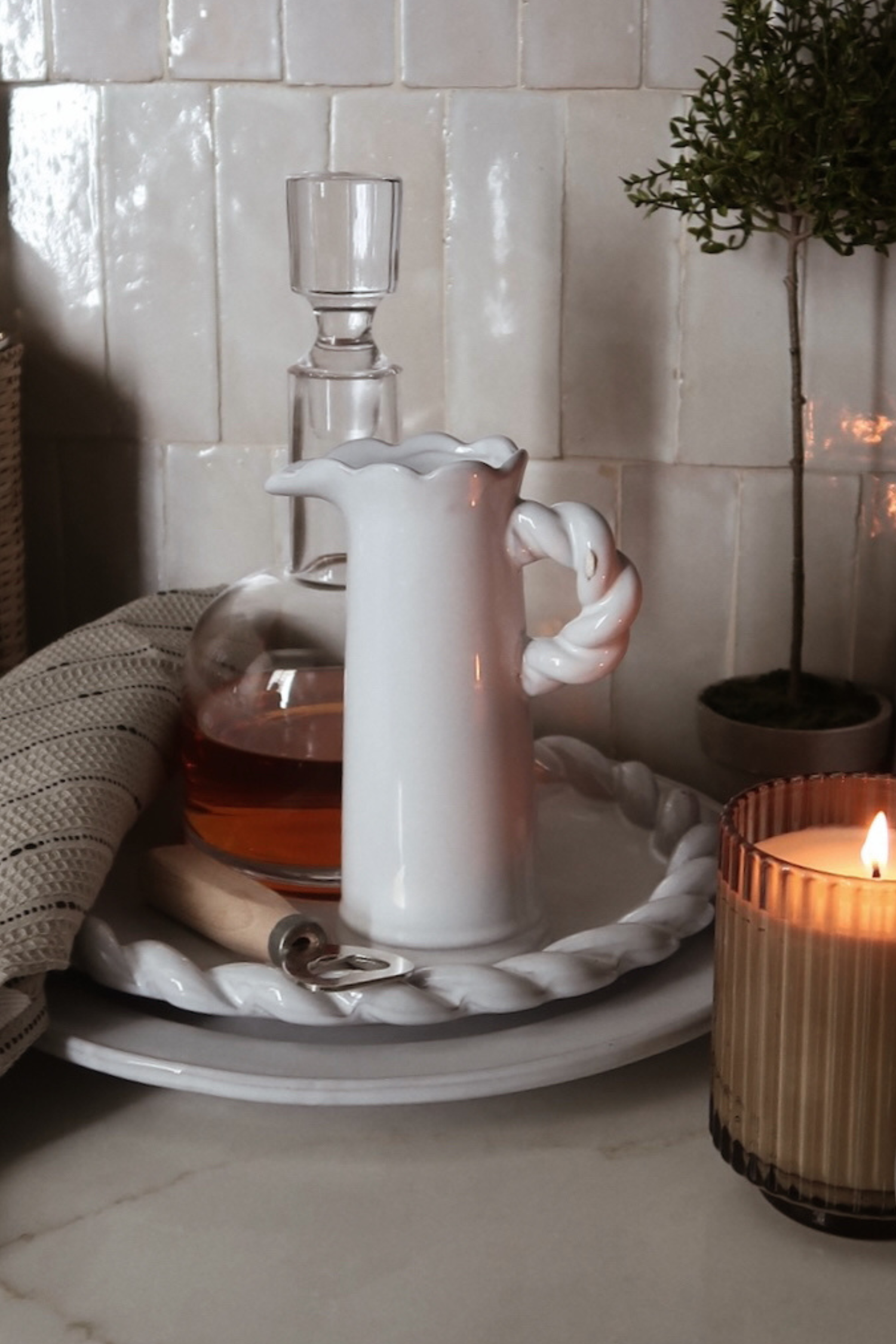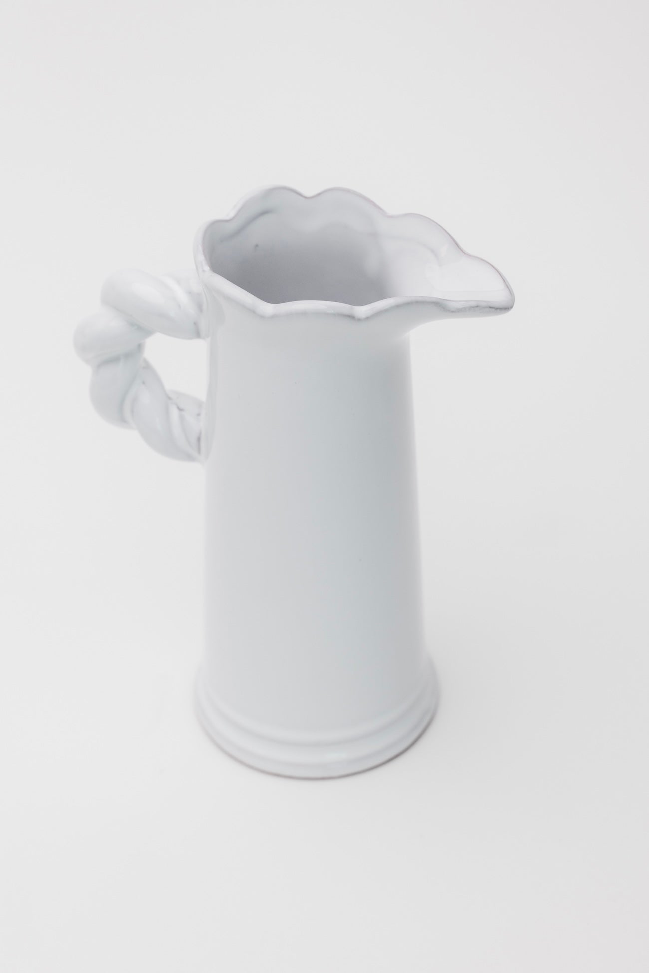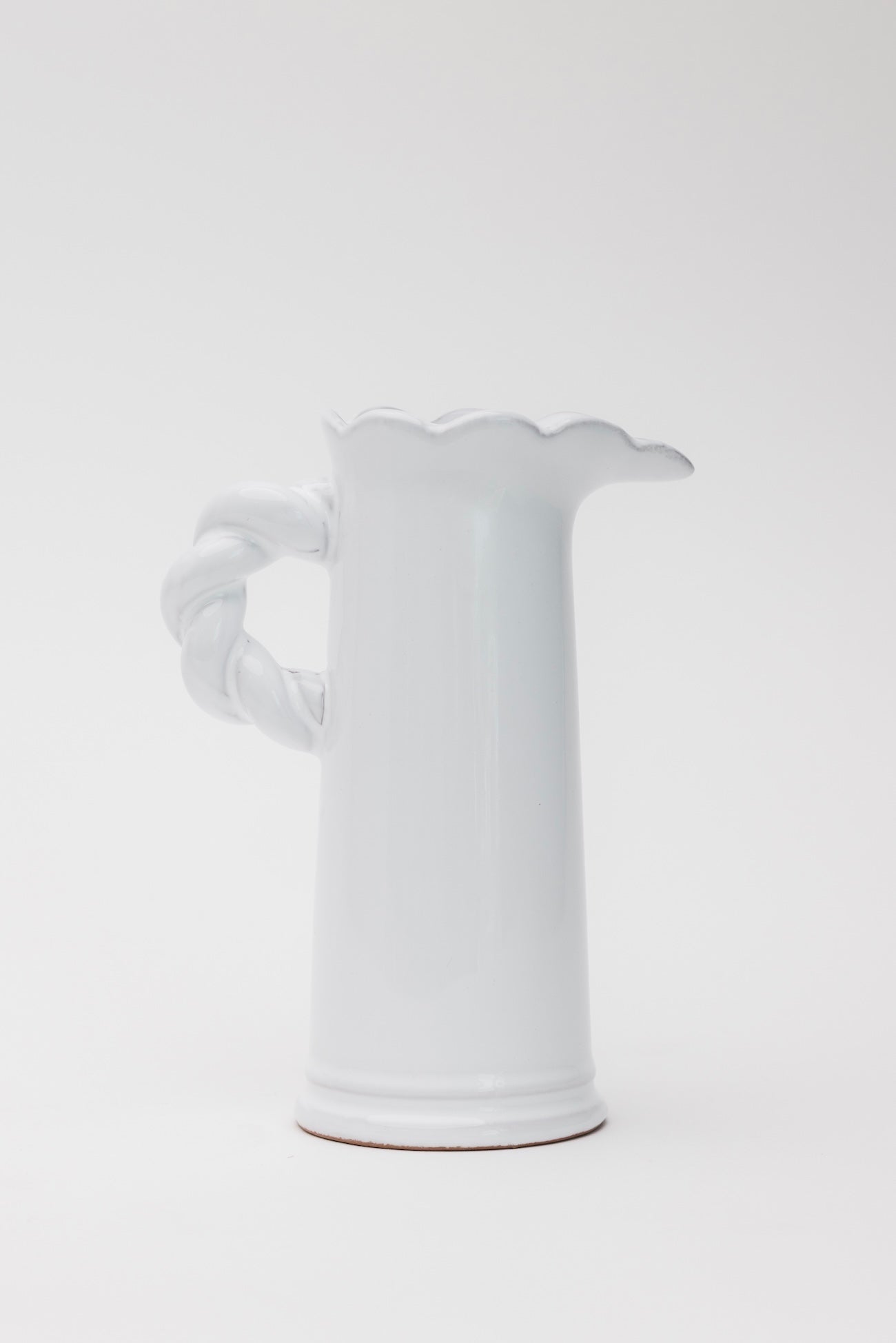 Tiny but mighty, the Kaylee Twisted Handle Mini Pitcher Vase adds charm to any space! This pitcher is just the right size and perfect touch of height to your bar cart styling. Its playful twisted handle adds character while keeping functionality front and center. Perfect for fresh flowers or your favorite dried stem. Each piece is unique with a weathered finish.