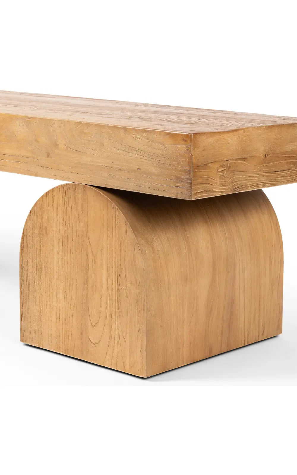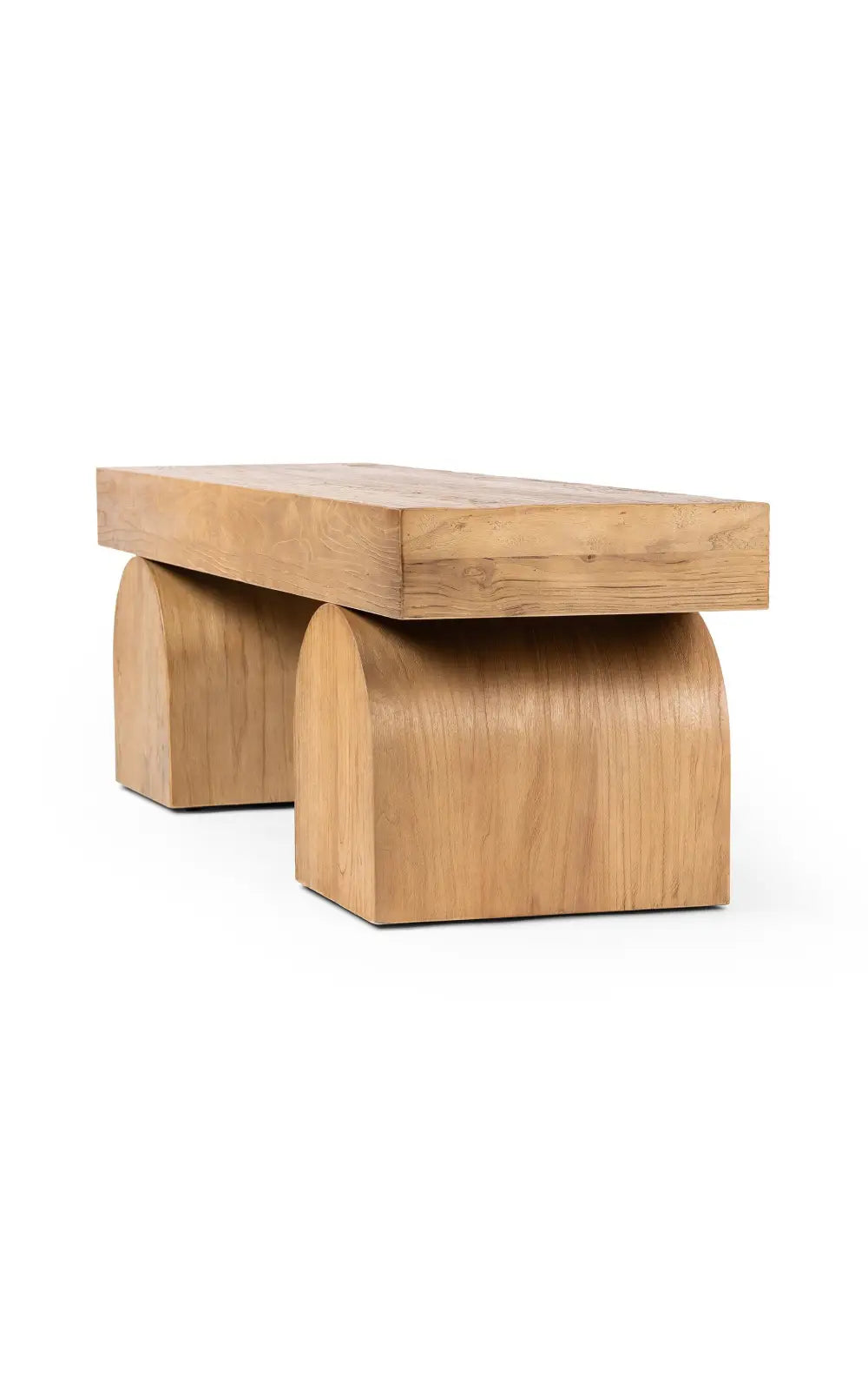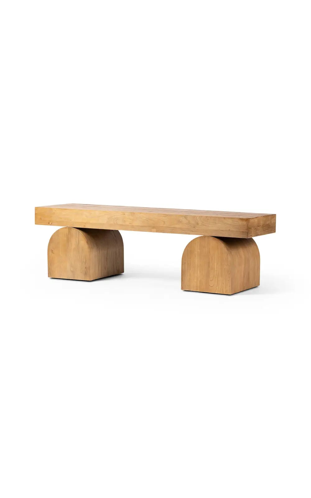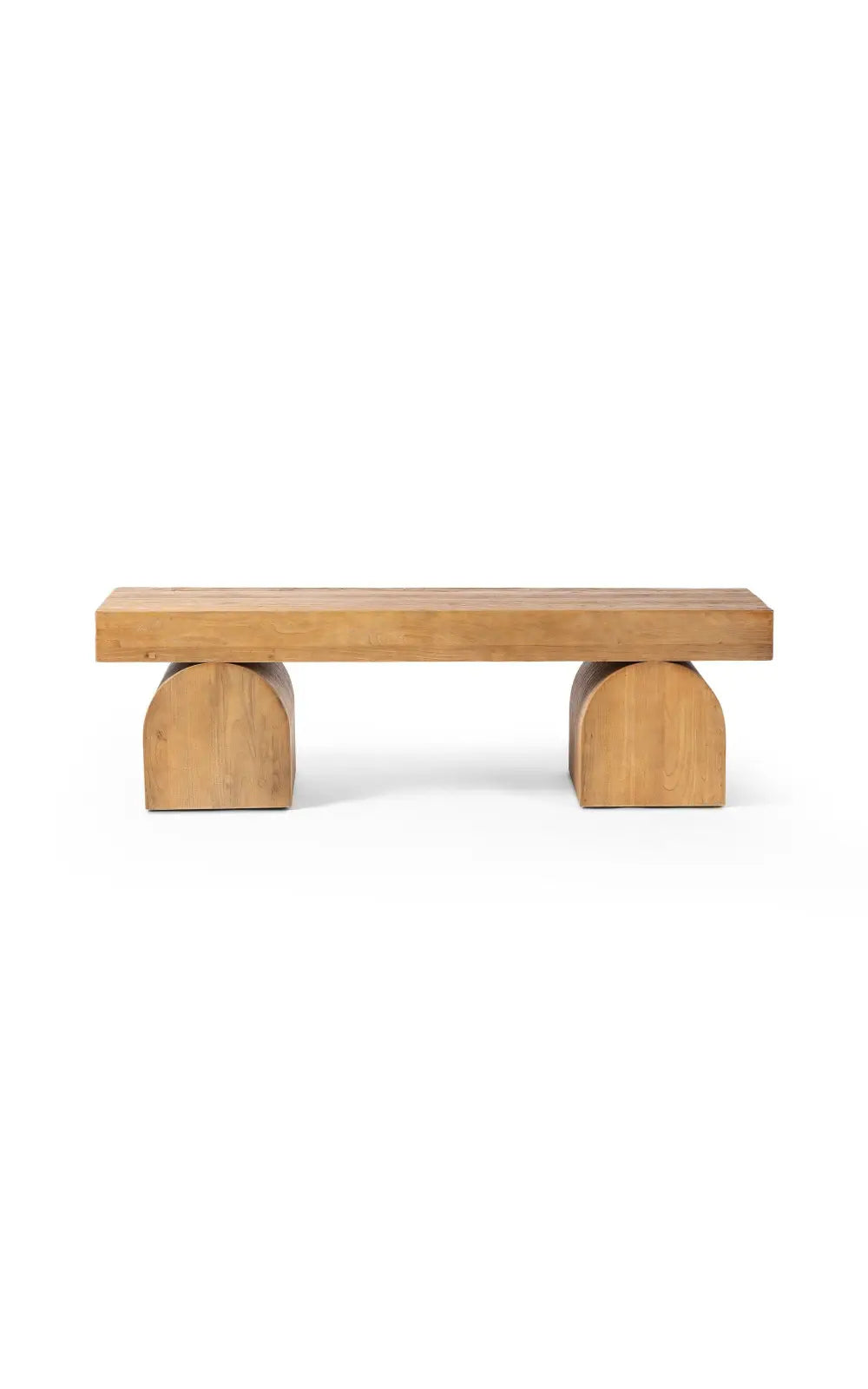 The Keane Bench is a study in shape. Handcrafted from solid reclaimed elm with visible knots and graining, chunky arched legs support clean bench-style seating. An ideal pop of modernity in the entryway and beyond.