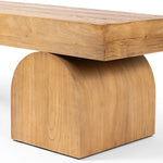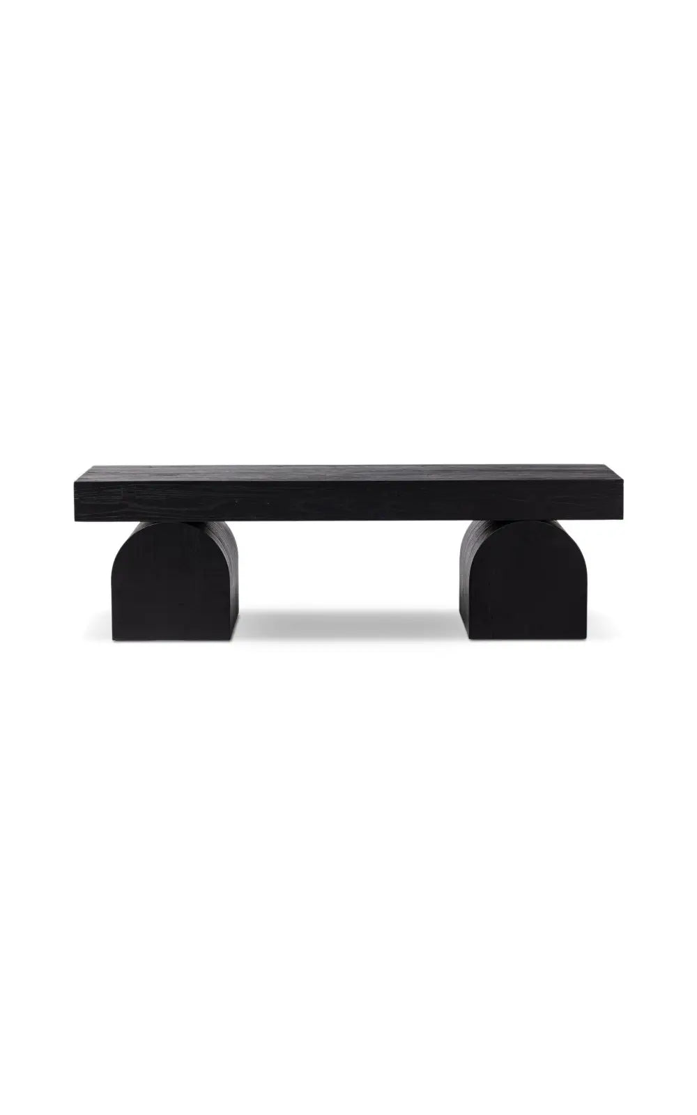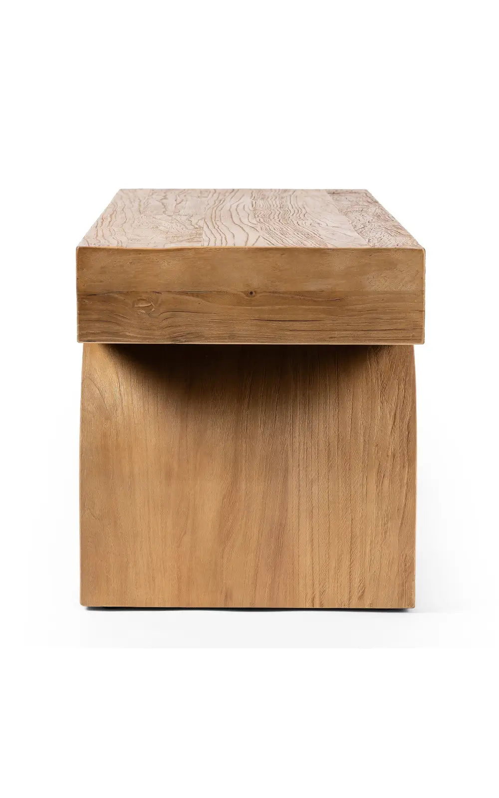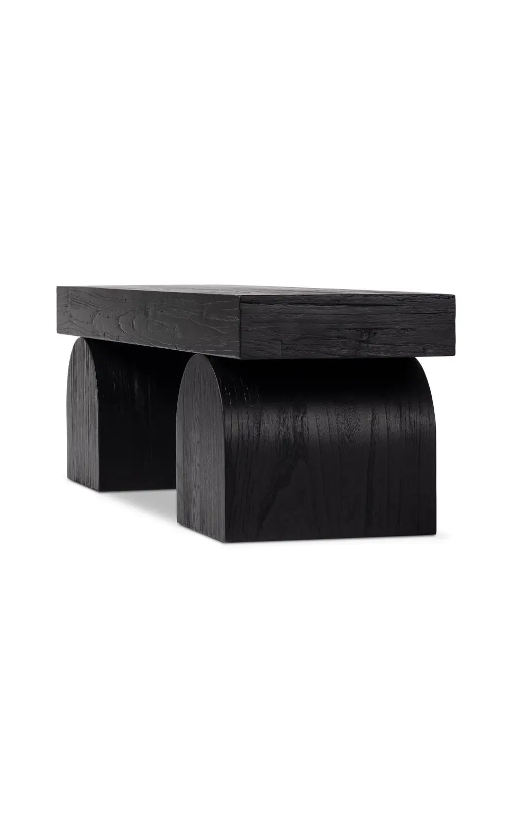 The Keane Bench is a study in shape. Handcrafted from solid reclaimed elm with visible knots and graining, chunky arched legs support clean bench-style seating. An ideal pop of modernity in the entryway and beyond.
