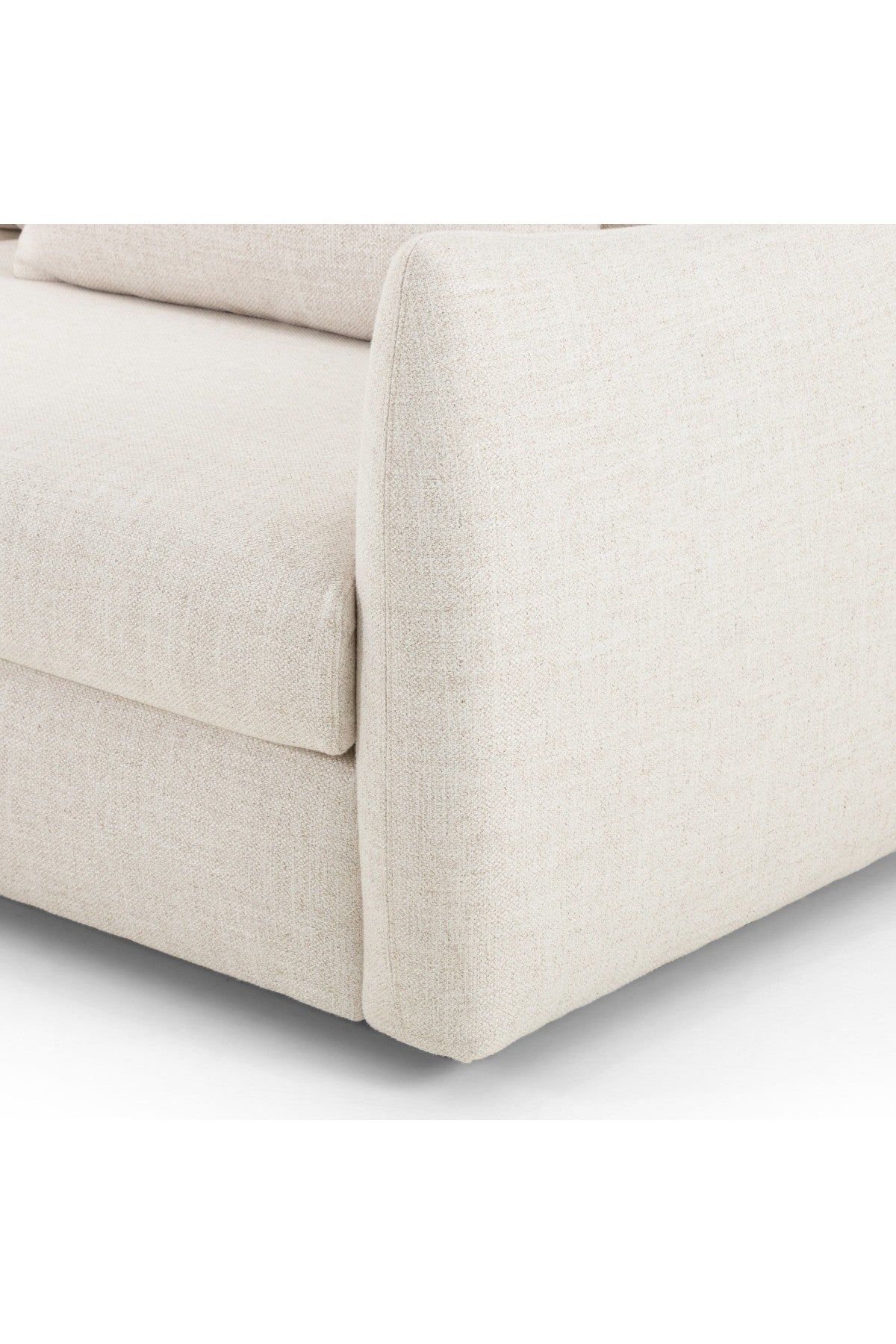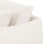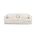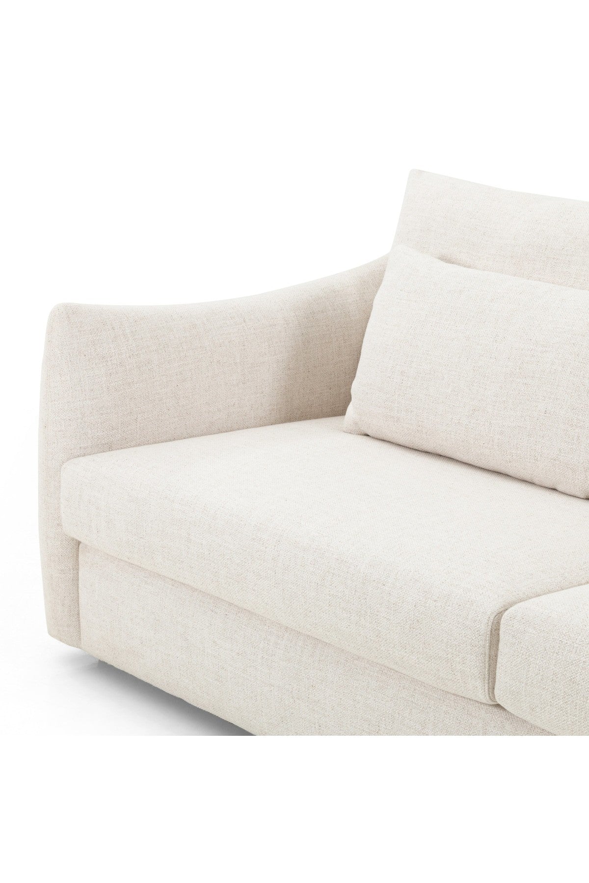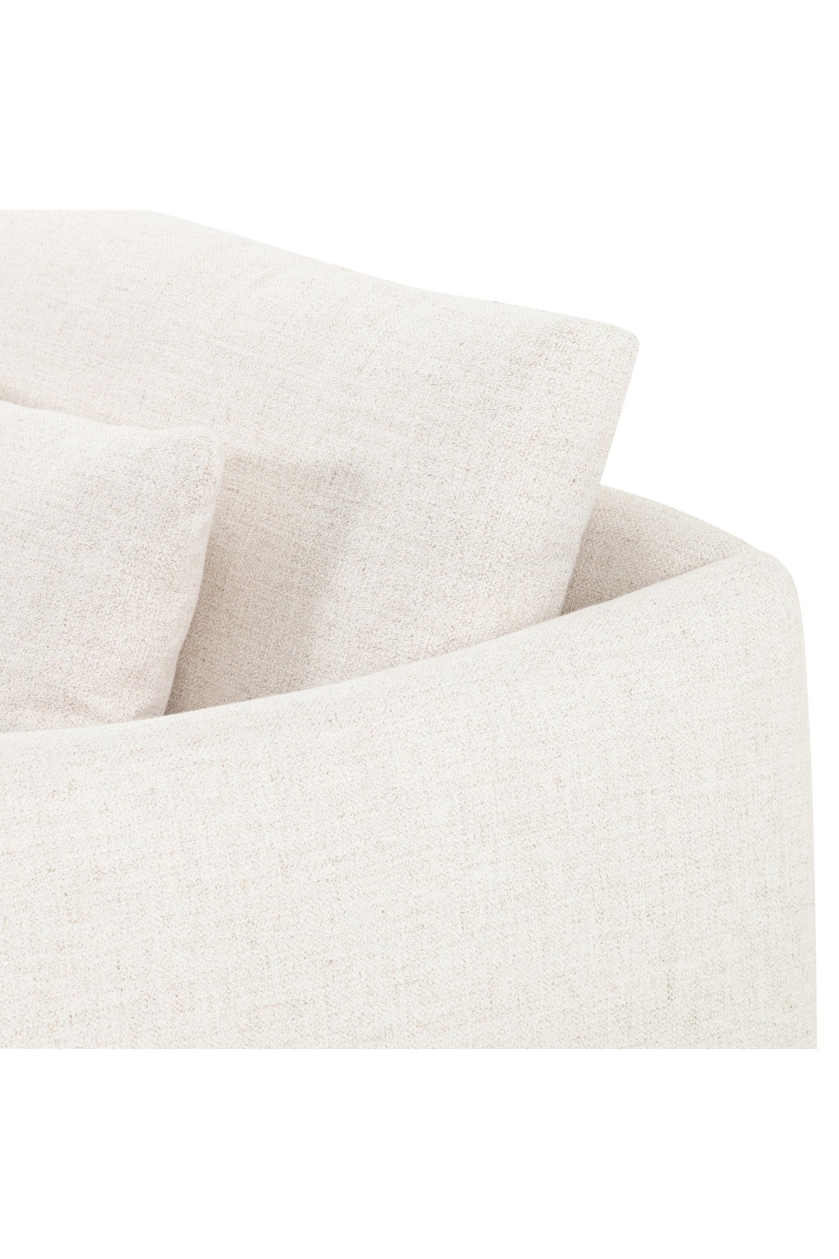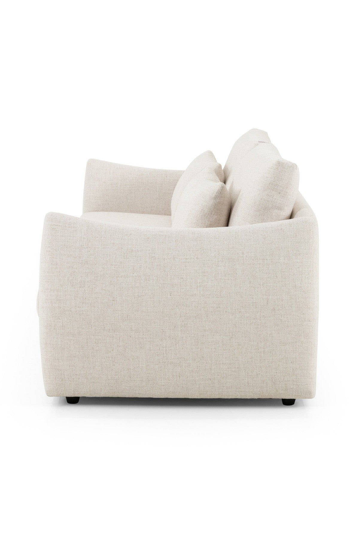 The Kelsey Sofa is designed to mimic the body's resting silhouette, scalloped sides refresh the traditional track-arm sofa, with off-white upholstery and double-stacked back cushions for comfort. Performance fabrics are specially created to withstand spills, stains, high traffic and wear, ensuring long-term comfort and unmatched durability.