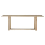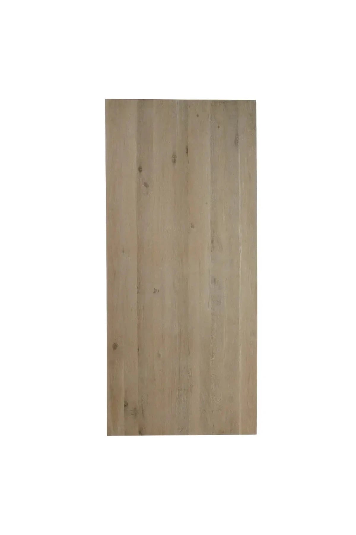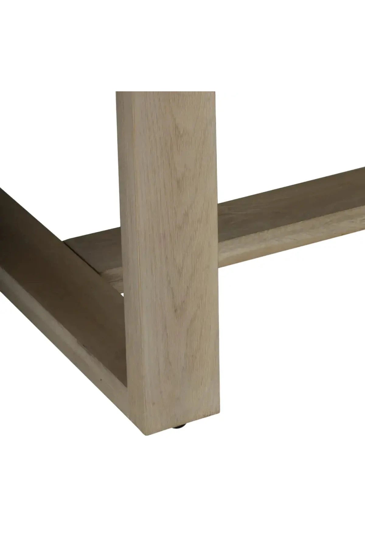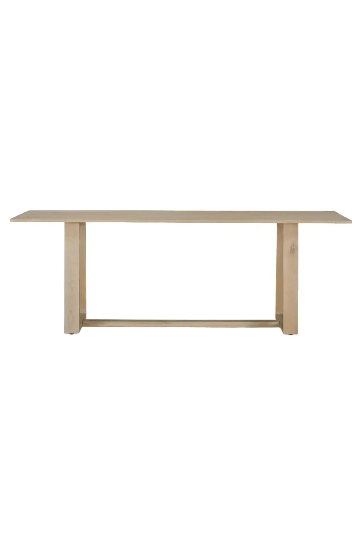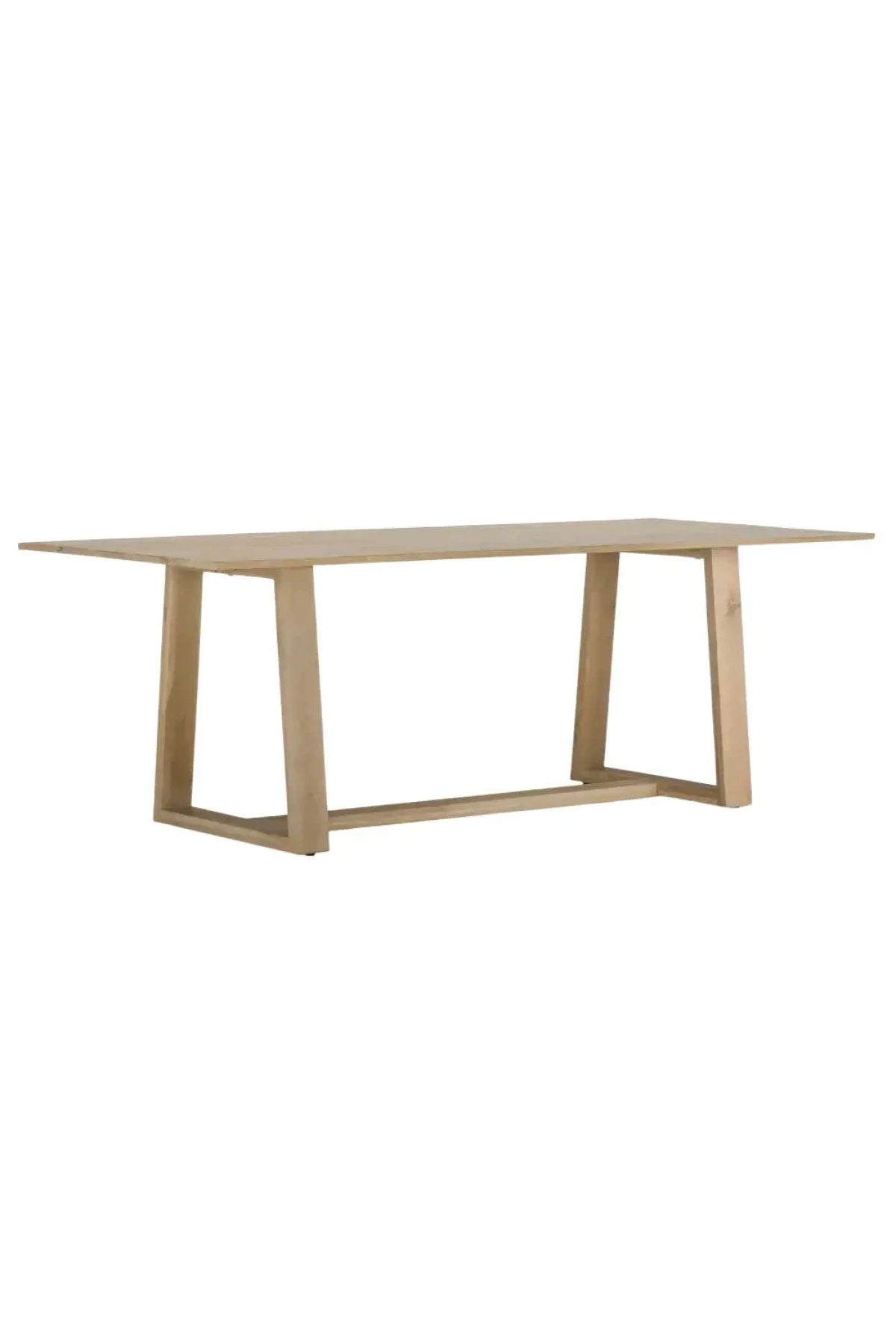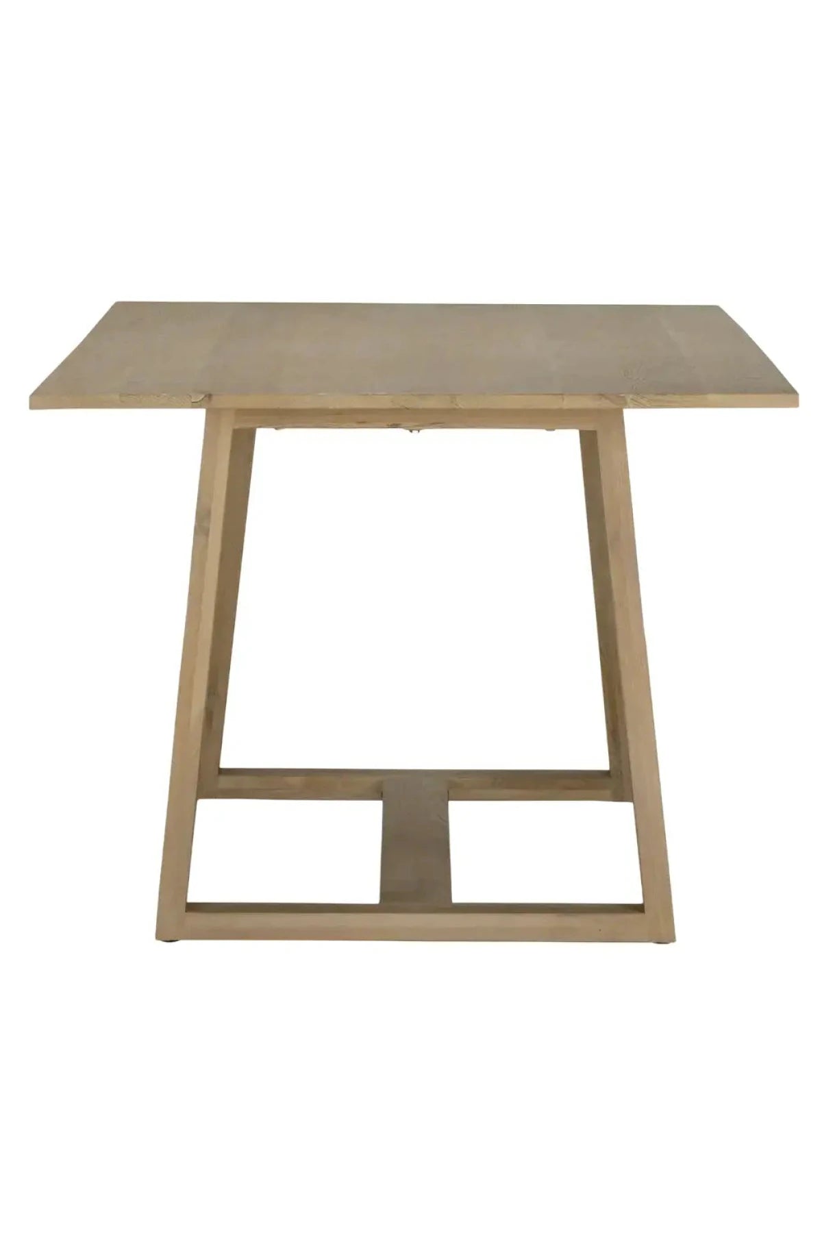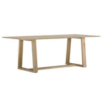 Meet the Kiayara Solid Oak Dining Table. An angular base lends architectural appeal to this unique dining table. Featuring planks of natural oak, this spacious table is perfect for all of your indoor entertaining needs. Combines solid oak craftsmanship with bold geometric design, creating a statement piece that transforms your dining room into an inviting gathering space where memories are made and cherished for years to come.
