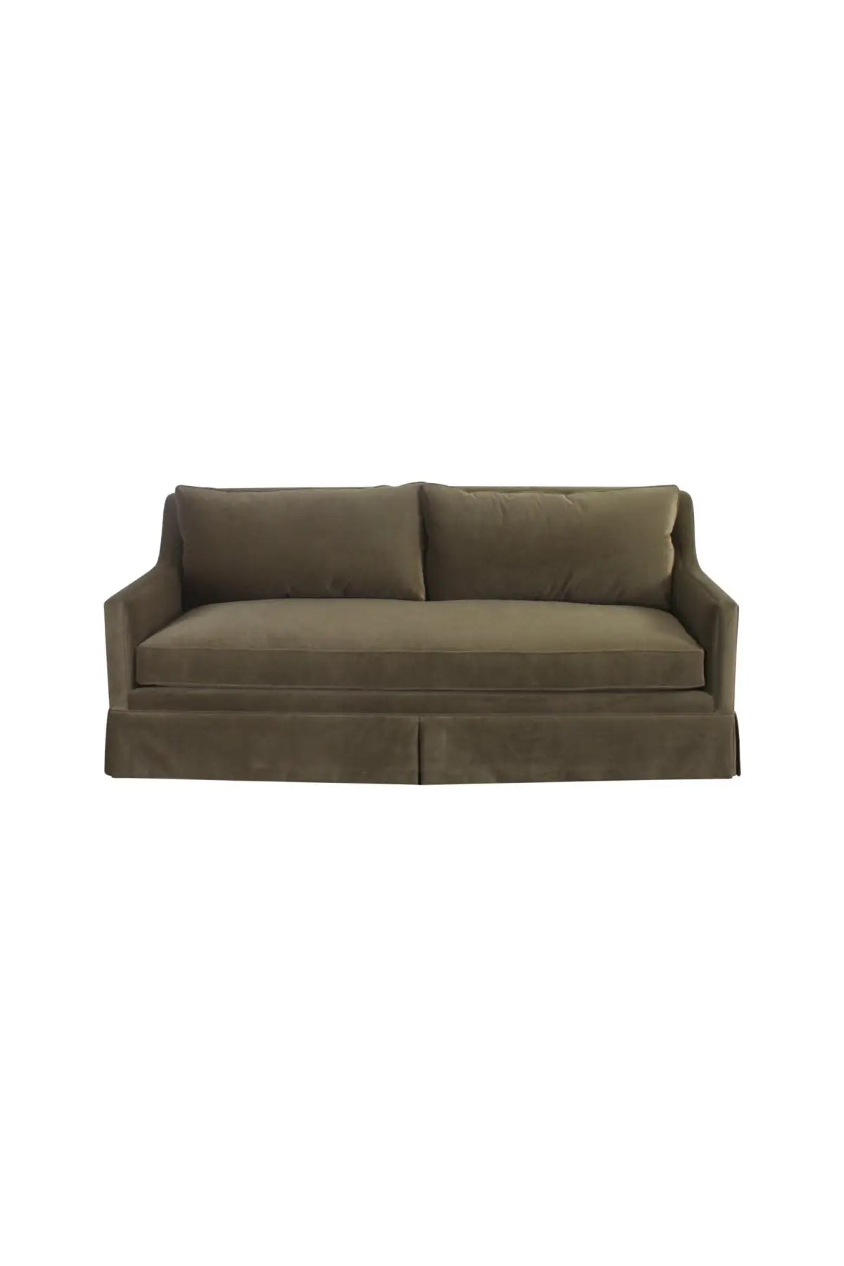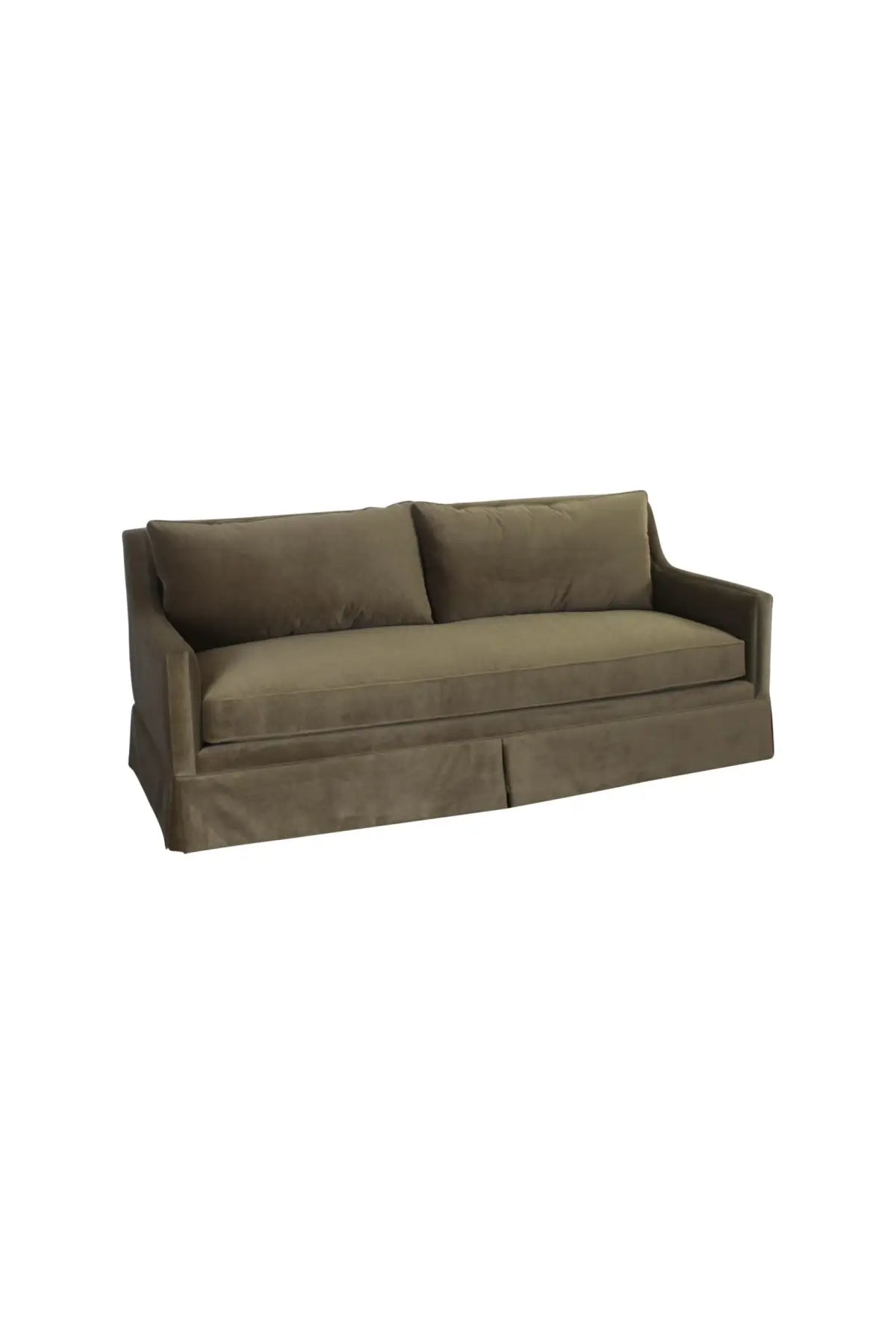 The Kim Sofa is a traditional lines piece that will work well in classic environments as well as transitional ones. With a fitted look and added skirt you will enjoy the looks of a relaxed slip covered seat with the clean look and tidiness of a regular upholstered piece. Made with the highest standards in the industry.