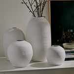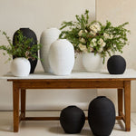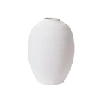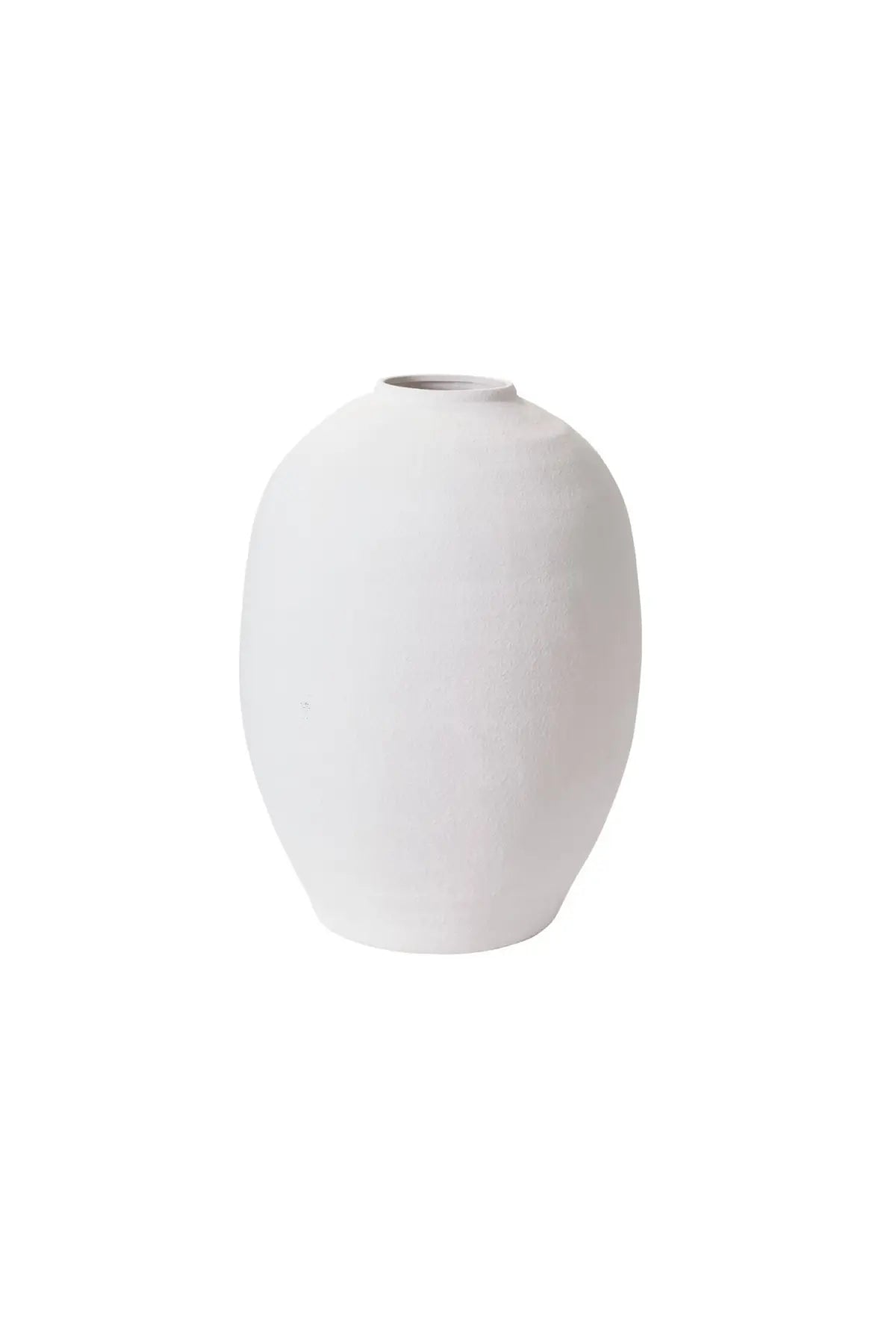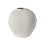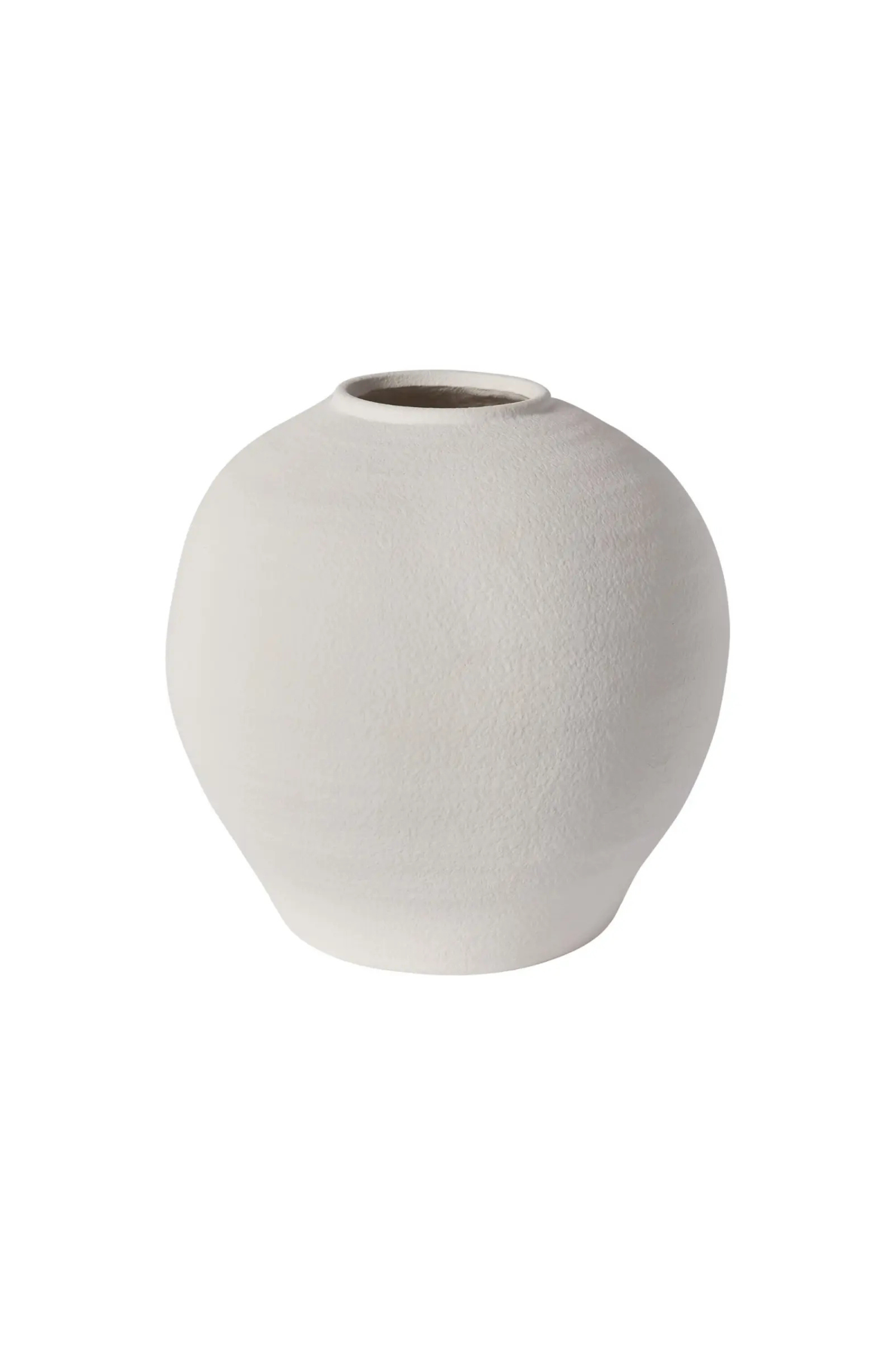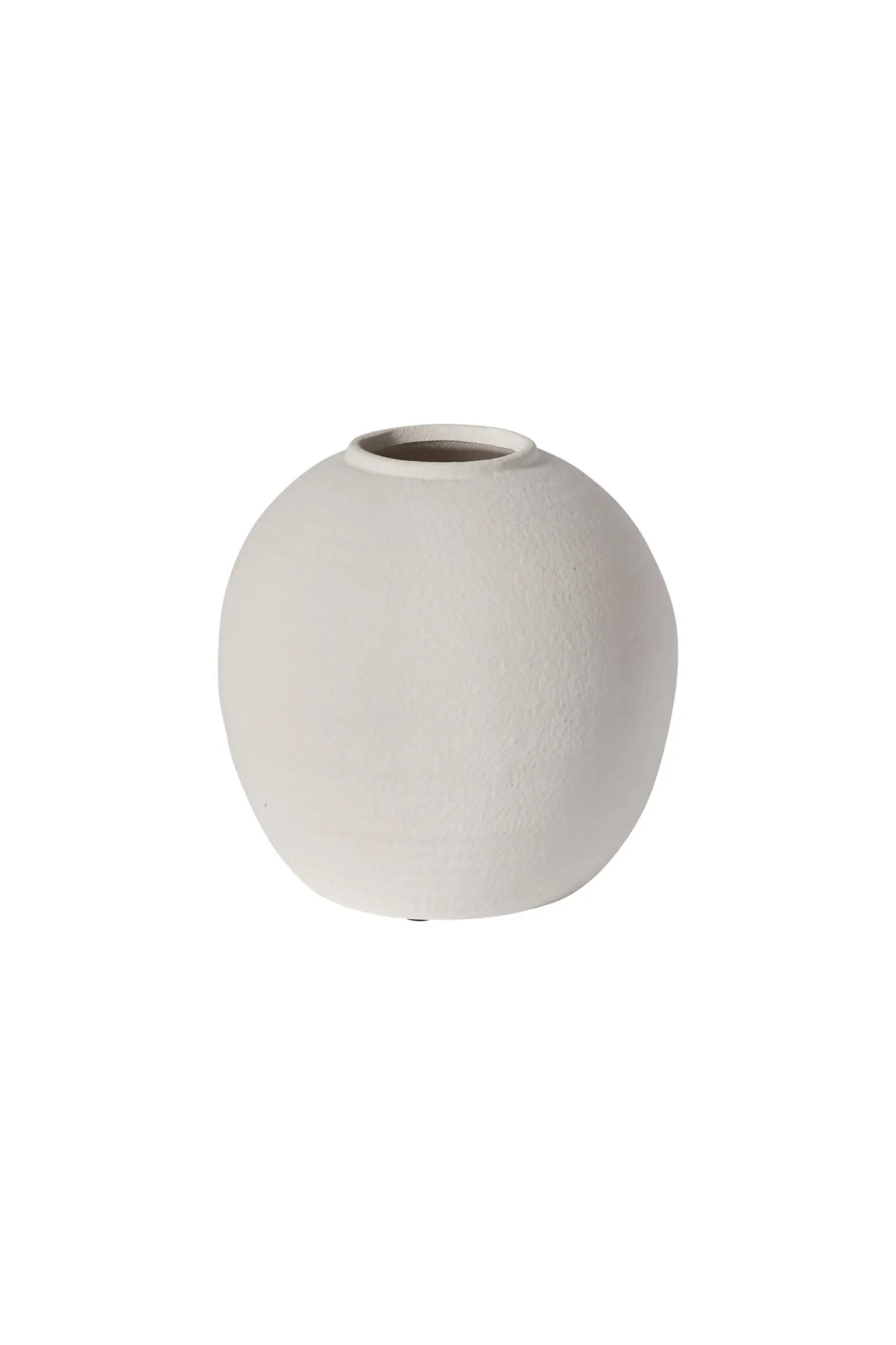The Konos Vase is a round bellied cement vase in bright textural white. Its size and shape provide a perfect canvas for a large statement arrangement or a simple tropical stem.