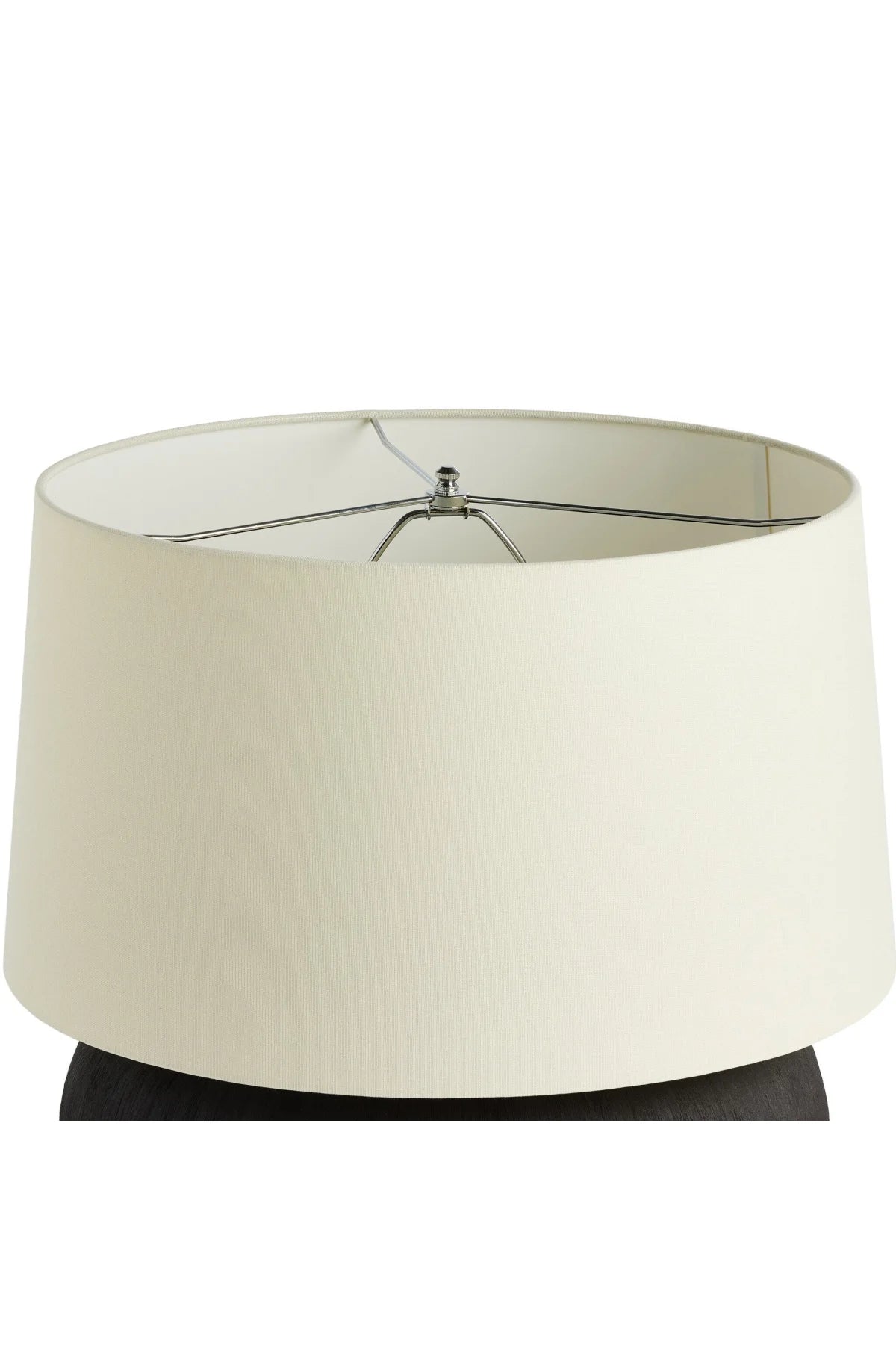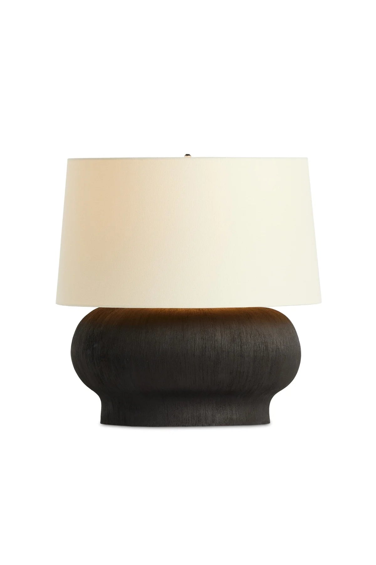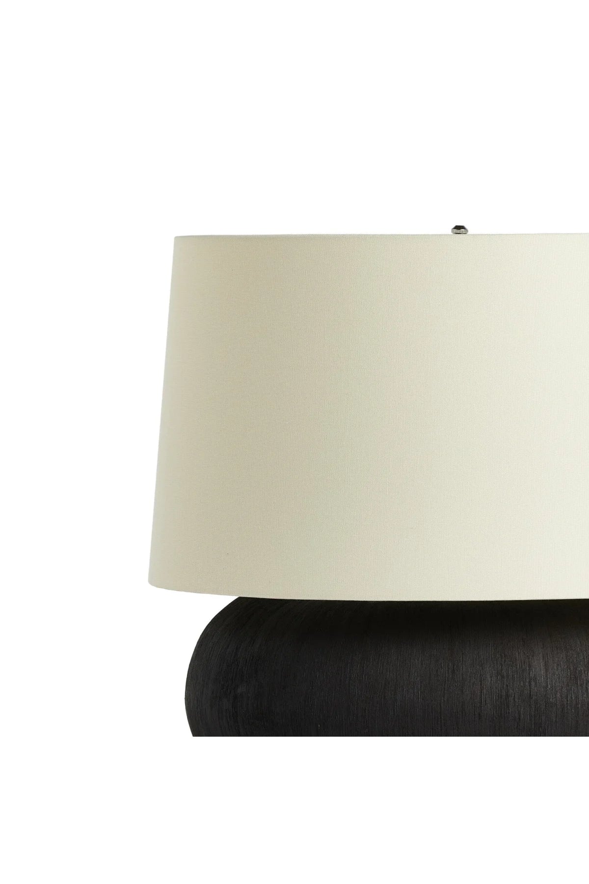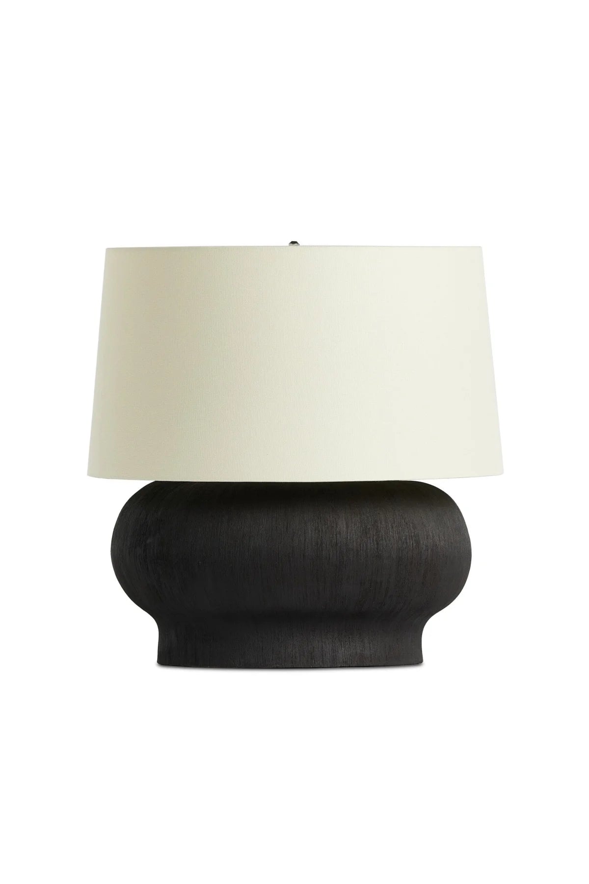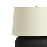 Meet the Kragen Table Lamp. A wide, textured table lamp of black-finished ceramic pairs with an ivory shade of flax and linen. Bulb(s) not included.
