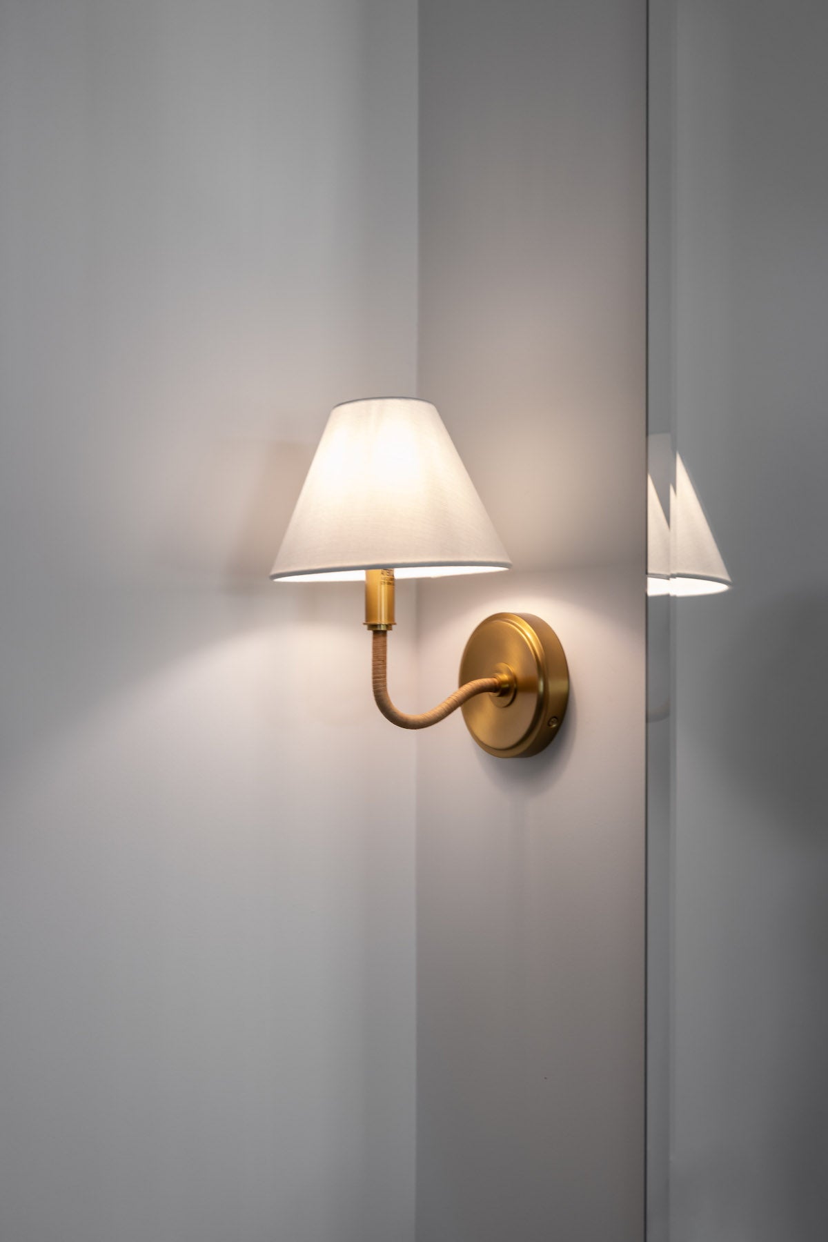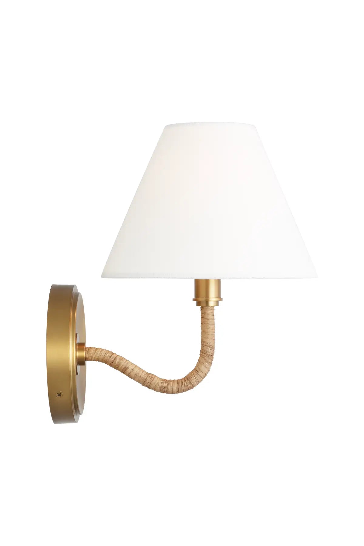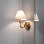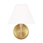 The Laguna Single Sconce offers a refined balance of warmth and elegance with its burnished brass finish and soft linen shade. Its sleek metal frame provides a timeless appeal, making it perfect for accent lighting in hallways, bathrooms. A sophisticated touch for any space. Bulb(s) not included.